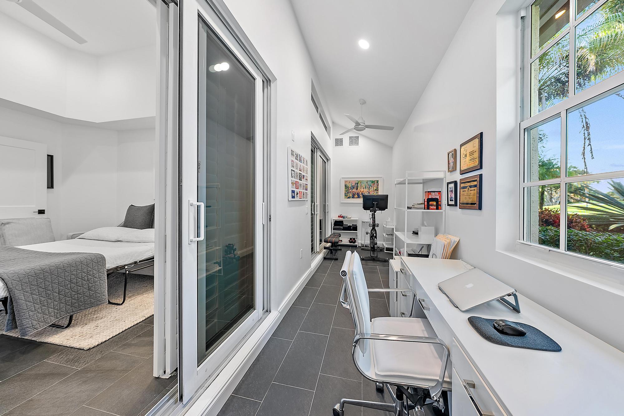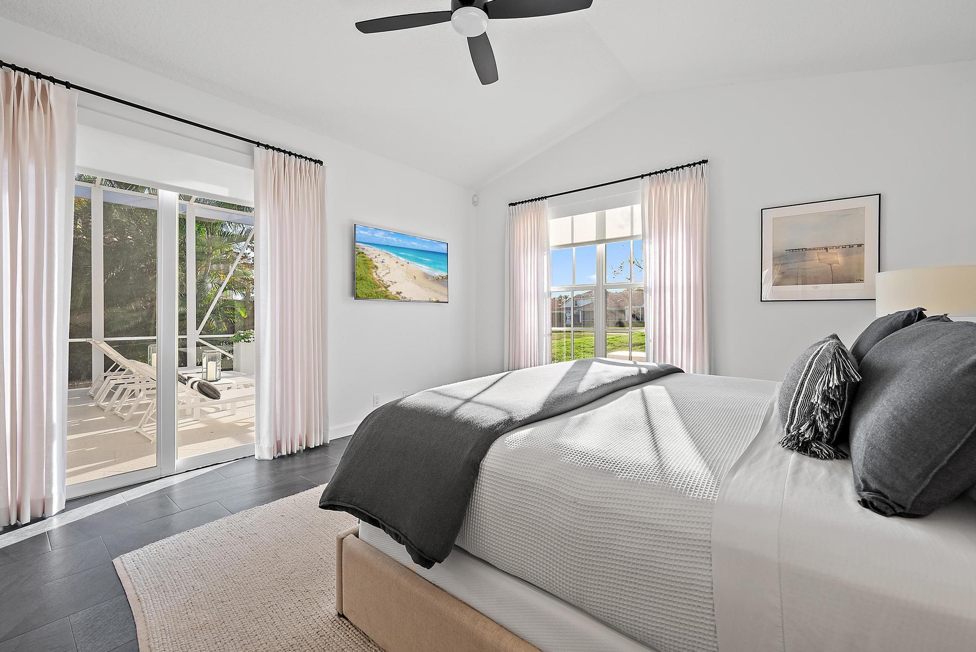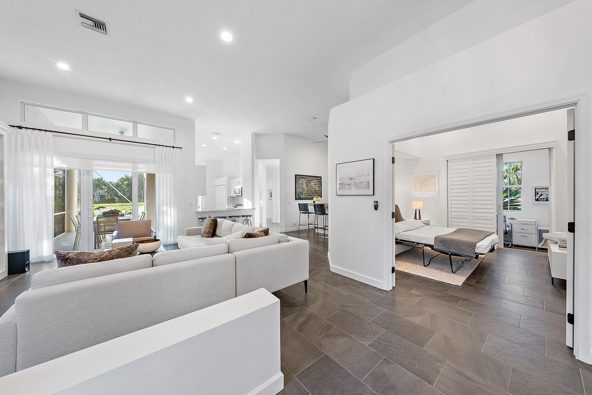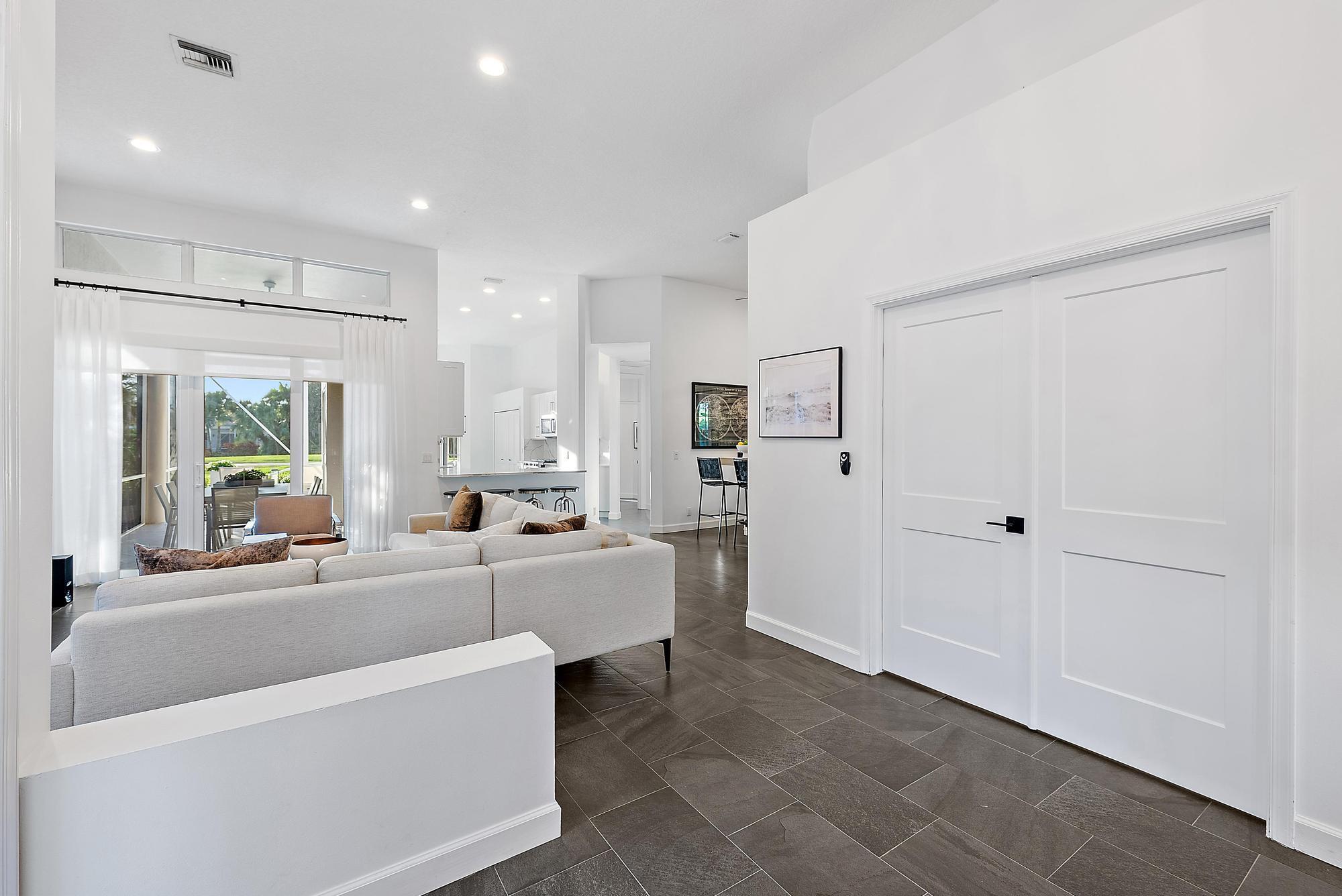 This FULLY RENOVATED and CONTEMPORARY golf course home has been expertly redesigned. Everything has been done for you: IMPACT GLASS, replaced roof (2014), gorgeous porcelain tile flooring throughout, beautifully redone kitchen and two exquisite baths with high-end plumbing fixtures and designer finishes. No expense has been spared in creating this chic and modern golf course home. This 3BR/2BA + Den/Workout Room boasts a corner lot near the epicenter of Ibis featuring a large, redone screened enclosure providing both covered and uncovered screened-in space. The garage has epoxy floors and sleek cabinetry, all redone in 2023. The driveway and walkway is new (2024) and the assessment for it has been paid in full.