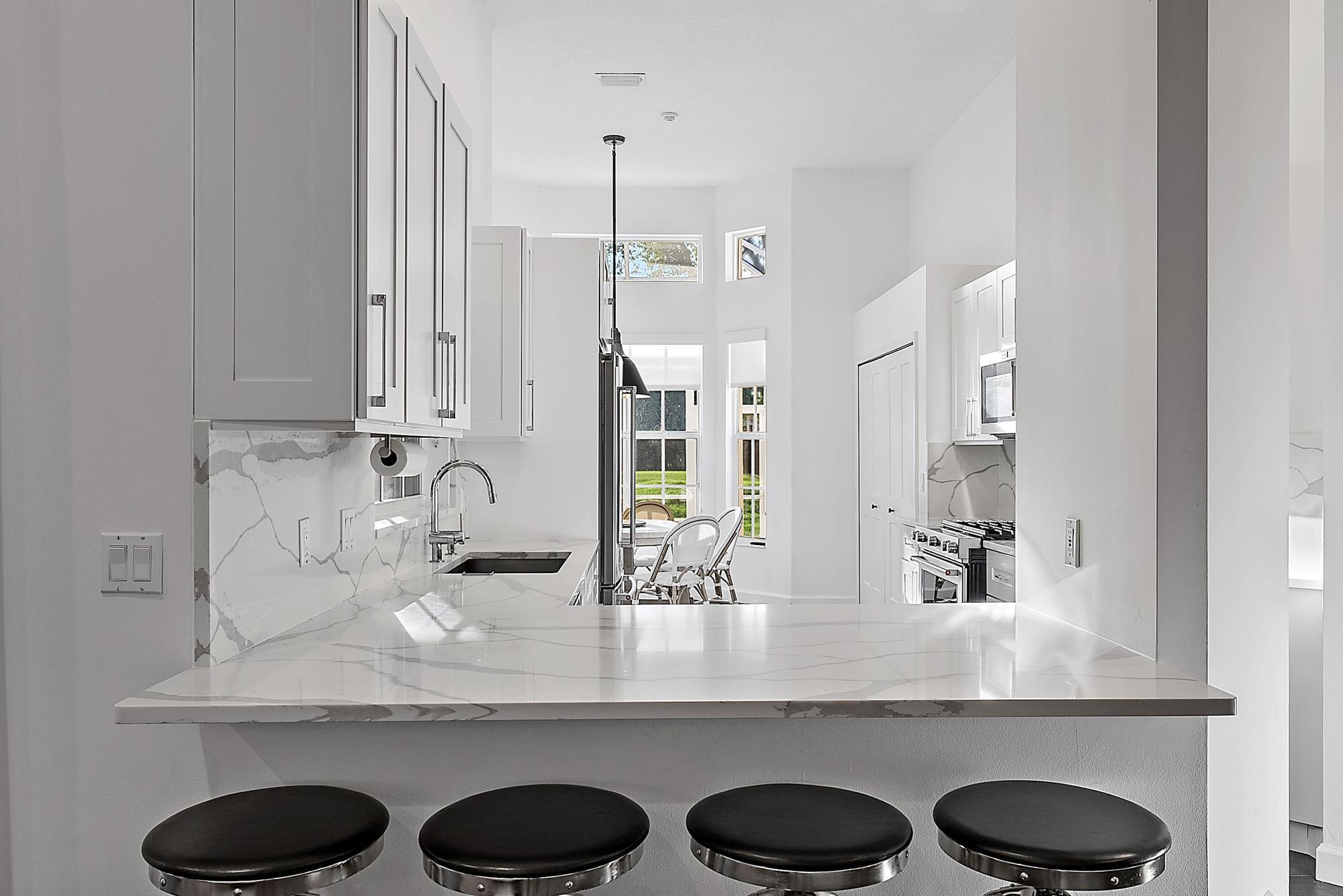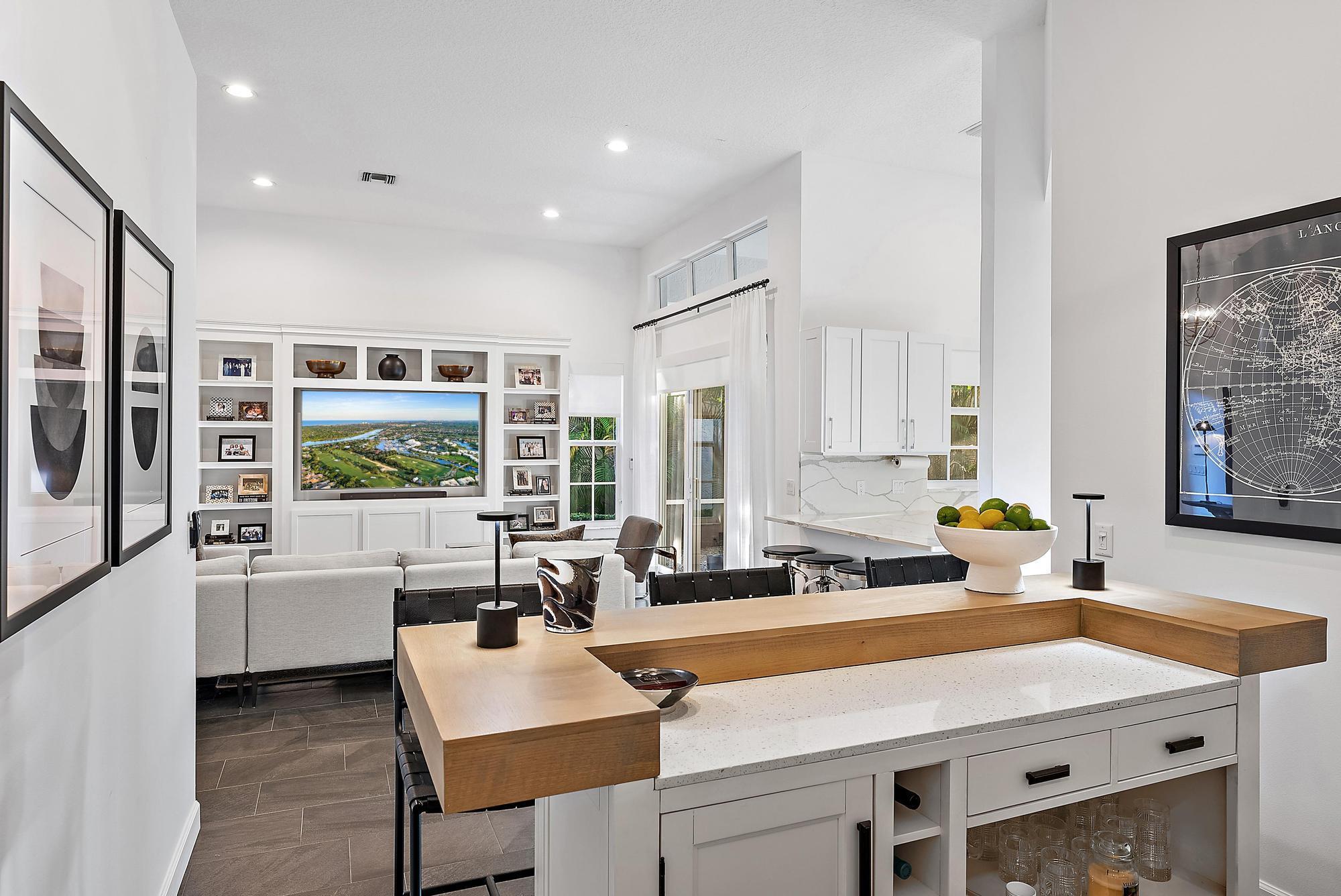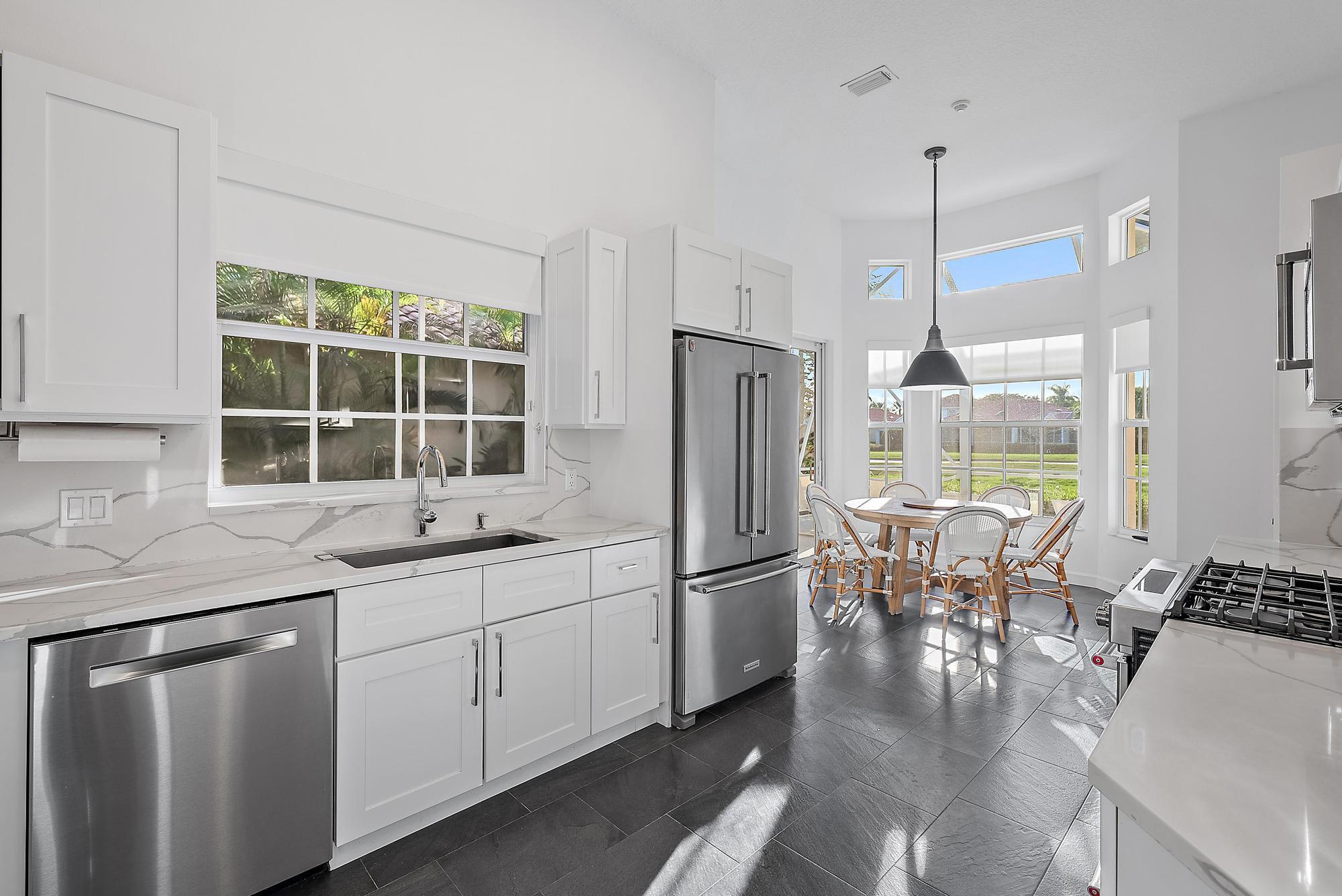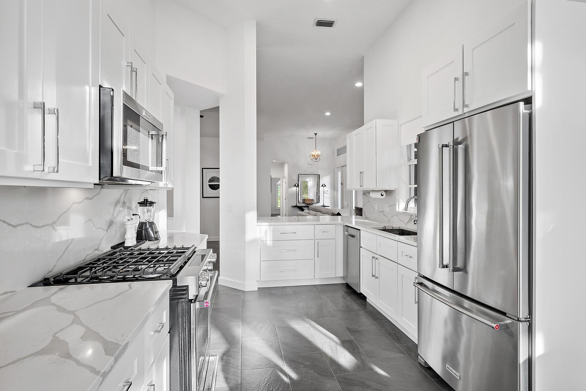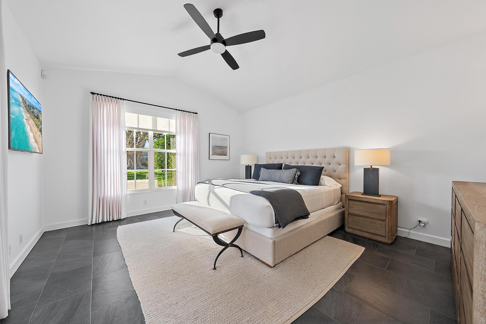 This FULLY RENOVATED and CONTEMPORARY golf course home has been expertly redesigned. Everything has been done for you: IMPACT GLASS, replaced roof (2014), gorgeous porcelain tile flooring throughout, beautifully redone kitchen and two exquisite baths with high-end plumbing fixtures and designer finishes. No expense has been spared in creating this chic and modern golf course home. This 3BR/2BA + Den/Workout Room boasts a corner lot near the epicenter of Ibis featuring a large, redone screened enclosure providing both covered and uncovered screened-in space. The garage has epoxy floors and sleek cabinetry, all redone in 2023. The driveway and walkway is new (2024) and the assessment for it has been paid in full.