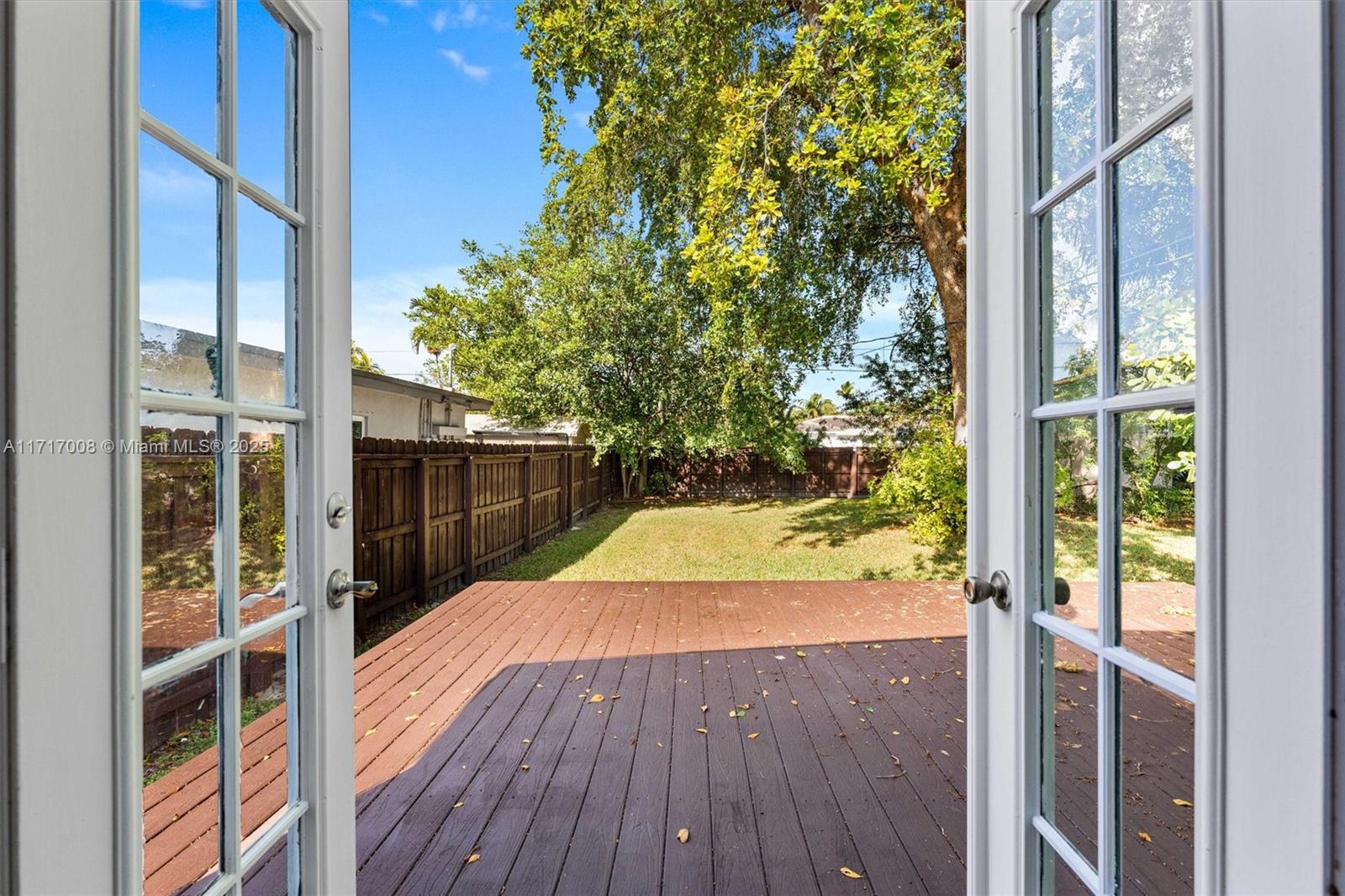 This beautifully remodeled home features new floors throughout, with the original charm of wood floors in the bedrooms. The updated kitchen is a chef's dream, complete with modern appliances and a convenient wet bar with a mini fridge, perfect for entertaining. The cozy living room features a real wood fireplace, adding warmth and character to the space. The guest bathroom has been completely renovated for a fresh, modern feel. Step outside to the oversized backyard, fully fenced for privacy, and enjoy the brand new deck—ideal for outdoor dining or relaxation. Located in the heart of Hollywood, this home is just a short 10 minute drive to the beach, Hallandale, and Aventura, and offers the added benefit of NO HOA. A perfect blend of comfort, style, and location—schedule your showing today!