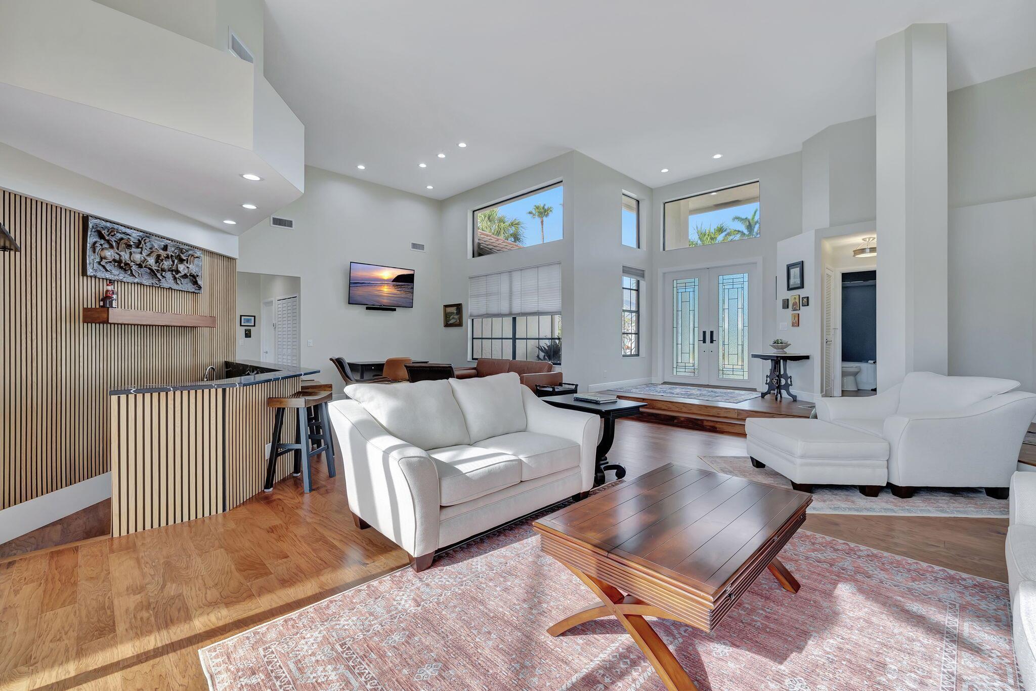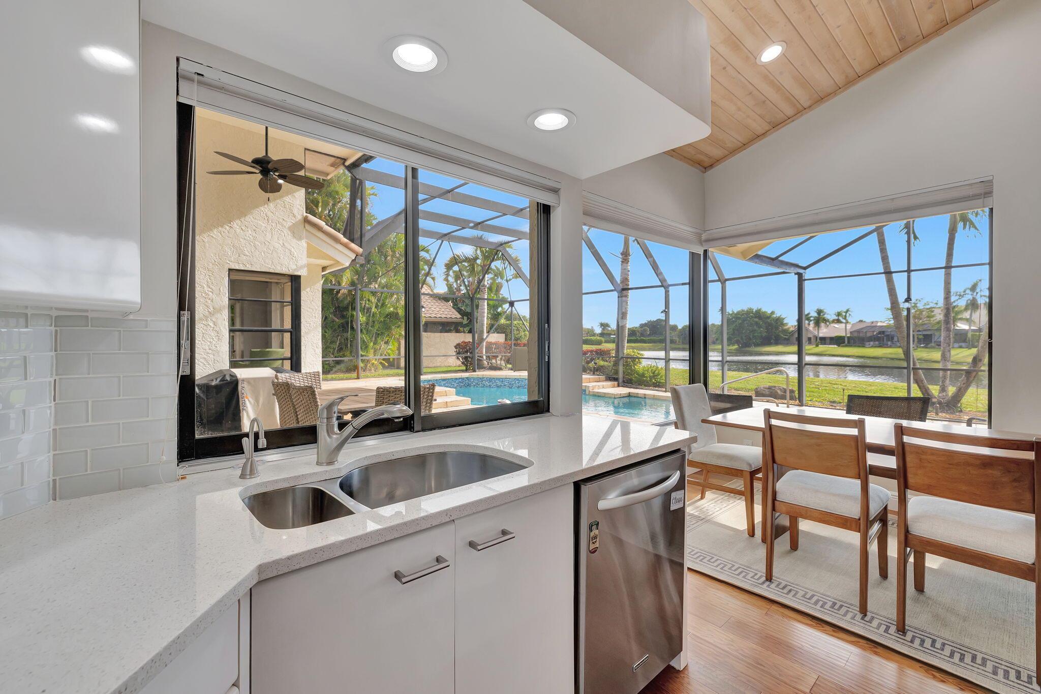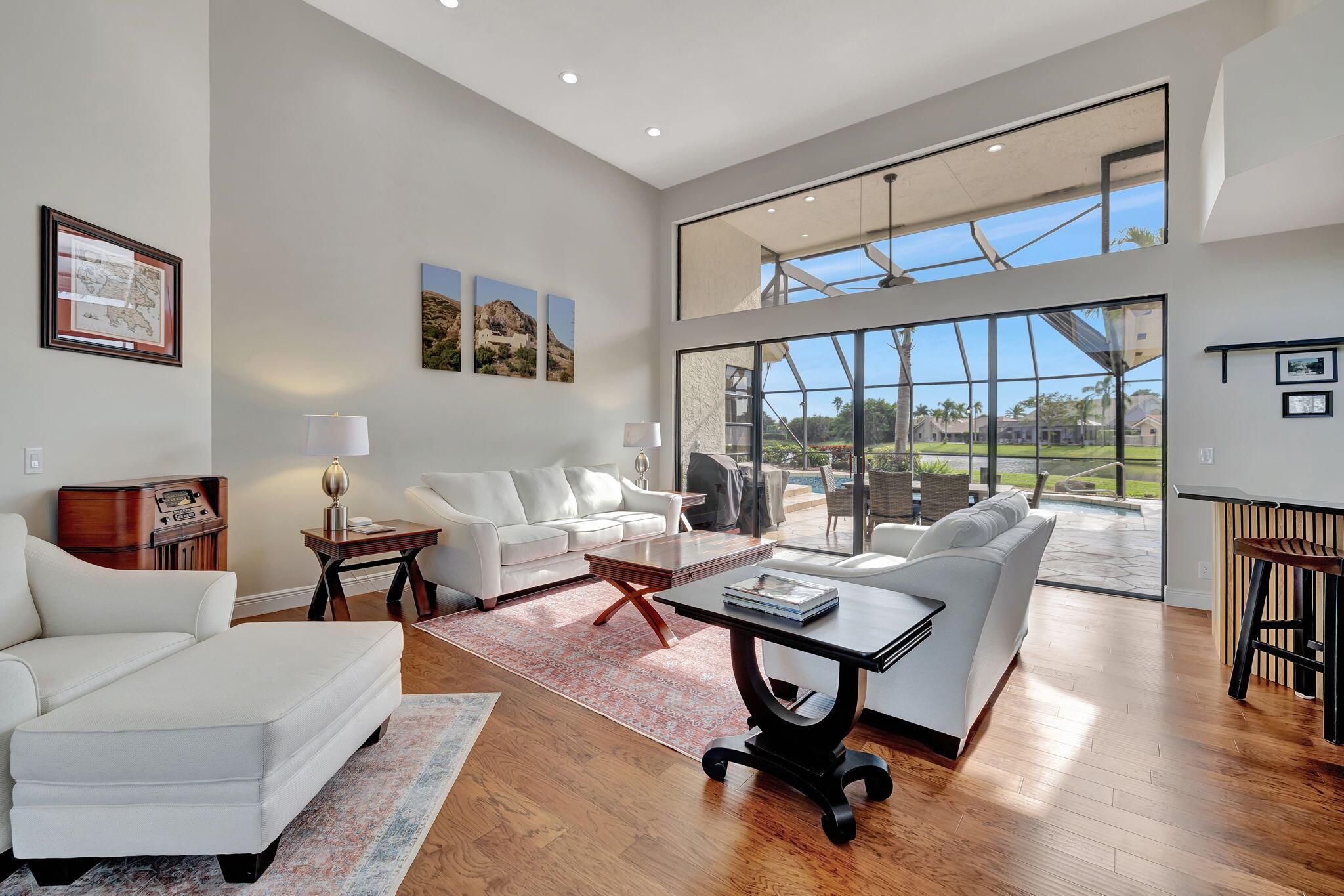 Welcome to this stunning, updated 3-bedroom, 3.5-bathroom home in the prestigious Stonebridge Country Club! Nestled on a serene cul-de-sac, this property offers the perfect combination of modern elegance, privacy, and resort-style living.Step inside to discover luxury vinyl flooring throughout and beautifully updated bathrooms, each thoughtfully designed with high-end finishes. The spacious, open-concept layout features a bright and airy kitchen, great room, and breakfast area that seamlessly flow together--perfect for both entertaining and everyday living. Large windows and glass doors allow for breathtaking views of the sparkling lake from most rooms in the home, creating a peaceful and picturesque backdrop at every turn.