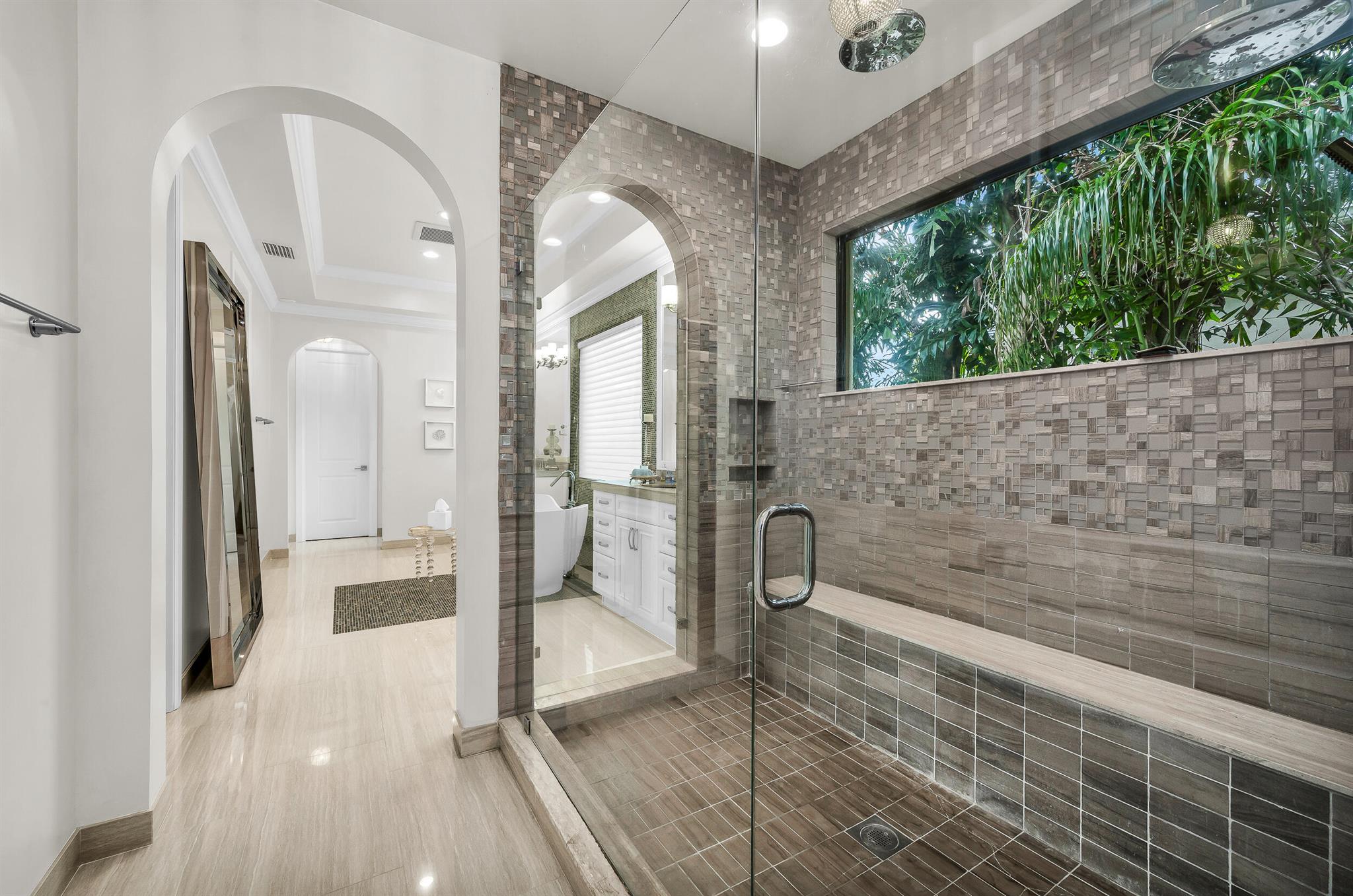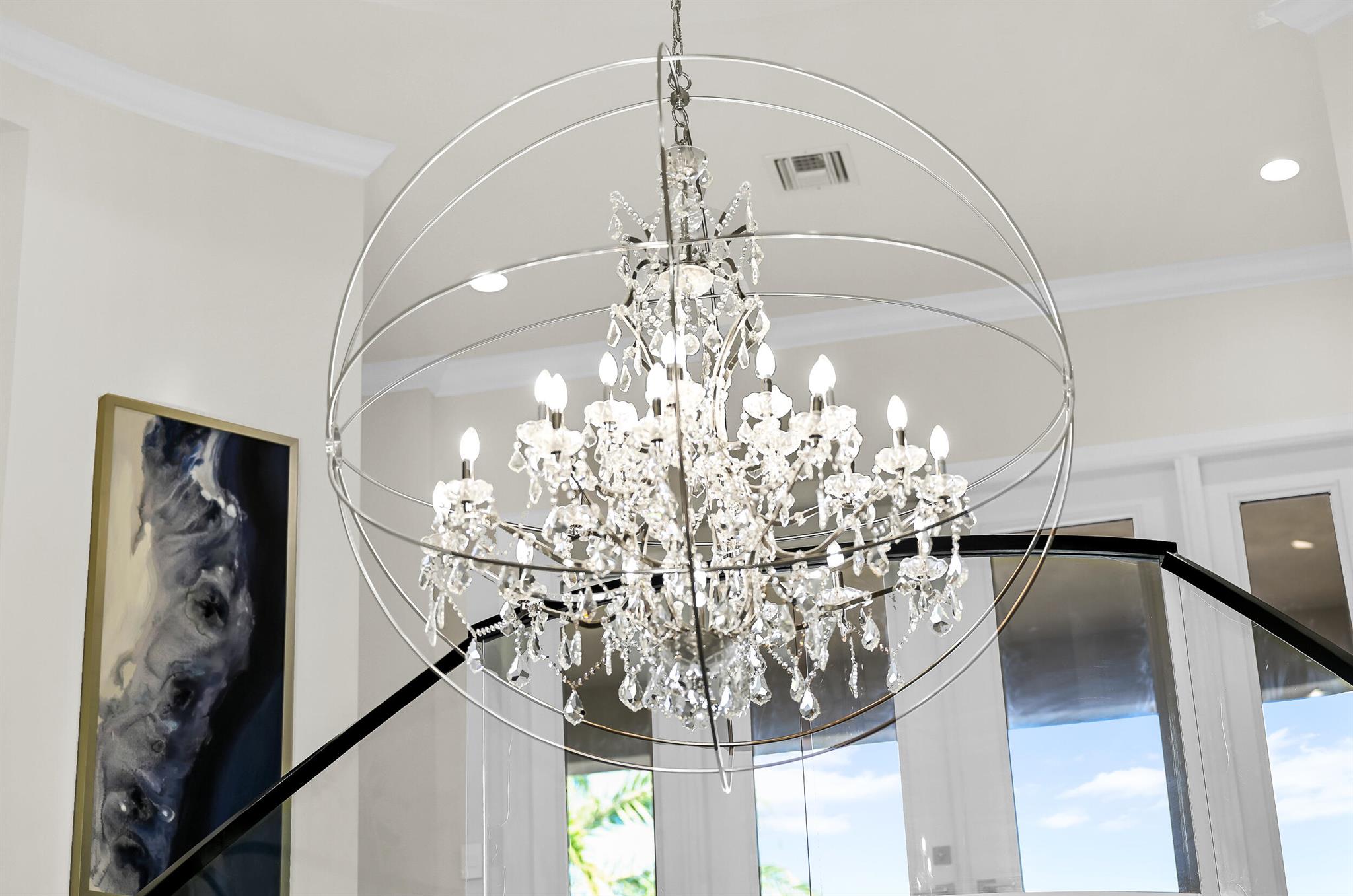 A magnificent property in The Oaks situated on a premium lakefront lot. This estate exudes luxury and sophistication as it features a dramatic entry with iron double doors, a two-story foyer adorned with a custom glass and marble staircase, and elegant marble flooring throughout most of the home. The residence includes a private downstairs guest wing with a bedroom, full bath, private entry, a club room with a built-in bar that seamlessly opens to the outdoor living area. The upstairs private primary suite is a serene retreat designed for comfort and luxury. The backyard features a summer kitchen, spa and swimming pool. Other notable features include an elevator, a 4-car garage, multiple sound systems, and a circular driveway.