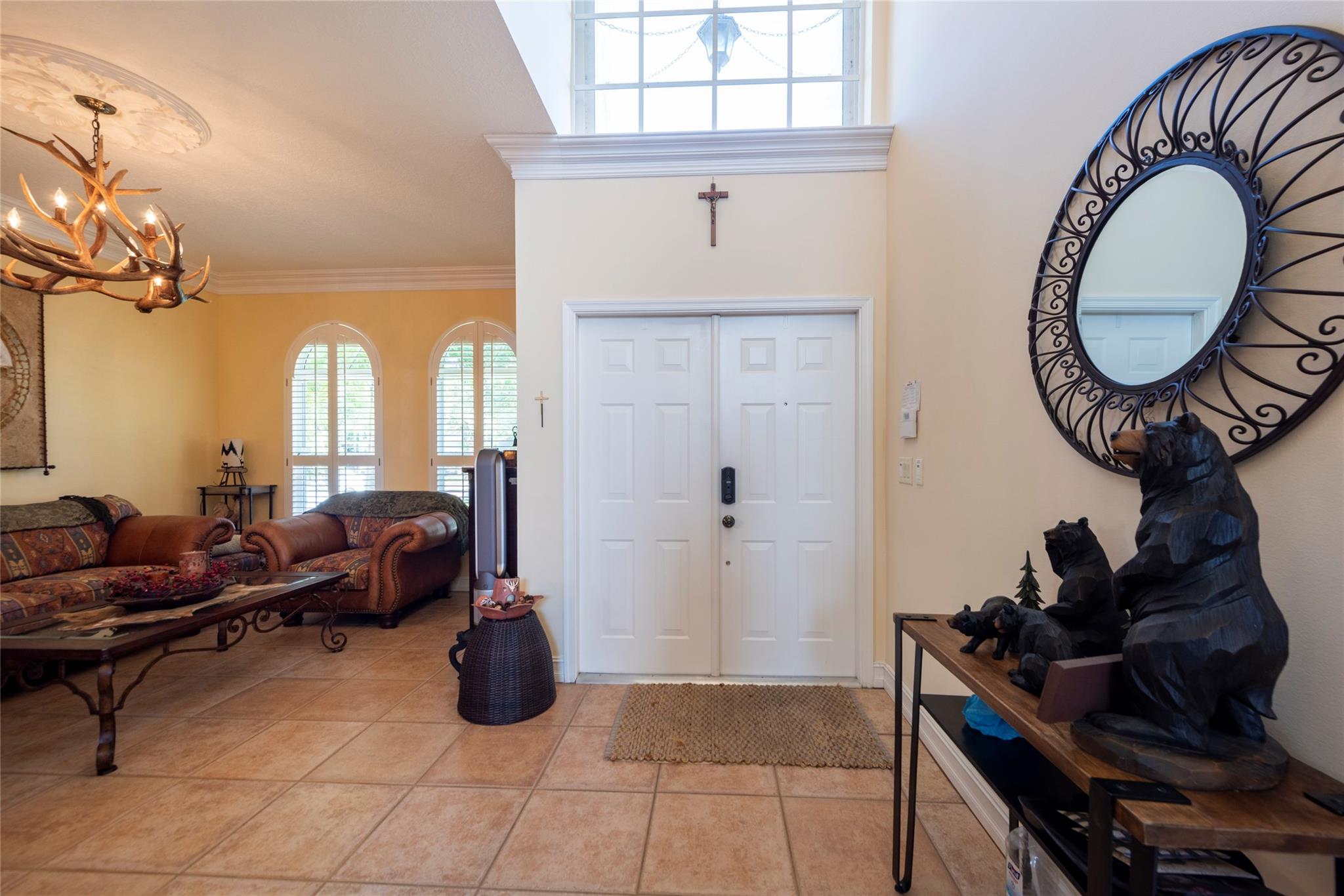 Stunning Lakefront views from this 4 BR/2.5 BA/ 2 car garage, featuring METAL barrel roof, 1st floor impact windows & rear French doors, 2nd floor accordions, 2 Rolladen shutters on large bay windows. Updated kitchen with spacious granite counters, snack counter, & eat in kitchen area. Kitchen opens to the family room featuring volume ceiling. LED lighting, and overhead speakers. Plenty of natural light. Master Suite downstairs. Upstairs carpeted. The 4th BR overlooks the lake & has a custom built-in office for a fantastic work from home environment. Internal laundry room w/ updated cabinets, plantation shutter window treatments, kitchen H2O filtration system, lightning rod system, & rain gutters. Electrical panel/box wired to support an external portable generator.