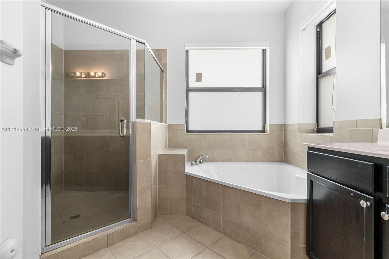 Located in a Cul De Sac! This beautiful Single Family Home is the only one with all these features and upgrades available in the market: One of the four bedrooms is located on the first floor with a full bathroom, that makes it perfect for a home office or the family convenience / privacy. Extended driveway that allows you to park 4 cars outside + 2 parking spaces inside the garage. Porcelain floor on the first floor, crown molding, newer and upgraded appliances in kitchen, high impact windows and doors throughout the house. The patio features a 14 x 28 pool (salt water, lights at night) and a covered area with a modern outdoor kitchen and counter that includes bbq, gas stove, wine cooler, mini fridge. Premium location in the perimeter, so no other house behind your patio