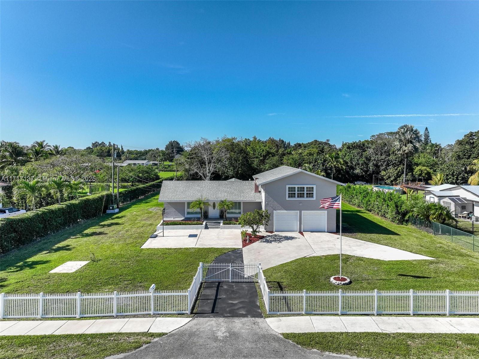 If you have been looking for a pristine Davie acre home with a storybook view...this one is for you. Custom built 5 bedroom with almost 3000 sf under air & over 43,500 sf lot. Gated property with a garage that fits 3 cars & has a safe room. Step in to the open airy floor-plan featuring recently painted great room, dining area, snack bar & gorgeous open kitchen. Primary bedroom conveniently located on first floor. Large bedrooms & handy office space upstairs. Upgrades include plantation shutters, granite & wood cabinetry, pretty flooring & rated garage doors, water filtration system & beautifully updated bathrooms. FPL just put electric lines under ground. Enjoy your private pond view from raised deck and covered patio. Pad with electric is ready for hot tub or RV. Terrific Davie schools