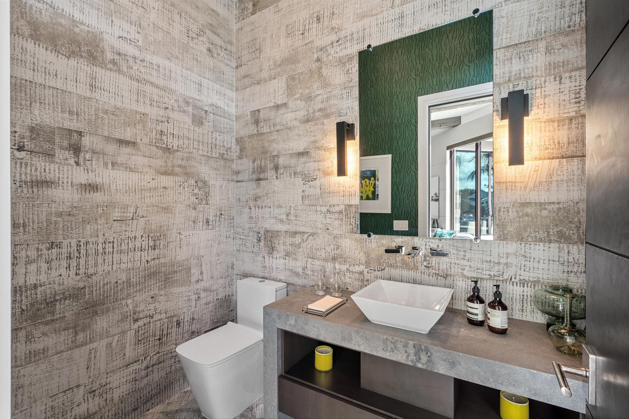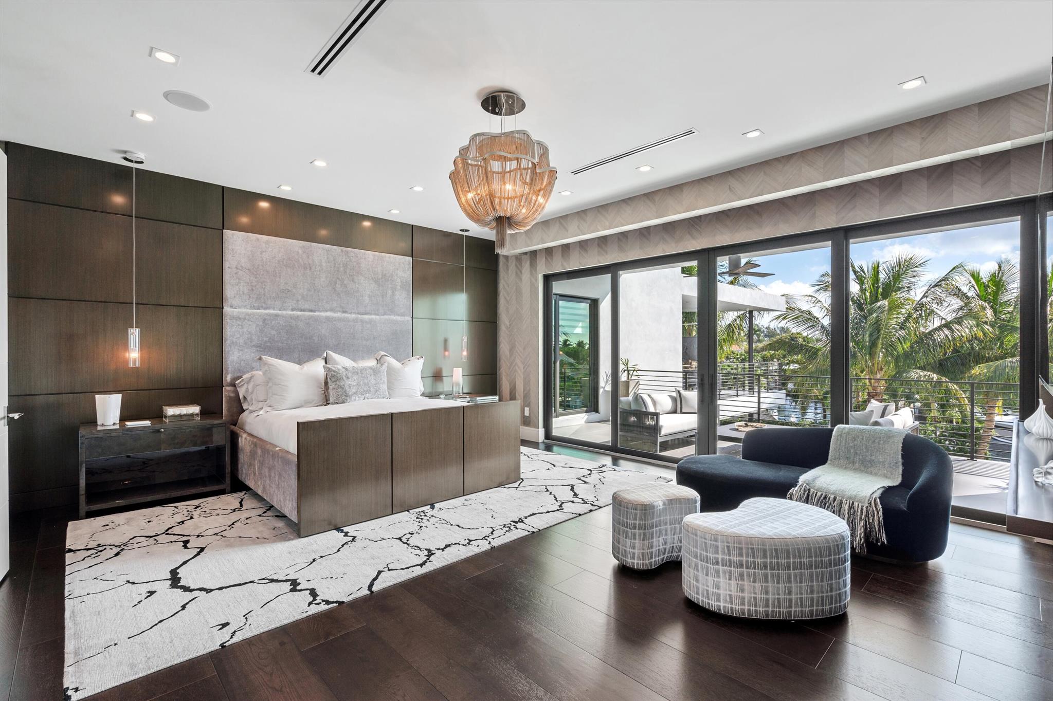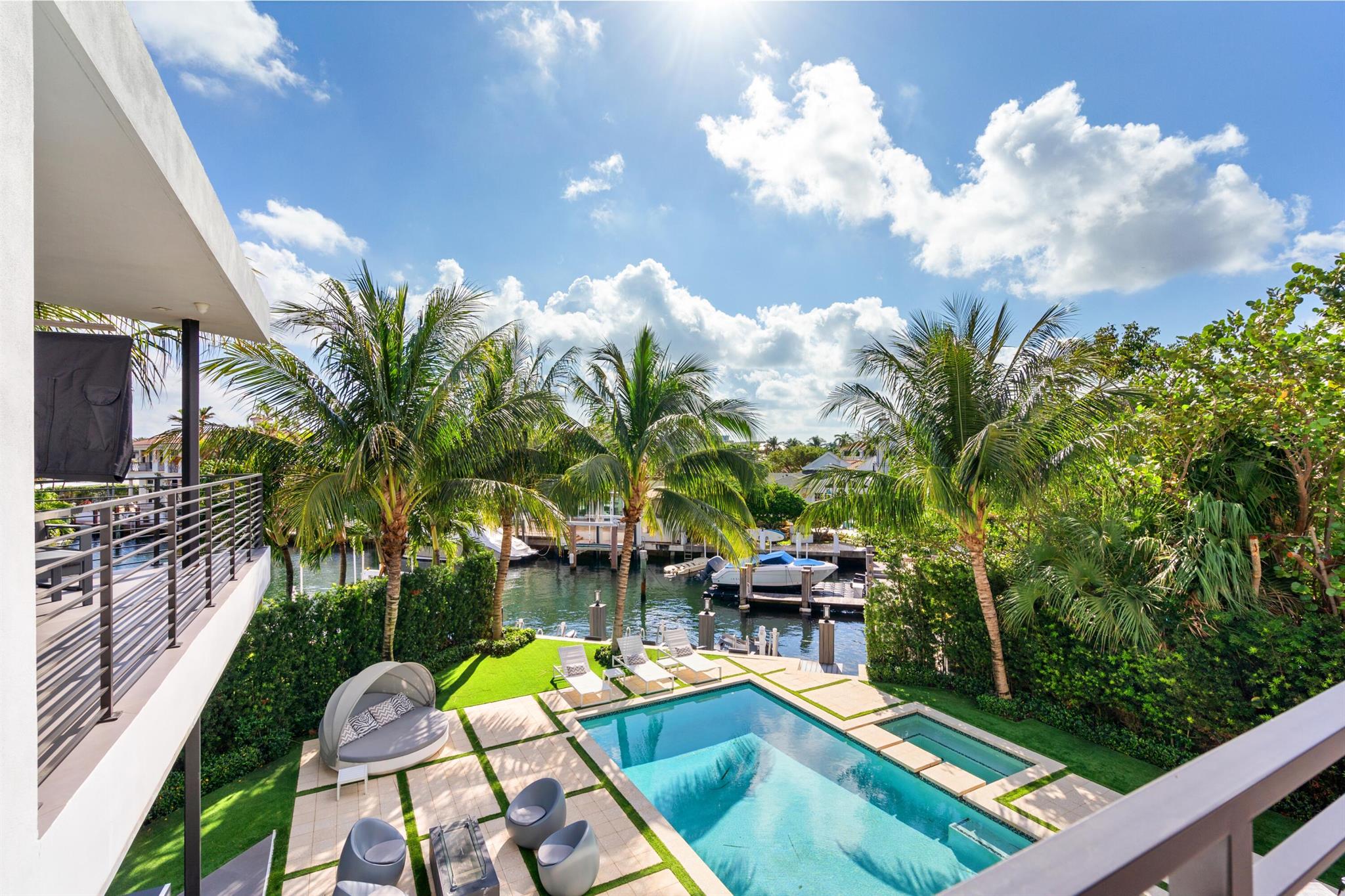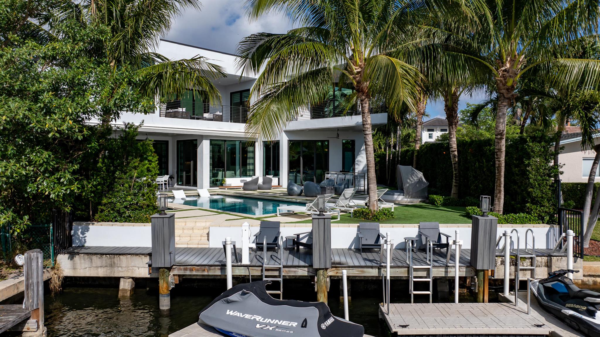 Epitomizing modern elegance, this stunning, five-bedroom masterpiece, built in 2019, meticulously maintained, and boasting 7,868 +/- total square feet, offers the ultimate in luxury coastal living. Making a breathtaking first impression immediately upon entry, the dramatic two-story foyer, with a freeform stairway and glass-encased elevator, introduces the open-concept-design living areas where window-walls of sliding glass doors open to loggias overlooking views of the resort-style backyard and scenic waterway. The living and dining rooms integrate seamlessly with the gourmet dual-island kitchen, a culinary haven fitted with contemporary, grey-lacquered cabinetry; Thermador stainless appliances; marble counters and backsplashes; and large walk-in pantry.