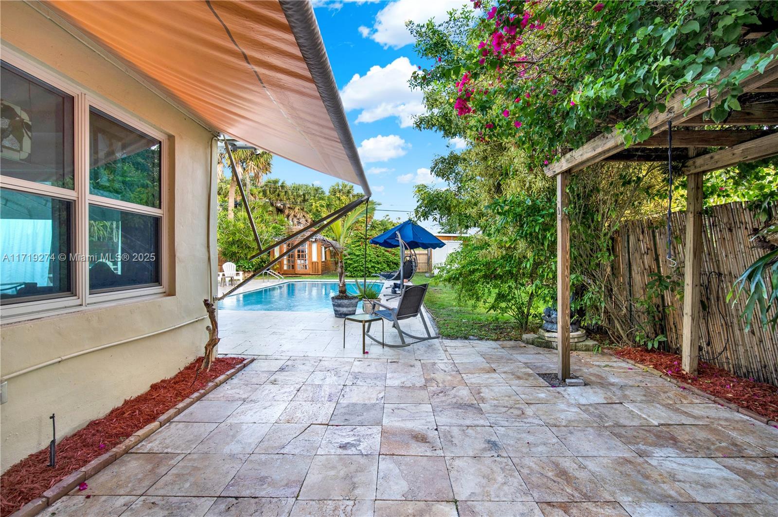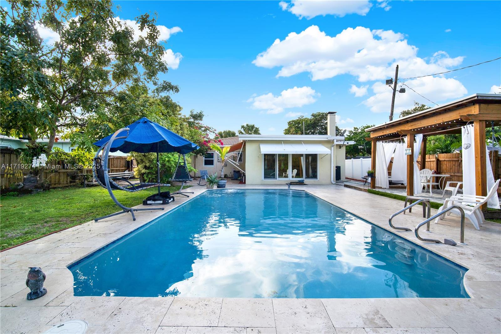 Welcome to your dream oasis! This one-of-a-kind 3-bedroom, 2-bath home perfectly blends luxury, comfort, and tranquility. Inside, elegant tile floors flow throughout, complementing the spacious family room with captivating views of the resort-style backyard. Step outside to discover your personal retreat: a sparkling pool surrounded by lush landscaping and a covered patio reminiscent of a luxury hotel cabana. The expansive backyard also features a "he-shed" and "she-shed," perfect for work, play, or creative escapes, along with an outdoor soaking tub for relaxation. Enjoy peaceful mornings on your private patio with retractable awnings. Full impact windows and doors provide beauty and security. This home is an entertainer's paradise.Please see attachments! SQ FT 1489 living done legally