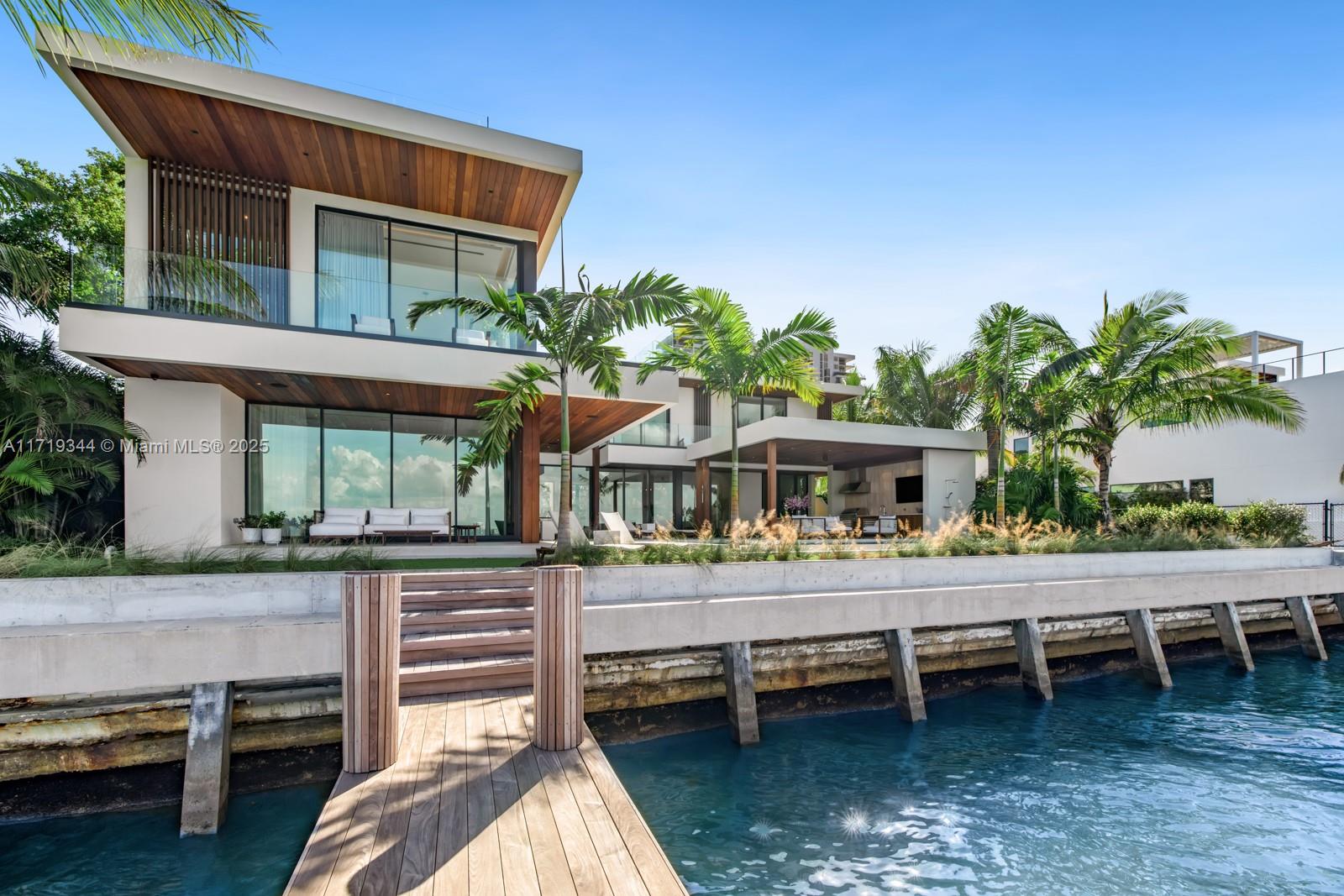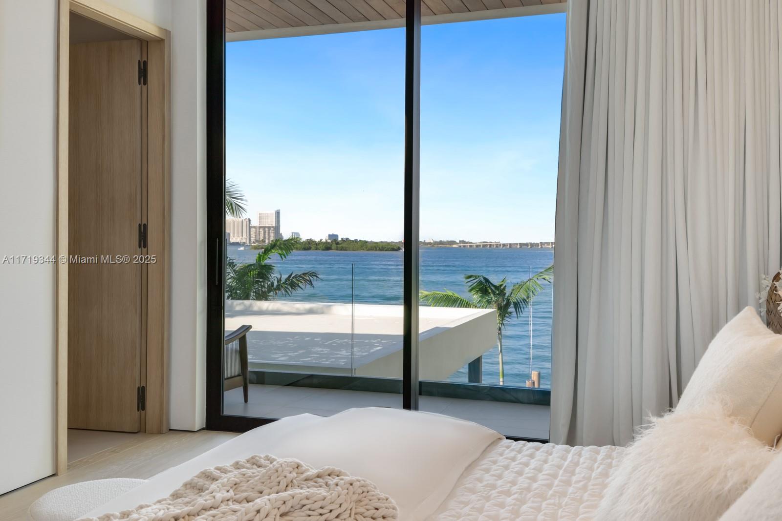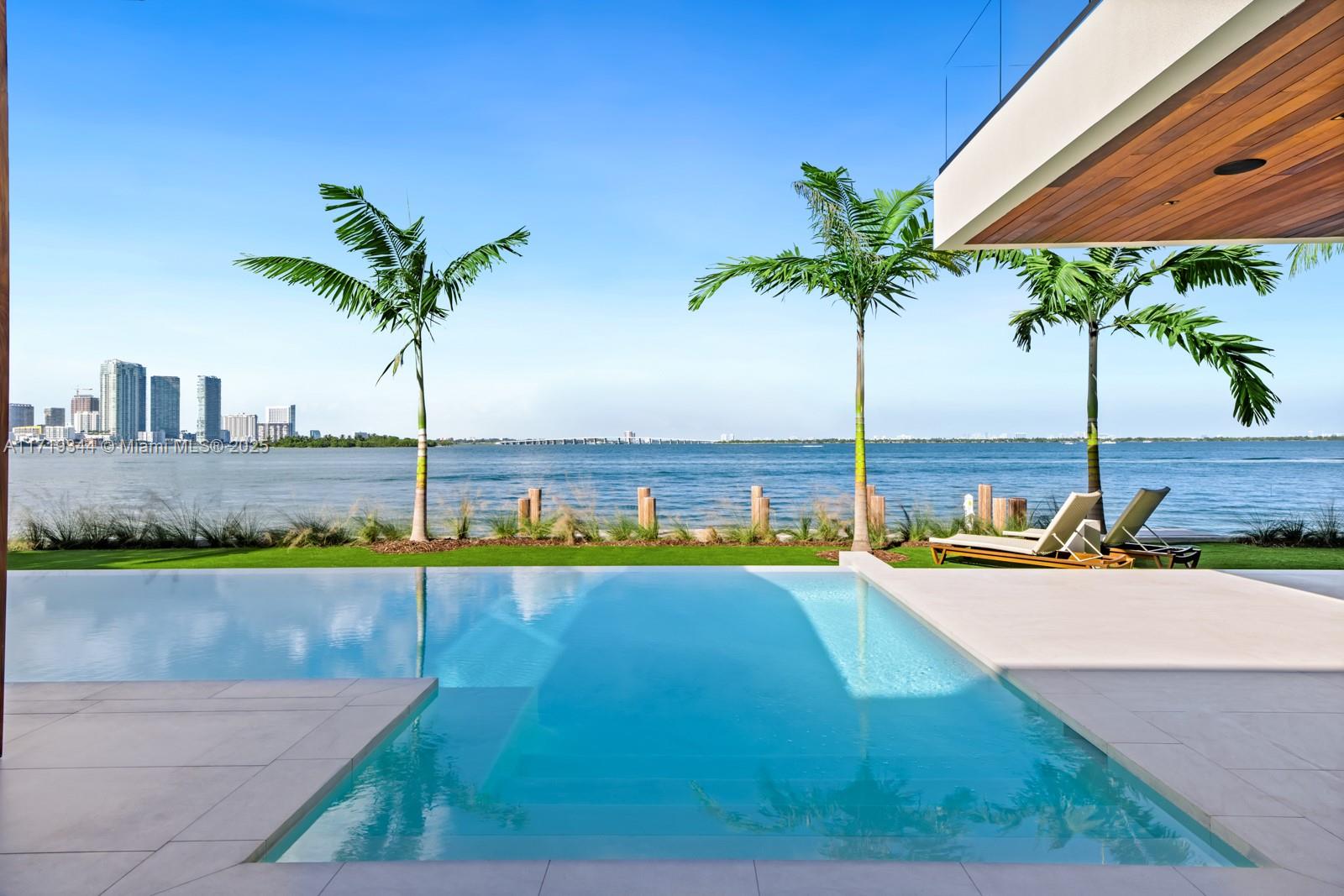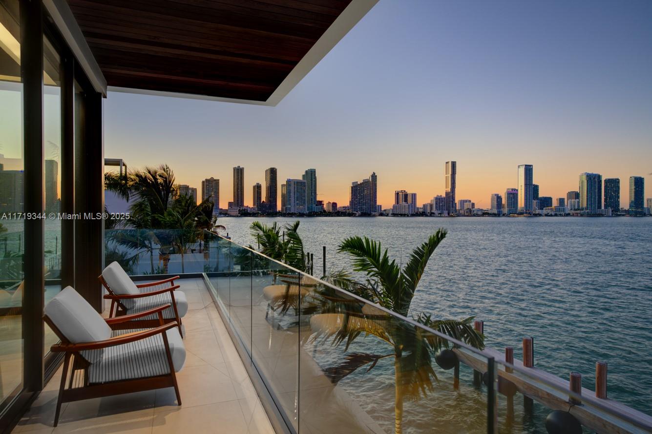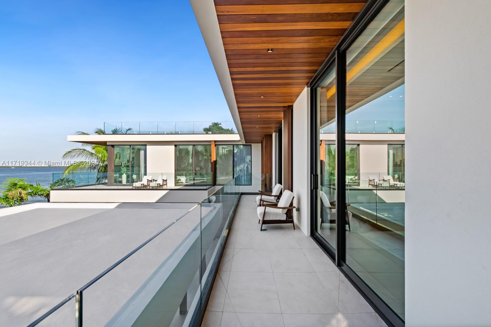 This elegant modern construction home sits on an oversized lot with 100 feet of water frontage, offering stunning open bay and Edgewater skyline views. Designed by the renowned Max Strang, the home features 6 luxurious bedrooms and 6.5 bathrooms, plus a dedicated office. A private theater creates the perfect environment for cinema enthusiasts, while the expansive outdoor living areas, including pool and covered cabana, offer an ideal setting for gatherings. The rooftop terrace boasts 360-degree views, providing sweeping vistas of the bay and city skyline. This residence is a stunning fusion of architectural brilliance and waterfront living at its finest.
