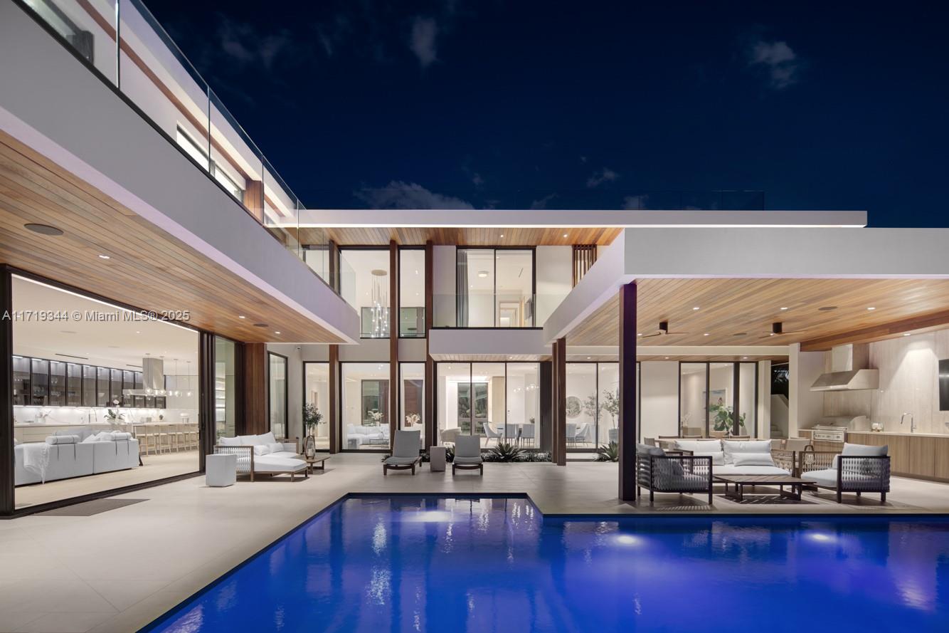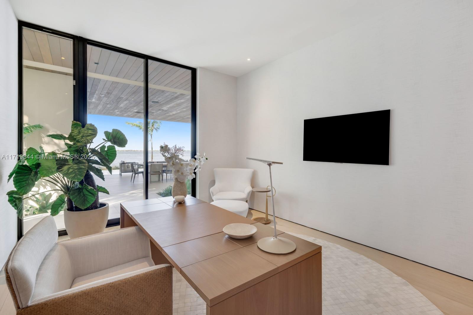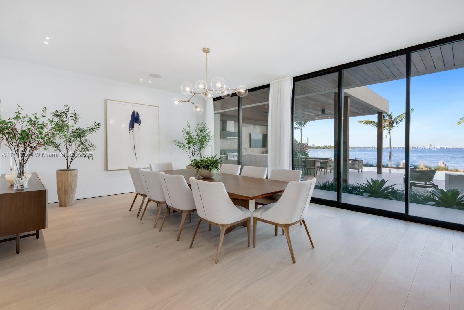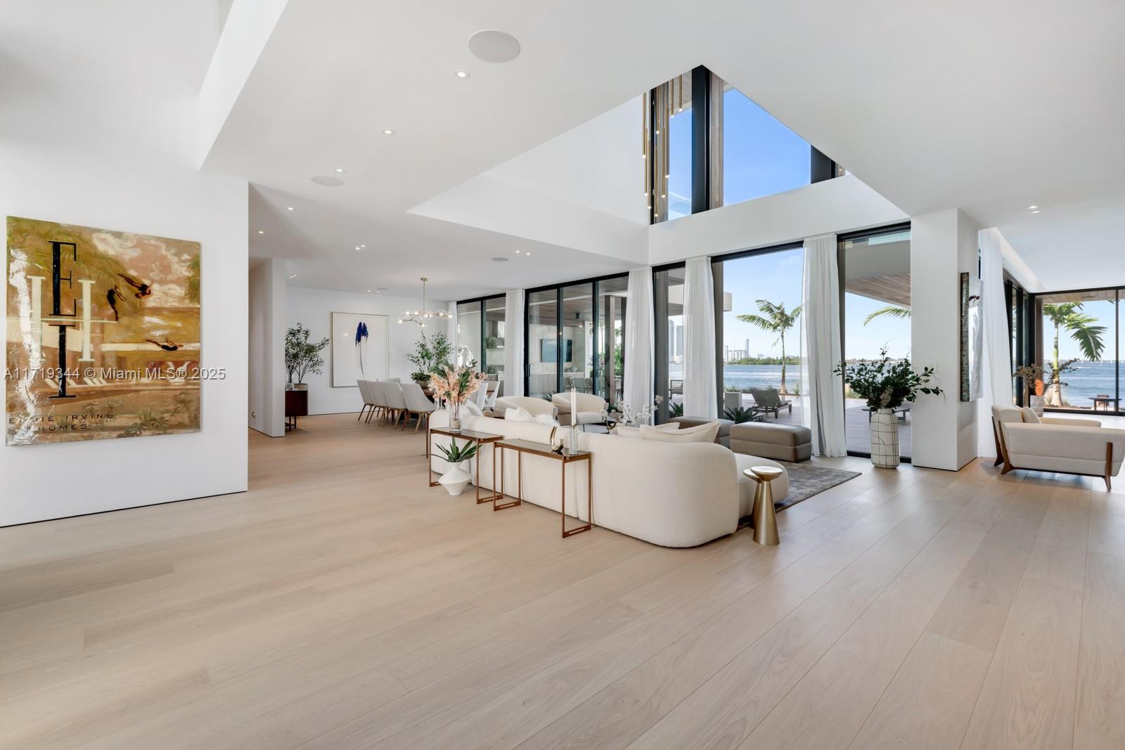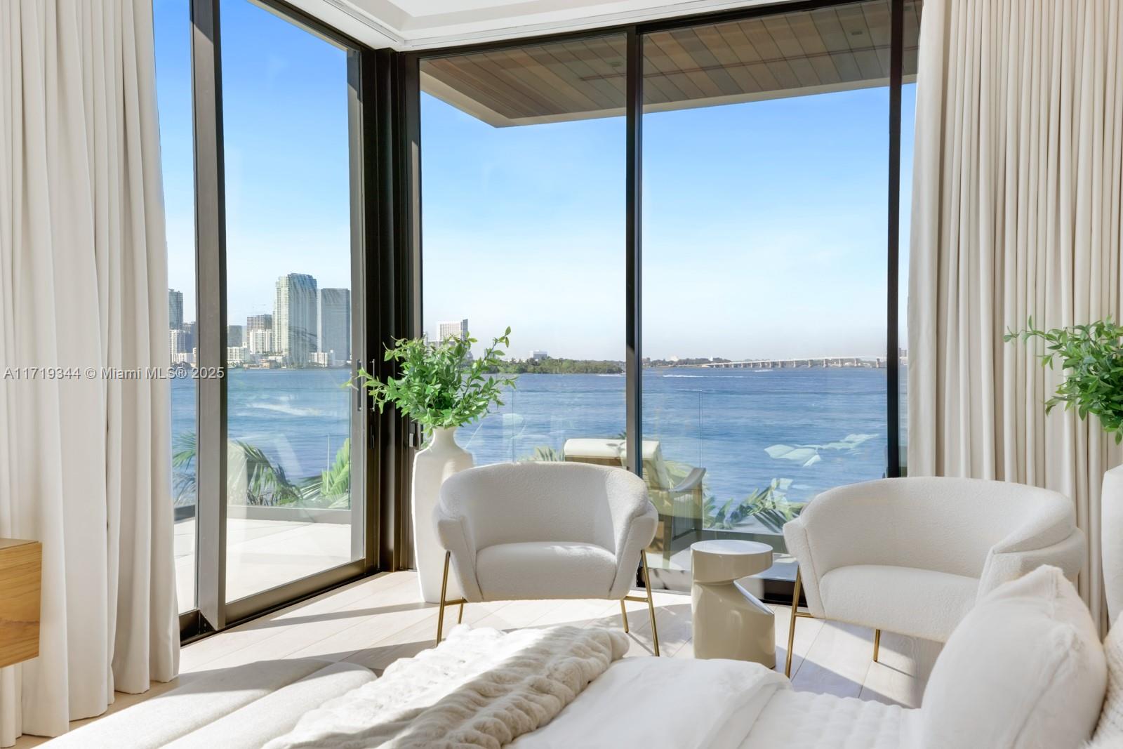 This elegant modern construction home sits on an oversized lot with 100 feet of water frontage, offering stunning open bay and Edgewater skyline views. Designed by the renowned Max Strang, the home features 6 luxurious bedrooms and 6.5 bathrooms, plus a dedicated office. A private theater creates the perfect environment for cinema enthusiasts, while the expansive outdoor living areas, including pool and covered cabana, offer an ideal setting for gatherings. The rooftop terrace boasts 360-degree views, providing sweeping vistas of the bay and city skyline. This residence is a stunning fusion of architectural brilliance and waterfront living at its finest.