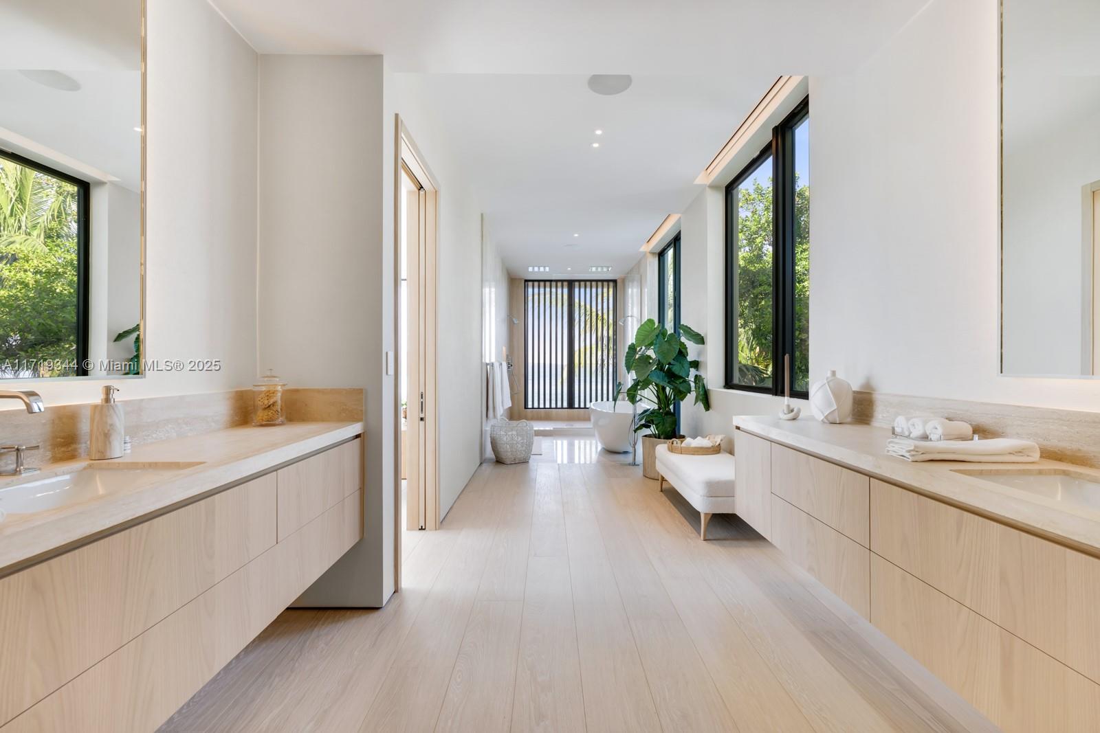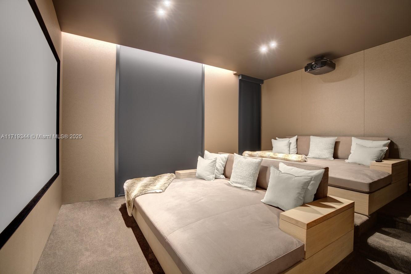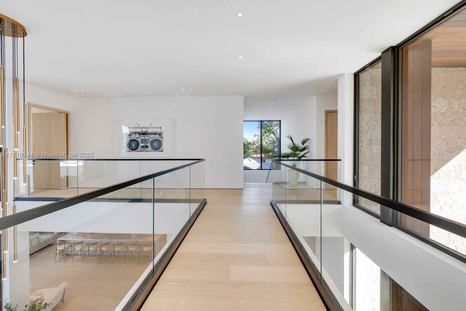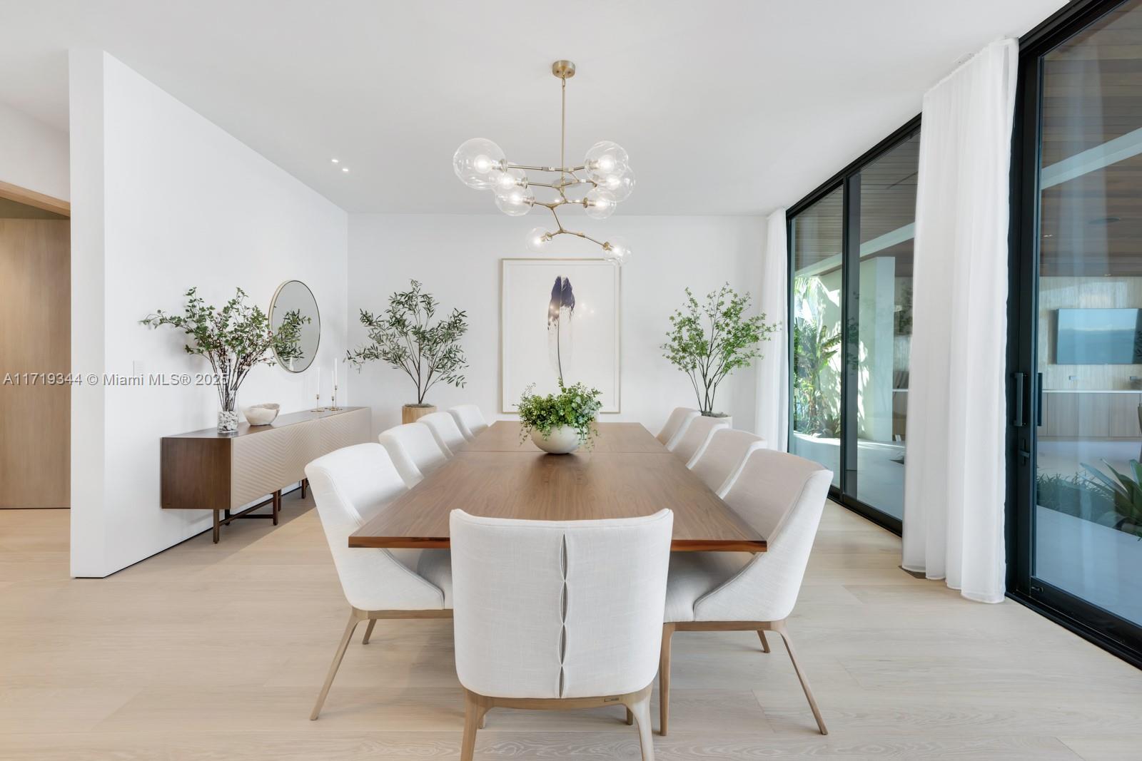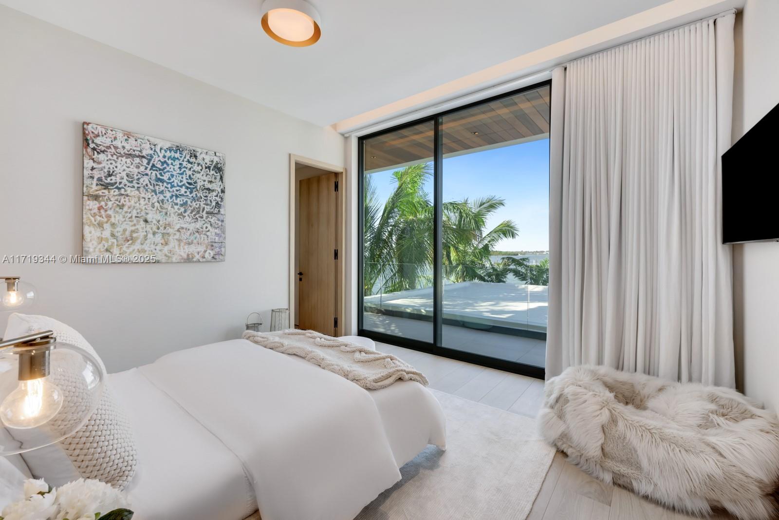 This elegant modern construction home sits on an oversized lot with 100 feet of water frontage, offering stunning open bay and Edgewater skyline views. Designed by the renowned Max Strang, the home features 6 luxurious bedrooms and 6.5 bathrooms, plus a dedicated office. A private theater creates the perfect environment for cinema enthusiasts, while the expansive outdoor living areas, including pool and covered cabana, offer an ideal setting for gatherings. The rooftop terrace boasts 360-degree views, providing sweeping vistas of the bay and city skyline. This residence is a stunning fusion of architectural brilliance and waterfront living at its finest.