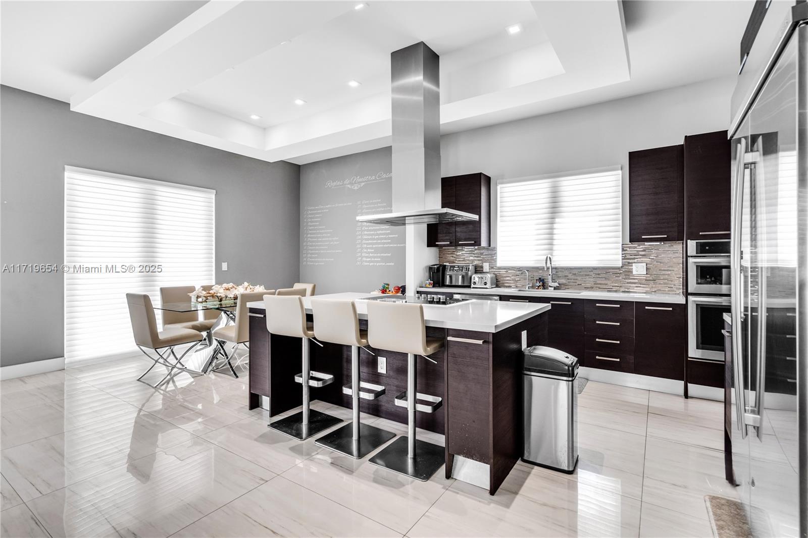 WELCOME TO THIS EXQUISITE 3-STORY MODERN OASIS LOCATED IN THE HEART OF DORAL, WHERE LUXURY MEETS COMFORT. THIS HOME FEATURES A SLEEK POOL TERRACE FOR ULTIMATE RELAXATION, A SOPHISTICATED WALK-IN WINE CELLAR FOR THE WINE ENTHUSIAST, AND FULLY BUILT-OUT CLOSETS FOR EFFORTLESS ORGANIZATION. THE INTERIORS BOAST ELEGANT MARBLE FLOORING THROUGHOUT, WITH WATERPROOF VINYL ON THE STAIRS AND UPSTAIRS AREAS FOR STYLE AND DURABILITY. THE ROOFTOP IS A TRUE ENTERTAINER’S PARADISE, EQUIPPED WITH A BUILT-IN BBQ, AN AWNING FOR SHADE, AND AMPLE SPACE TO HOST UNFORGETTABLE FAMILY GATHERINGS OR LIVELY CELEBRATIONS WITH FRIENDS. WHETHER YOU’RE ENJOYING QUIET EVENINGS OR LIVELY EVENTS, THIS HOME OFFERS IT ALL. DON’T WAIT—MAKE THIS CONTEMPORARY MASTERPIECE YOUR DREAM HOME TODAY!