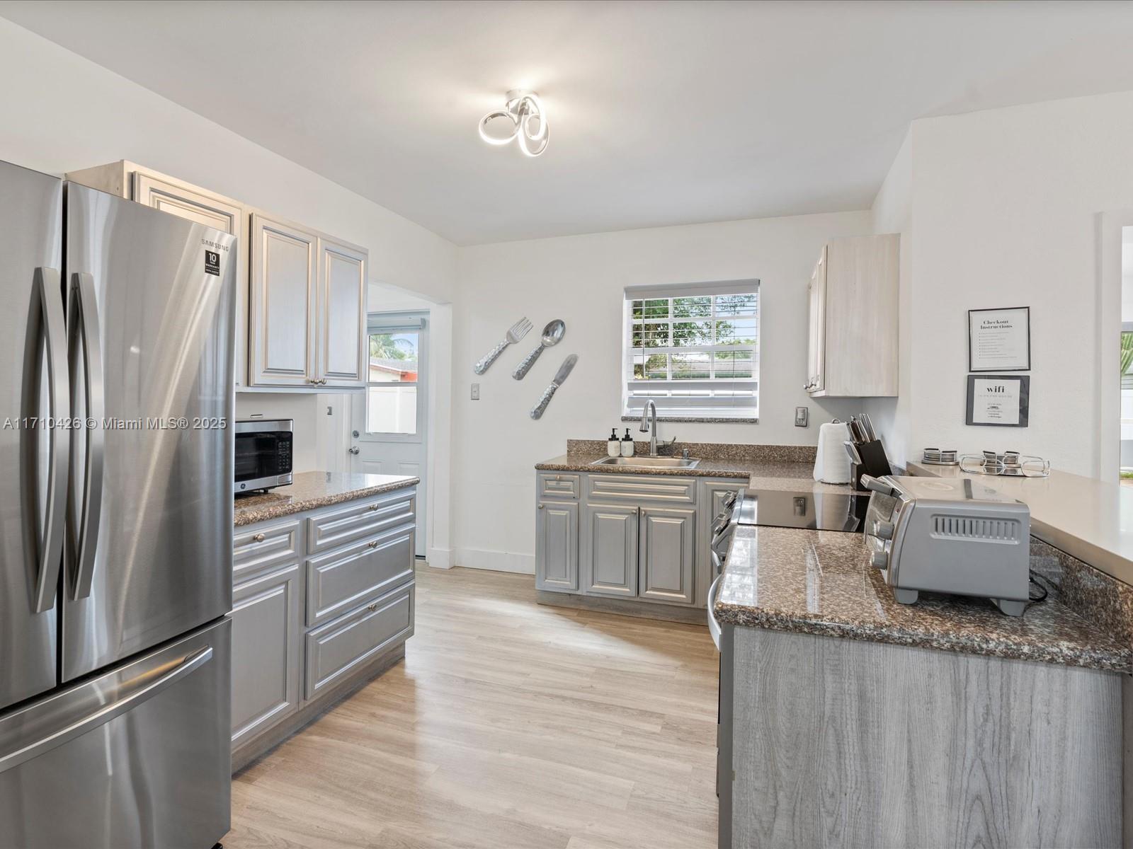Discover the excitement in this fully remodeled 4 bedroom 2 bathroom home with a fun backyard consisting of a pool, pergola and multiple sitting stations. Ideal for entertaining, the open floor plan features, renovated kitchen and bathrooms, tile floors, and LED lights. The new kitchen is carefully designed for cooking and storage, marble countertops, and top-of-the-line stainless steel appliances. Super close to Publix, unique cafes, and shopping centers. Enjoy the privacy of a fenced backyard. Move-in ready, this home seamlessly combines modern luxury with functionality. Discover the epitome of comfort and style in this meticulously crafted residence.