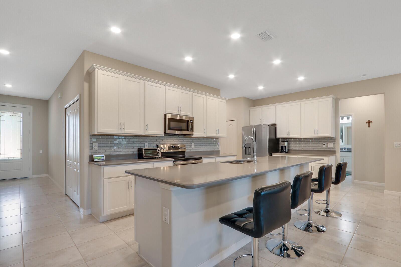 Meticulous! 2019 3bed, 2 bath, PLUS den/office/or potential 4bed w/ large 3-car epoxy garage, pull-down attic stairs & extra side park pad for RV/boat.The open kitchen boasts a large island with quartz countertops, stainless steel appliances and pantry. Relax in the living room by the electric fireplace, or in the screened lanai with tile flooring, an outdoor refrigerator, and well-kept plants. Enjoy the backyard oasis with a paver patio, Blackstone grill, gazebo, separate shed, and mature fruit trees with beautiful PRESERVE view. Upgraded lighting, cabinets, and ceiling fans throughout. Dual UV disinfectant system in HVAC, large primary suite with walk in closet & tray ceiling. Newer gutters and leaders, laundry room w/cabinets and oversized washer and dryer. Ideal St. James location.