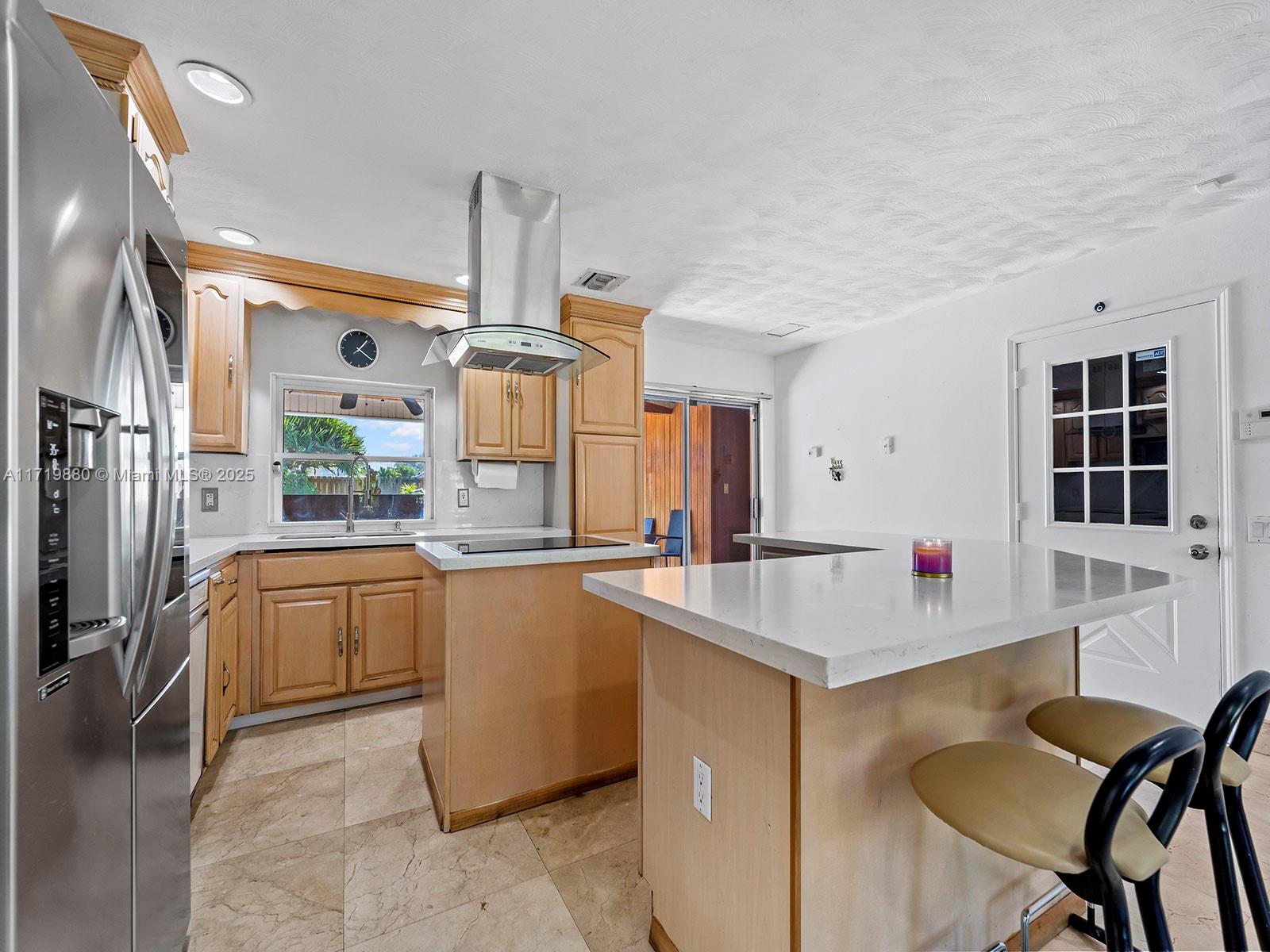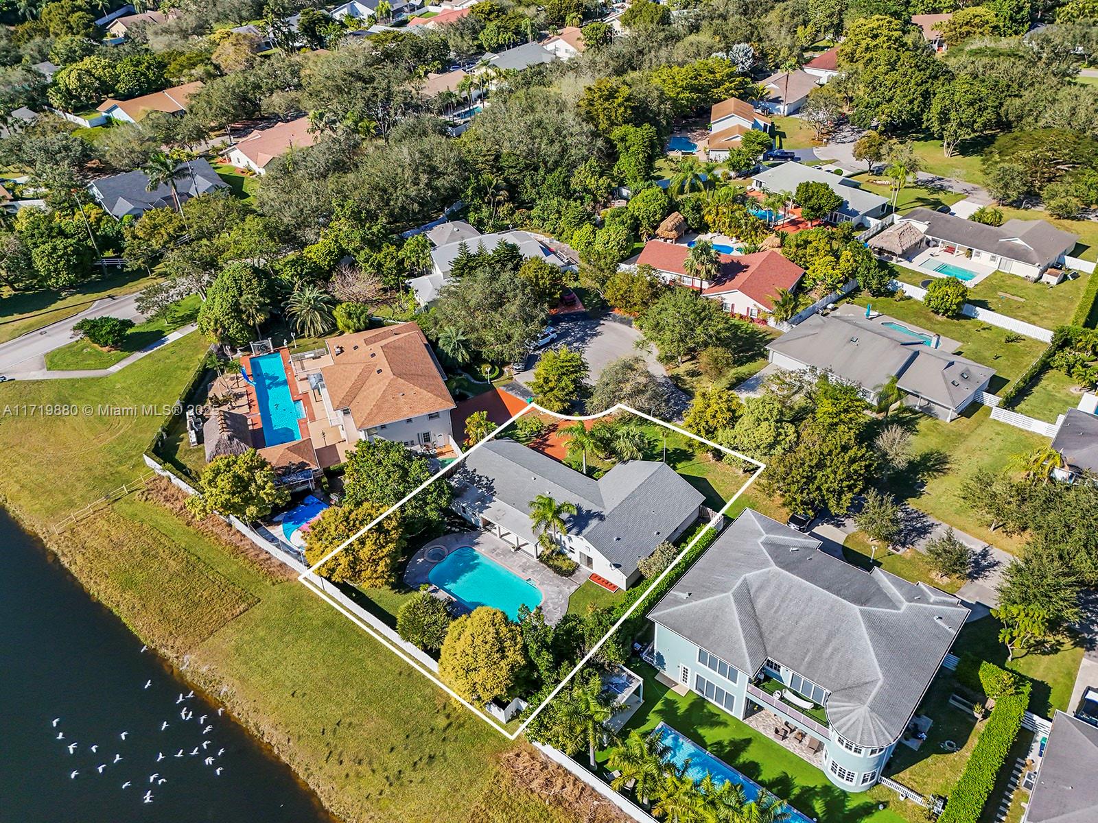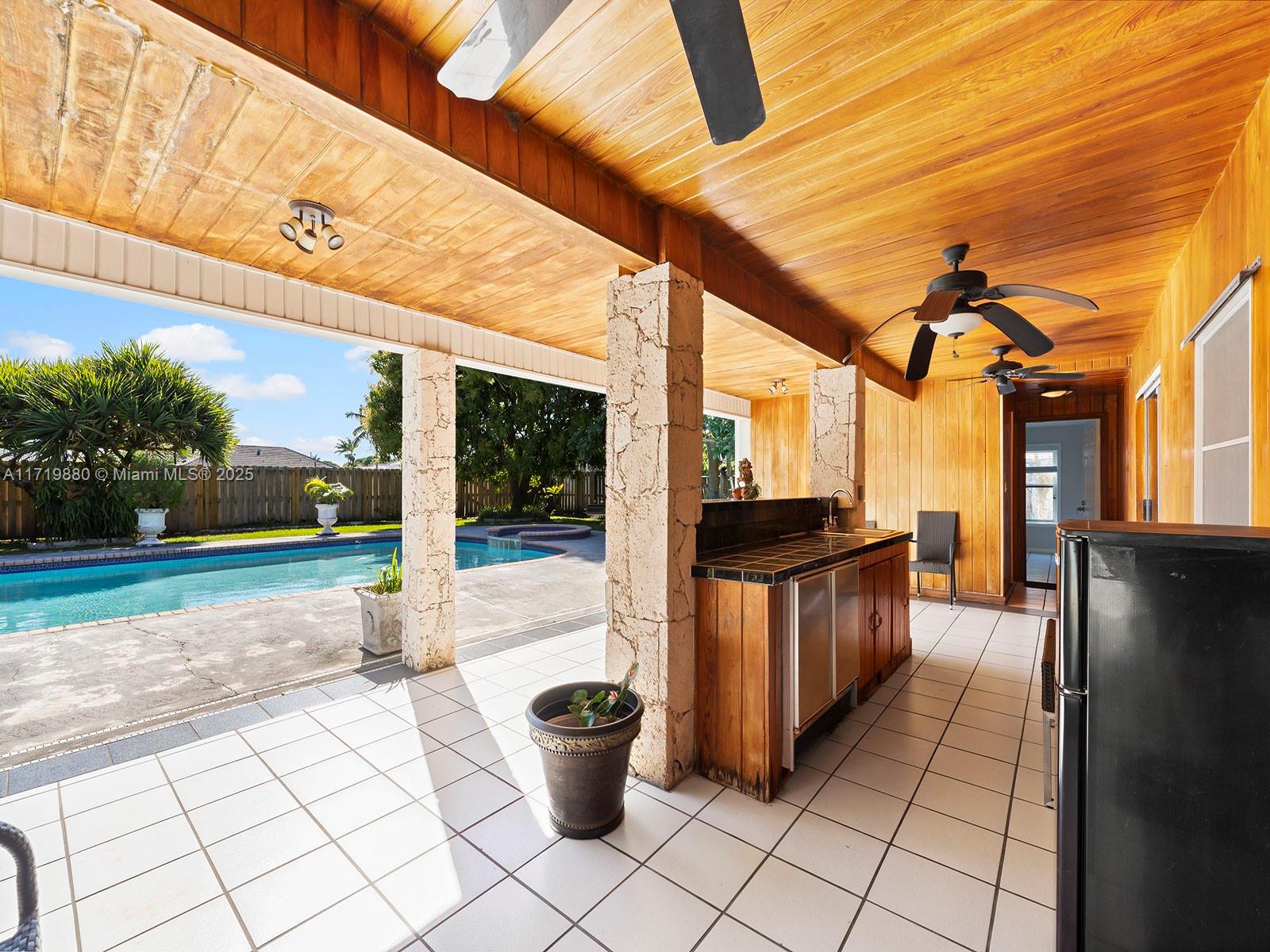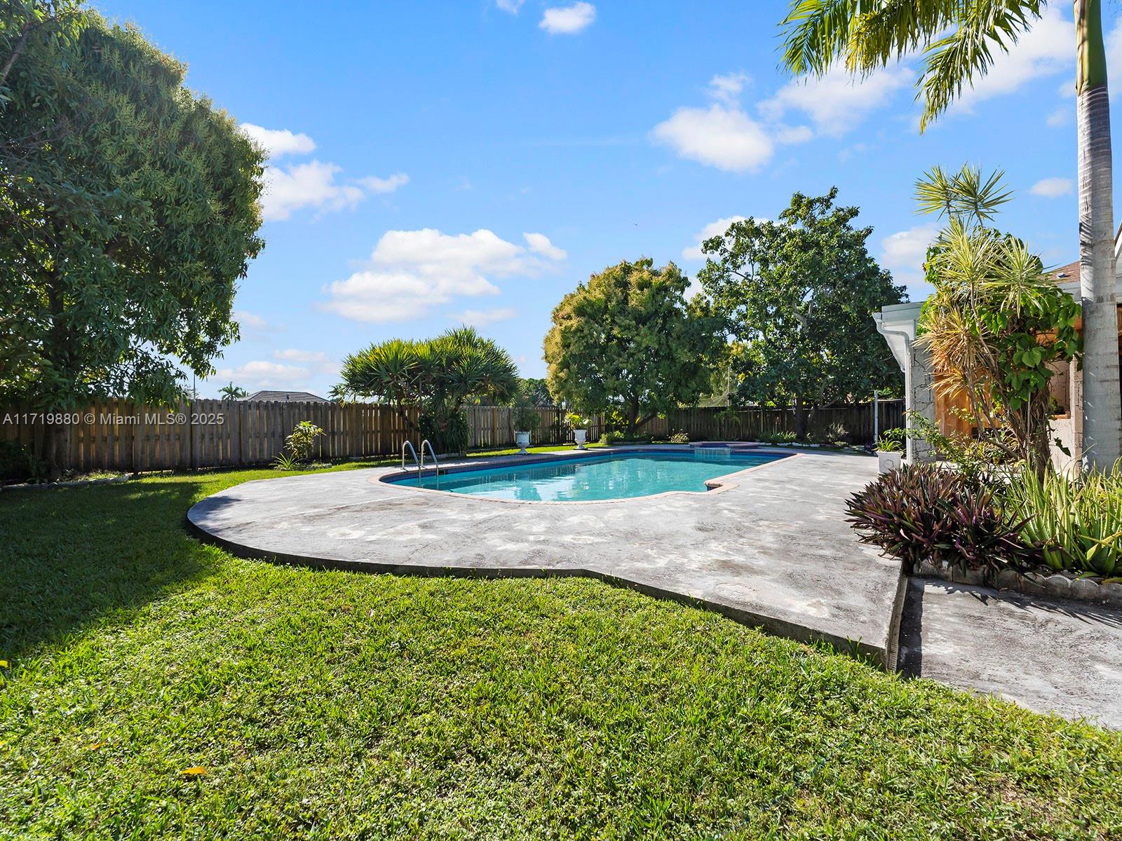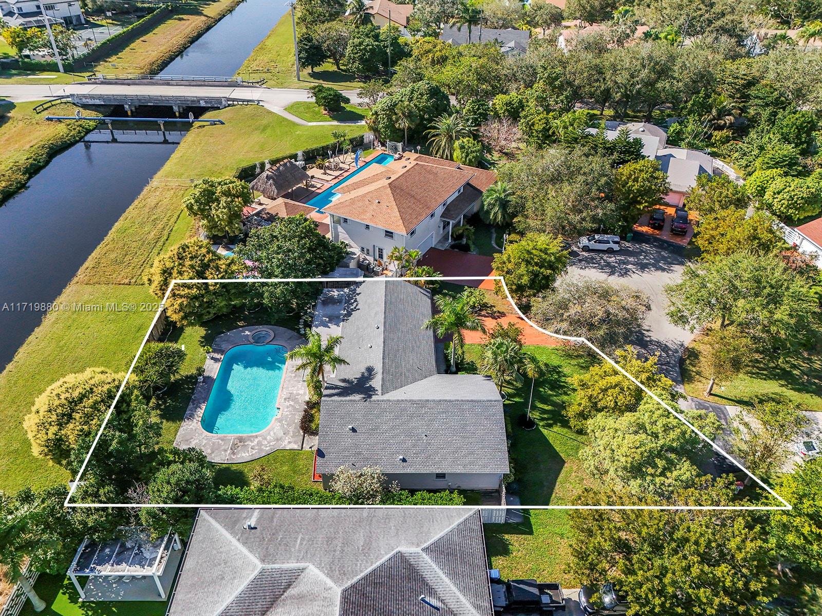 Impressive Estate Home in the desirable and family-oriented Country Walk neighborhood. This stunning one-story property is located in a cul-de-sac. It is comprised of 4 bedrooms plus a Den (ideal for an office, game or playroom), 3.5 bathrooms, a large dining and living room, a separated open kitchen with an island and breakfast area, and an independent laundry room, lots of closet spaces, all encompassed within the 2,349 sq ft living area. The outdoor space is also splendid, whereas the covered terrace, oversized pool, jacuzzi, fruit trees, and a beautiful landscaping will allow full enjoyment of the all-fenced 13,500 sq ft lot, across from a Canal. The roof is from 2019.
