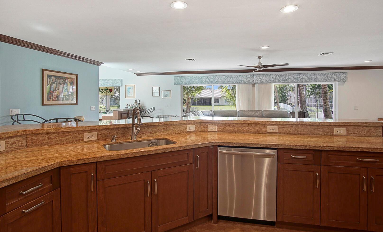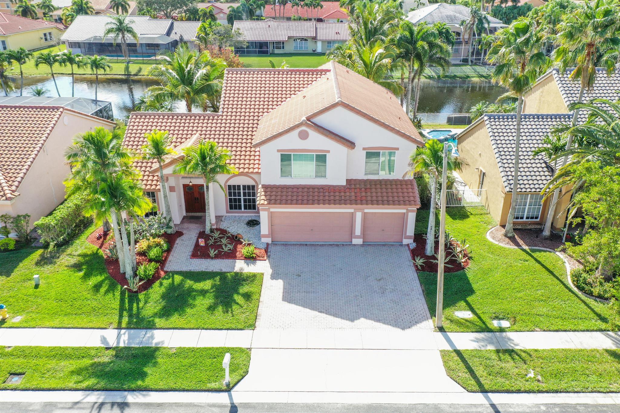 Picture-perfect living awaits in this lake front home. With a backyard ready for a pool and three car garage. Stunning chef-inspired kitchen with double wall ovens, breakfast bar, large walk-in pantry and granite counters. Open family room with full wet bar with sliding doors to the covered patio. Crown moldings with upgraded window treatments and interior laundry. Separate formal dining and living room with a private main floor bedroom with cabana bath. Large master suite with dual sinks, garden tub, walk-in shower, toilet, and Bidet closet. All 3 bedrooms are very spacious with lots of natural light and share a bathroom with a tub shower and dual sinks. Partial impact windows and shutters for the remaining. Community pool and access to Rose Price Park with several amenities.