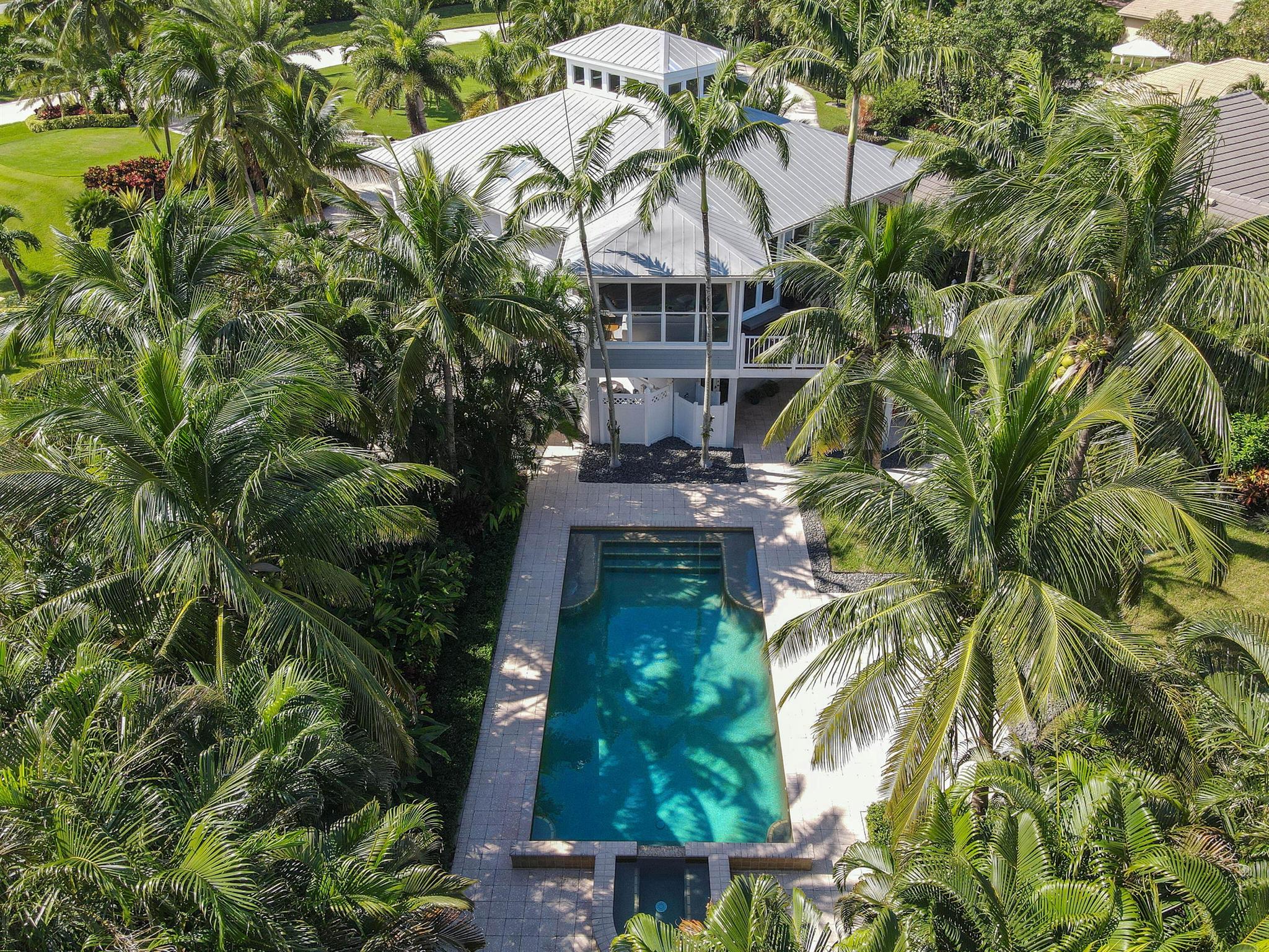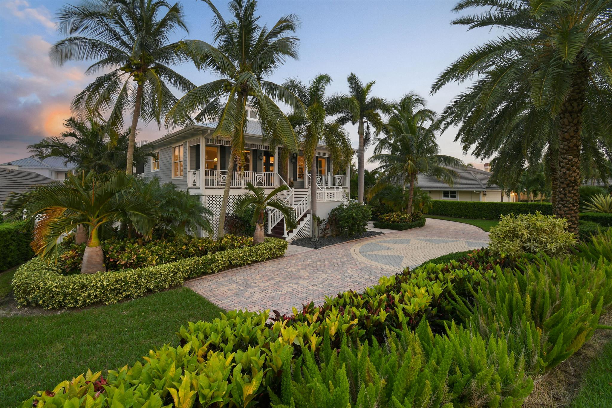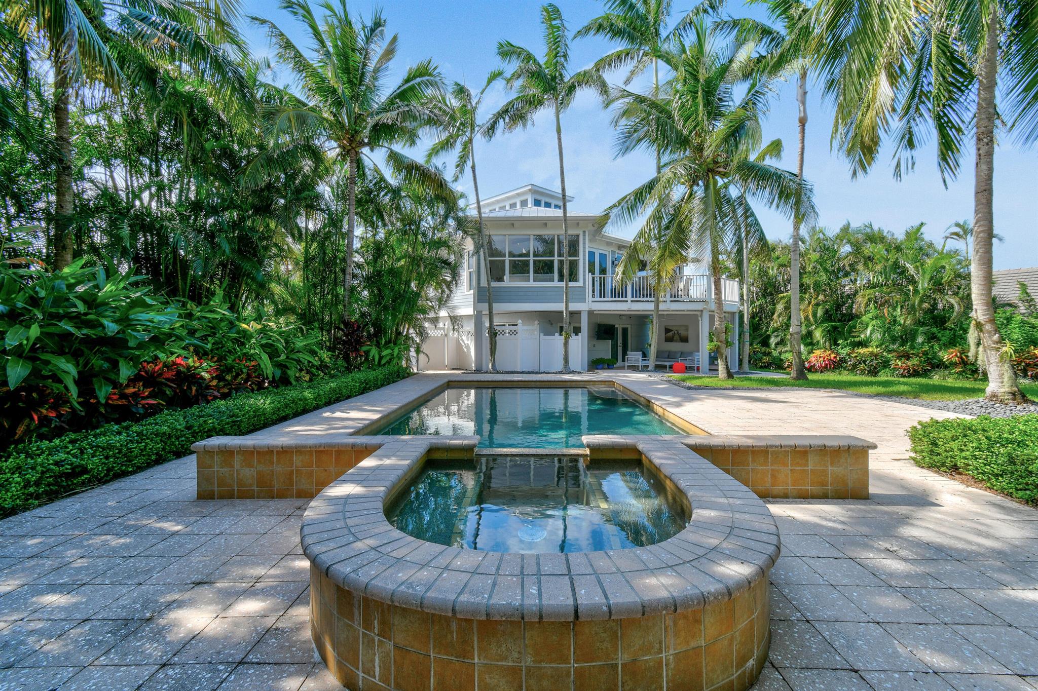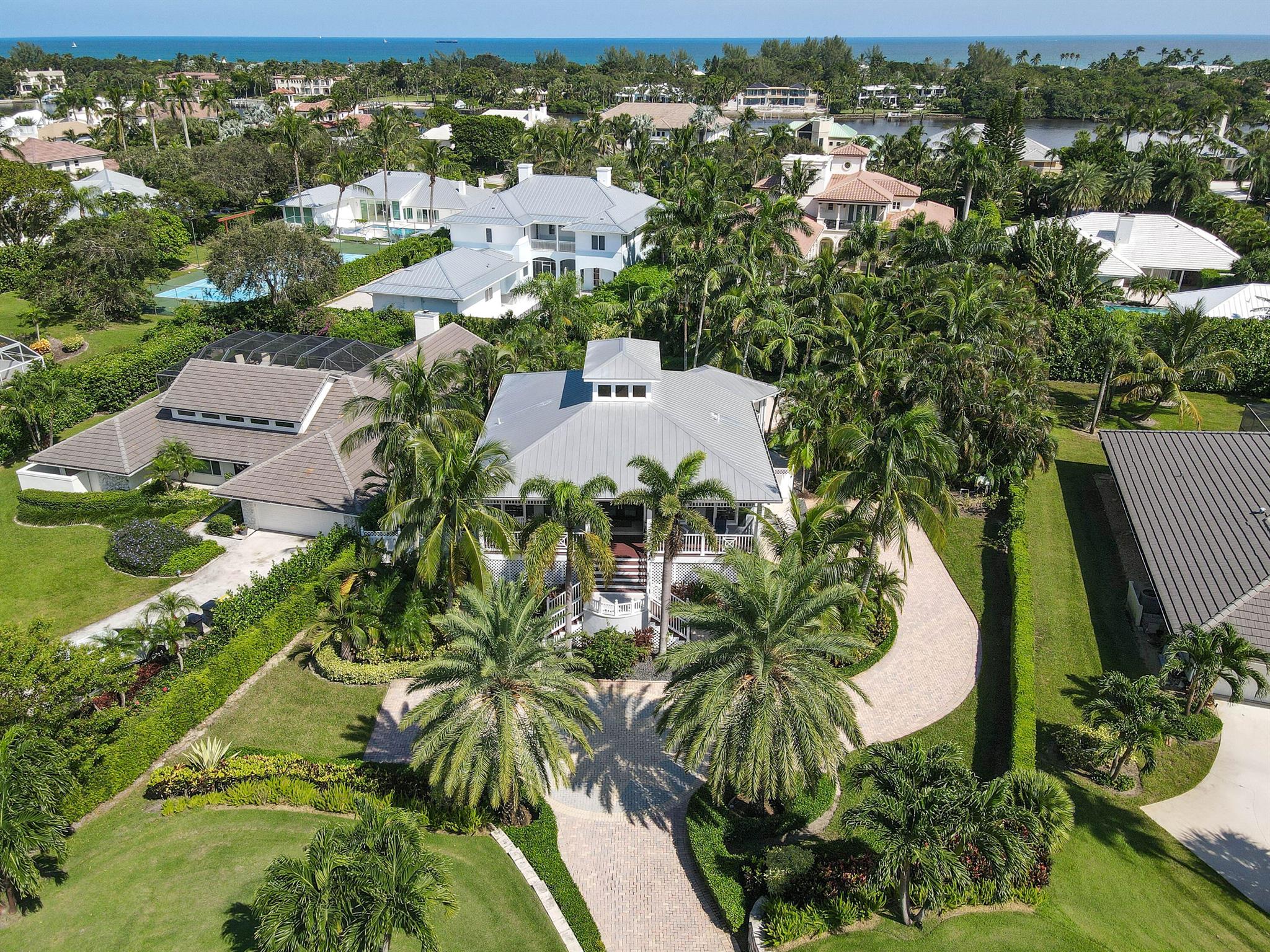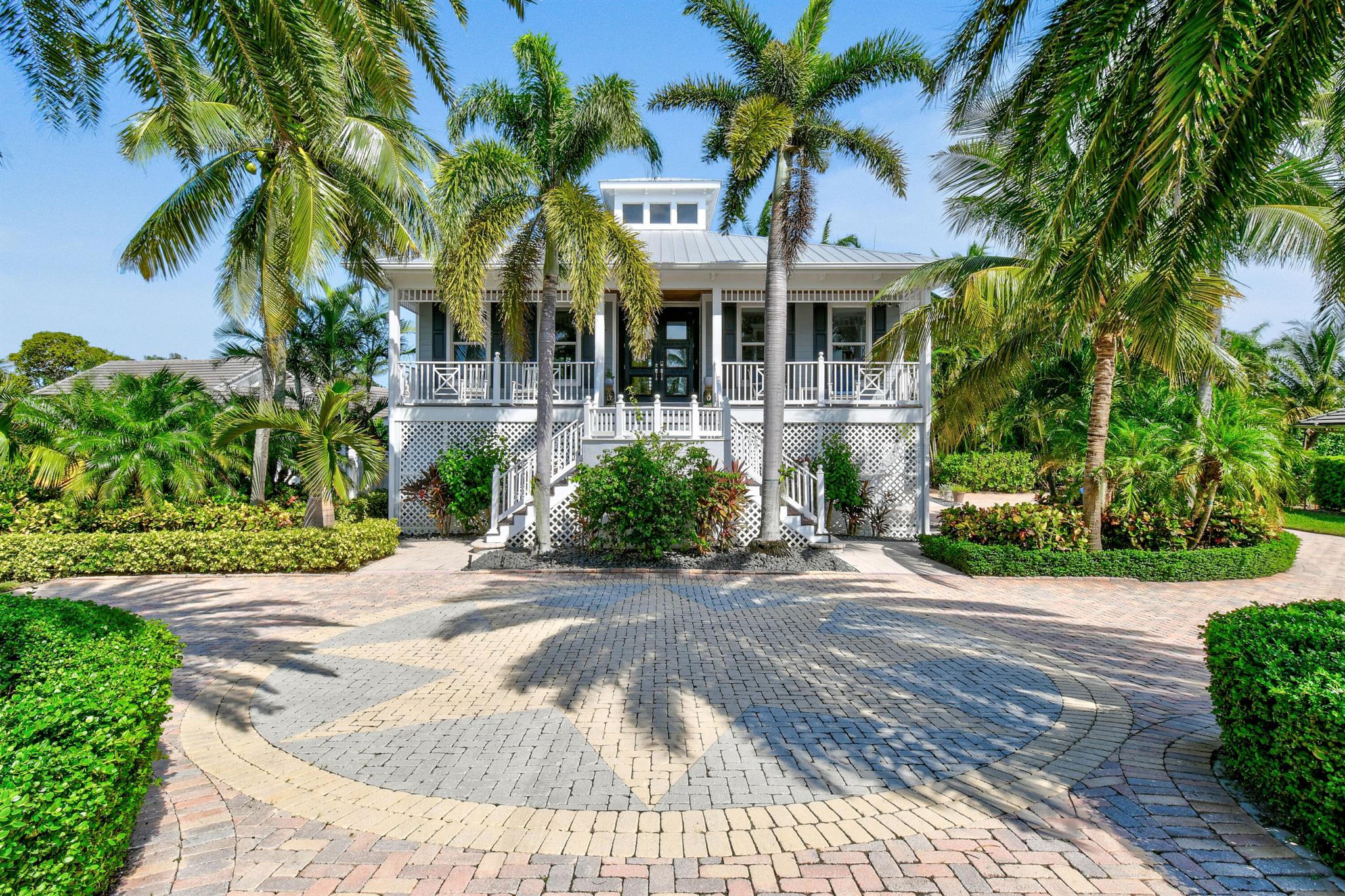 Discover the epitome of Florida tranquility in this breathtaking estate where luxury merges with innovative design. Nestled within the prestigious Indian Hills community in Tequesta, just east of US Highway 1 and a mile south of Jonathan Dickinson State Park, this Key West-style home radiates the feel of a tropical resort with sophisticated, modern updates. Situated on over half an acre of lush, private landscape, this property boasts a heated pool and spa, a spacious lanai, an expansive patio, large backyard, an outdoor shower, and a beautiful array of mature palm trees swaying in the ocean breeze.