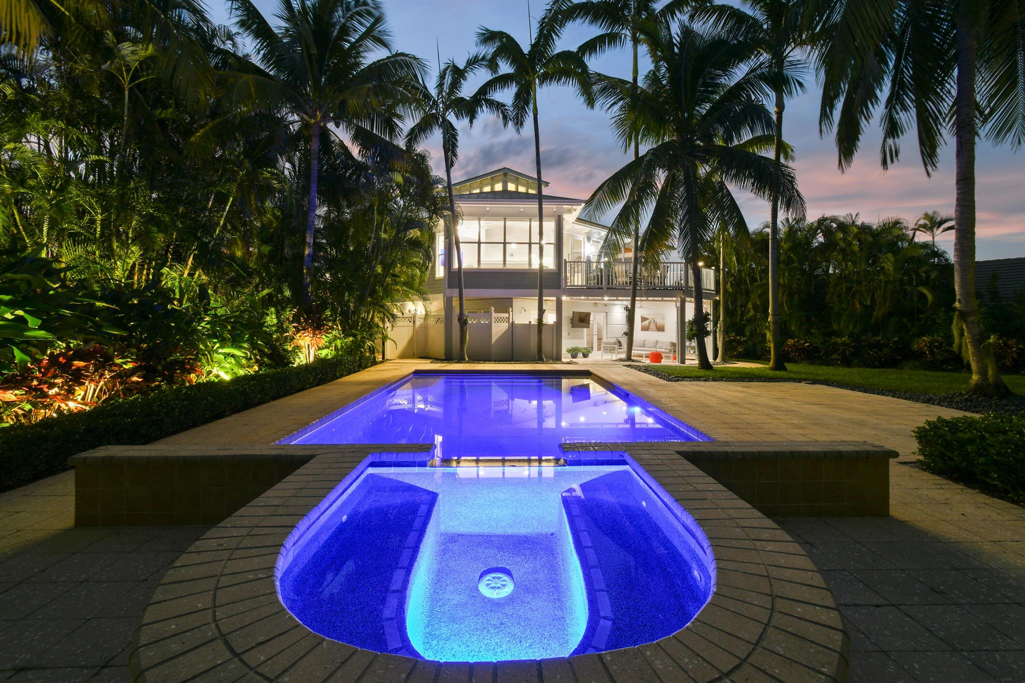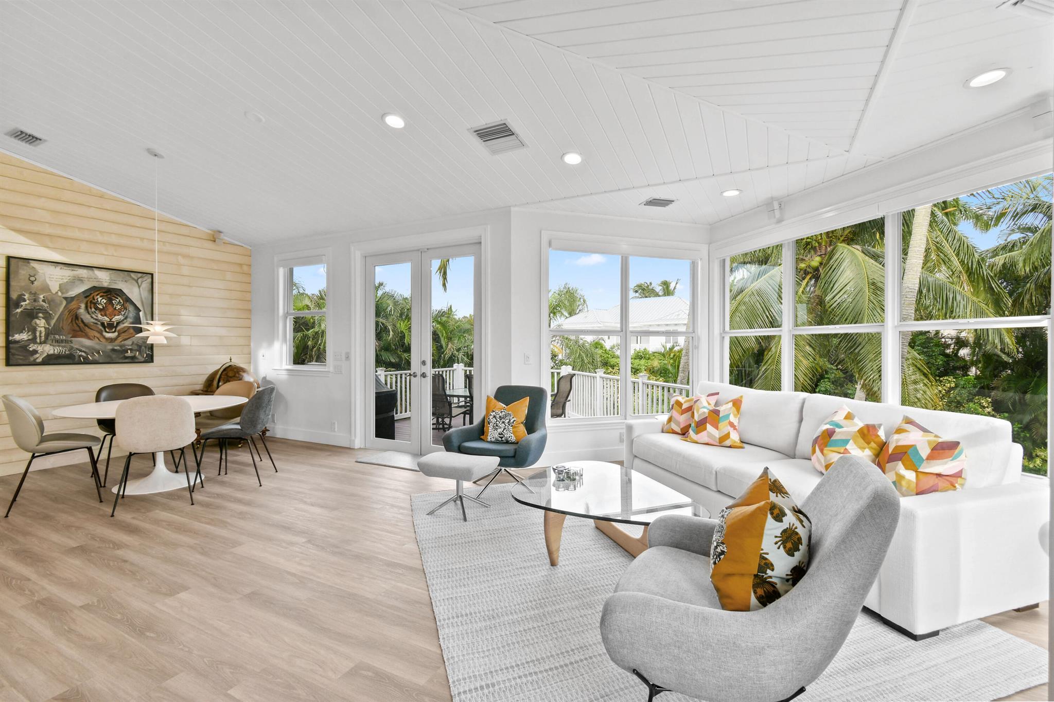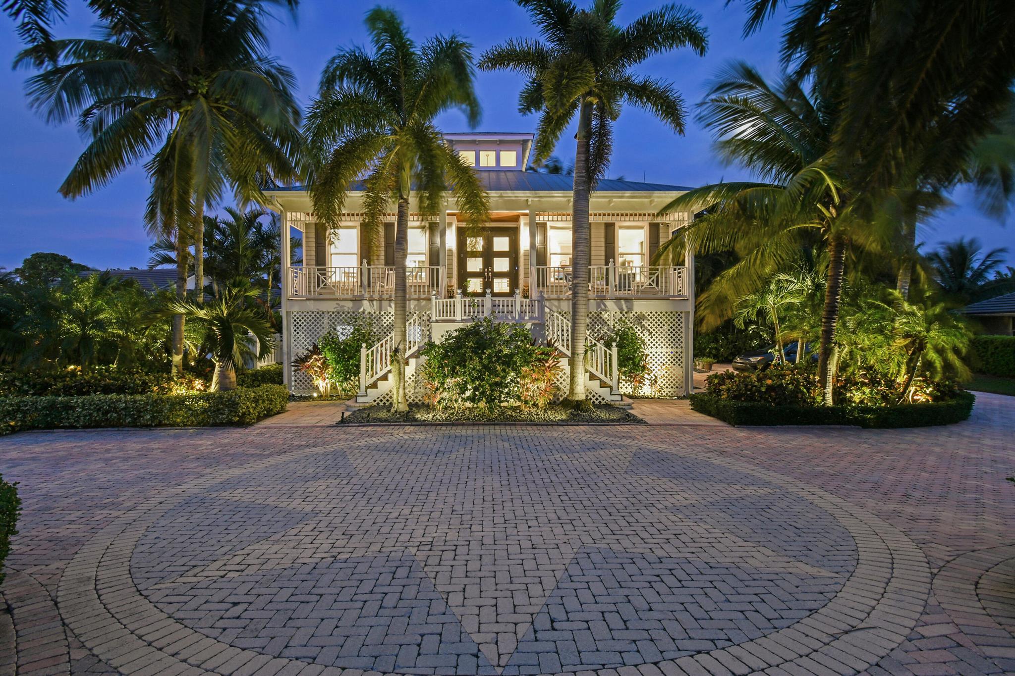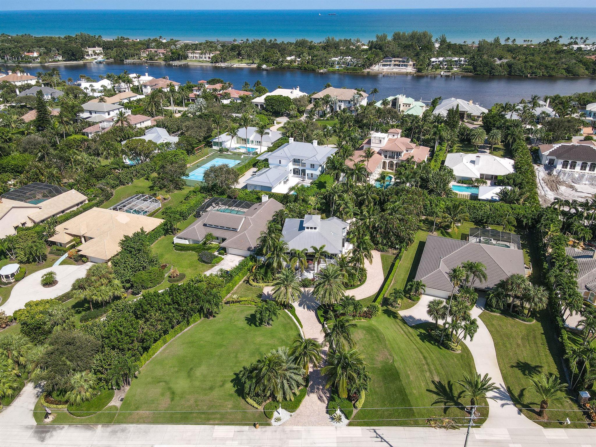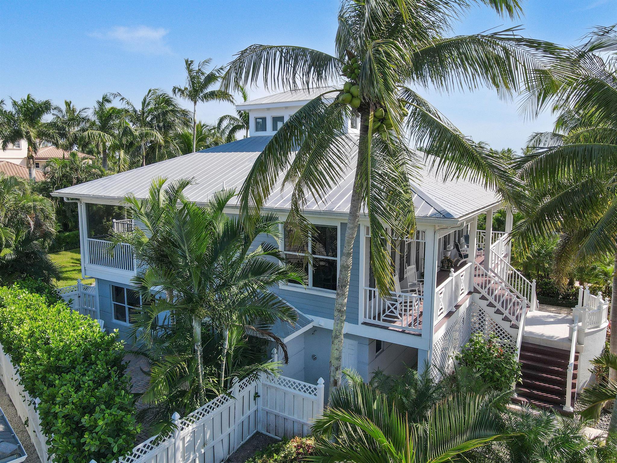 Discover the epitome of Florida tranquility in this breathtaking estate where luxury merges with innovative design. Nestled within the prestigious Indian Hills community in Tequesta, just east of US Highway 1 and a mile south of Jonathan Dickinson State Park, this Key West-style home radiates the feel of a tropical resort with sophisticated, modern updates. Situated on over half an acre of lush, private landscape, this property boasts a heated pool and spa, a spacious lanai, an expansive patio, large backyard, an outdoor shower, and a beautiful array of mature palm trees swaying in the ocean breeze.