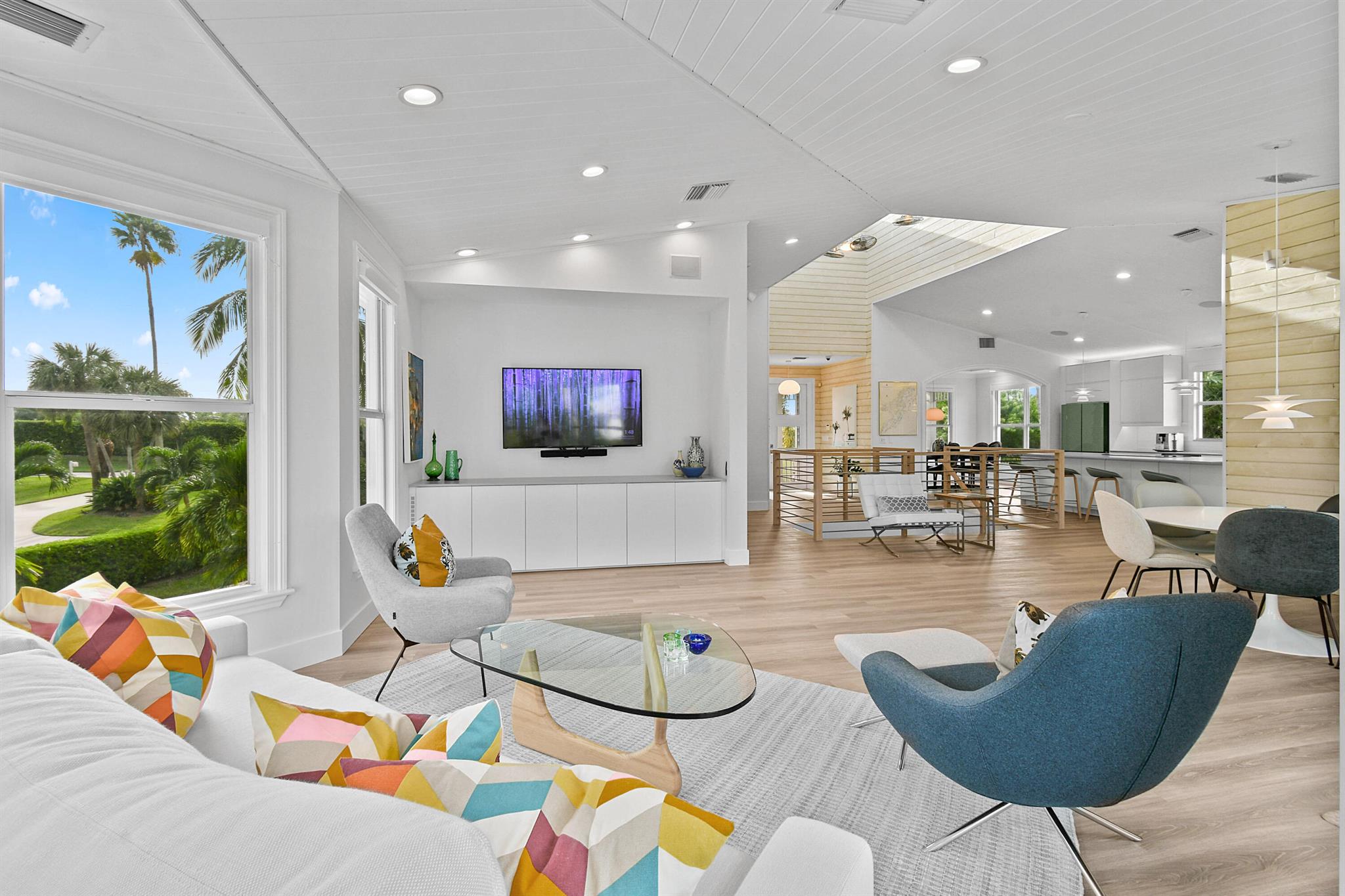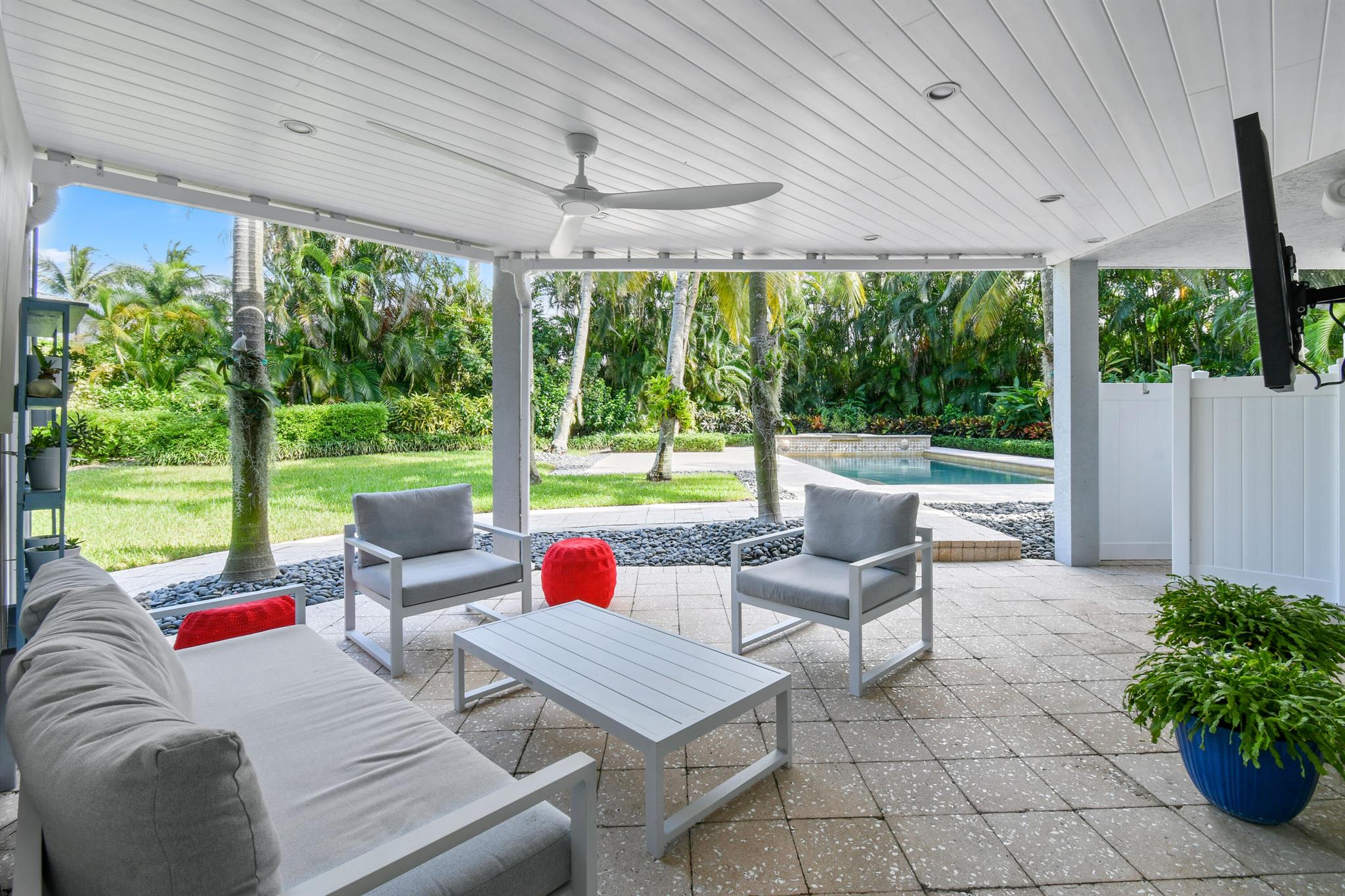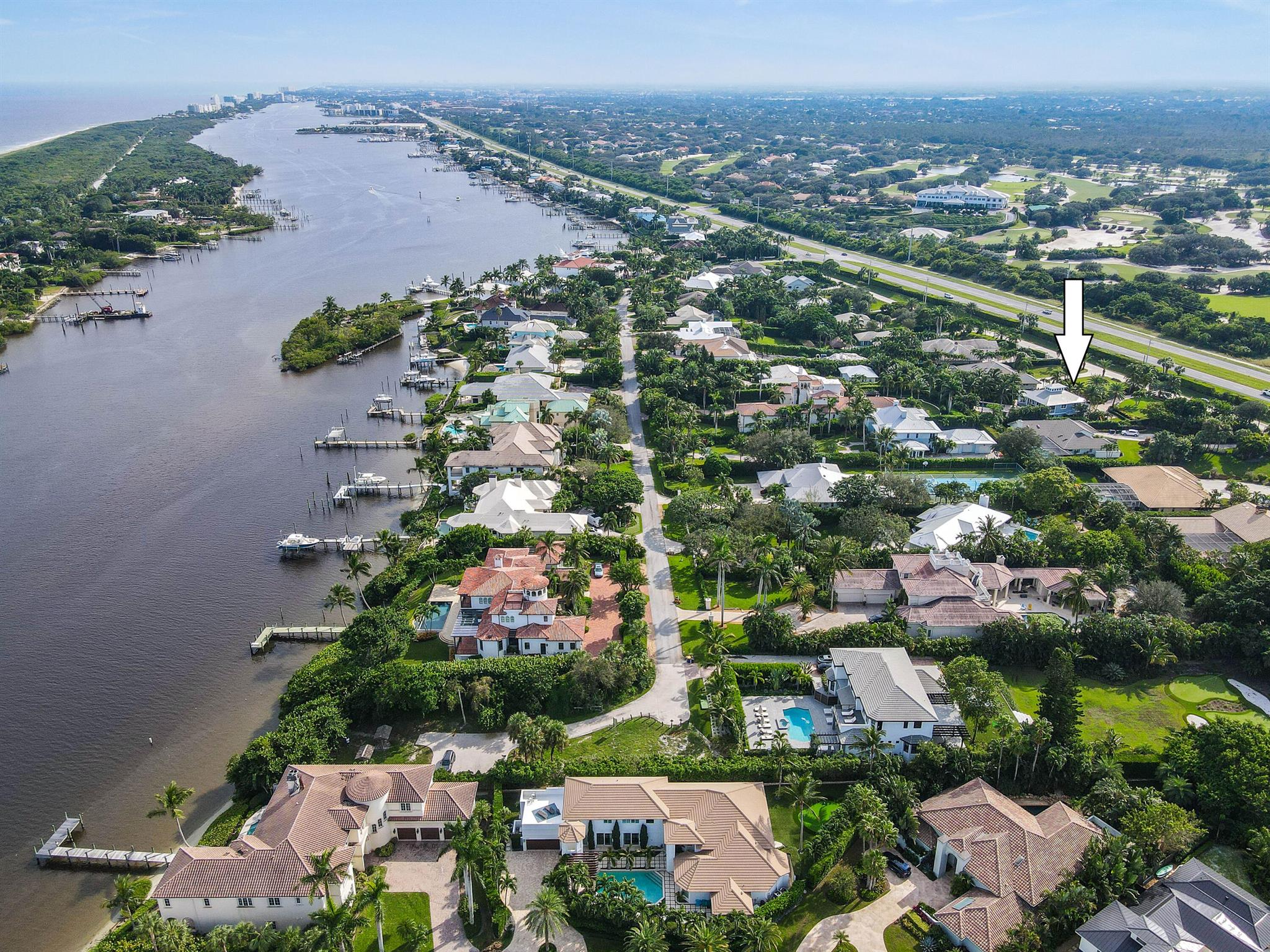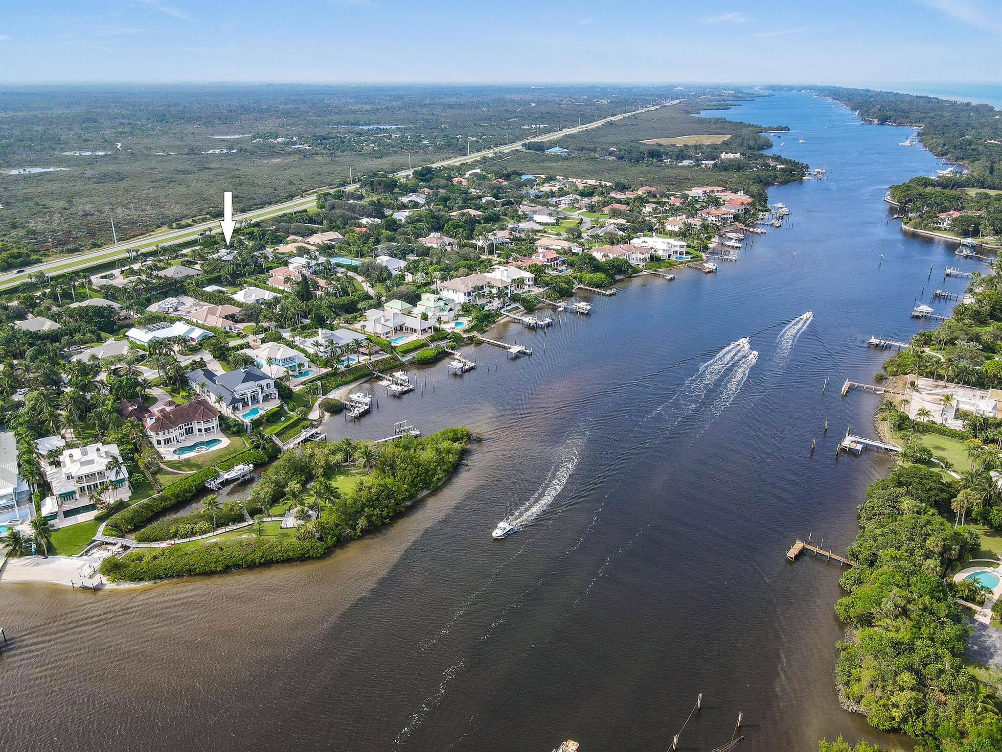 Discover the epitome of Florida tranquility in this breathtaking estate where luxury merges with innovative design. Nestled within the prestigious Indian Hills community in Tequesta, just east of US Highway 1 and a mile south of Jonathan Dickinson State Park, this Key West-style home radiates the feel of a tropical resort with sophisticated, modern updates. Situated on over half an acre of lush, private landscape, this property boasts a heated pool and spa, a spacious lanai, an expansive patio, large backyard, an outdoor shower, and a beautiful array of mature palm trees swaying in the ocean breeze.