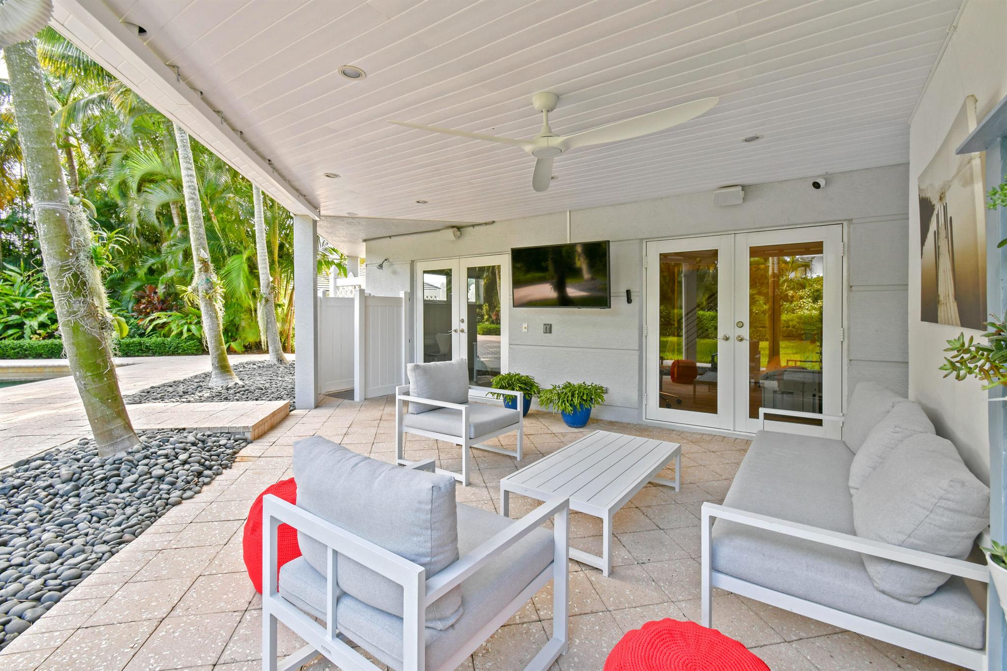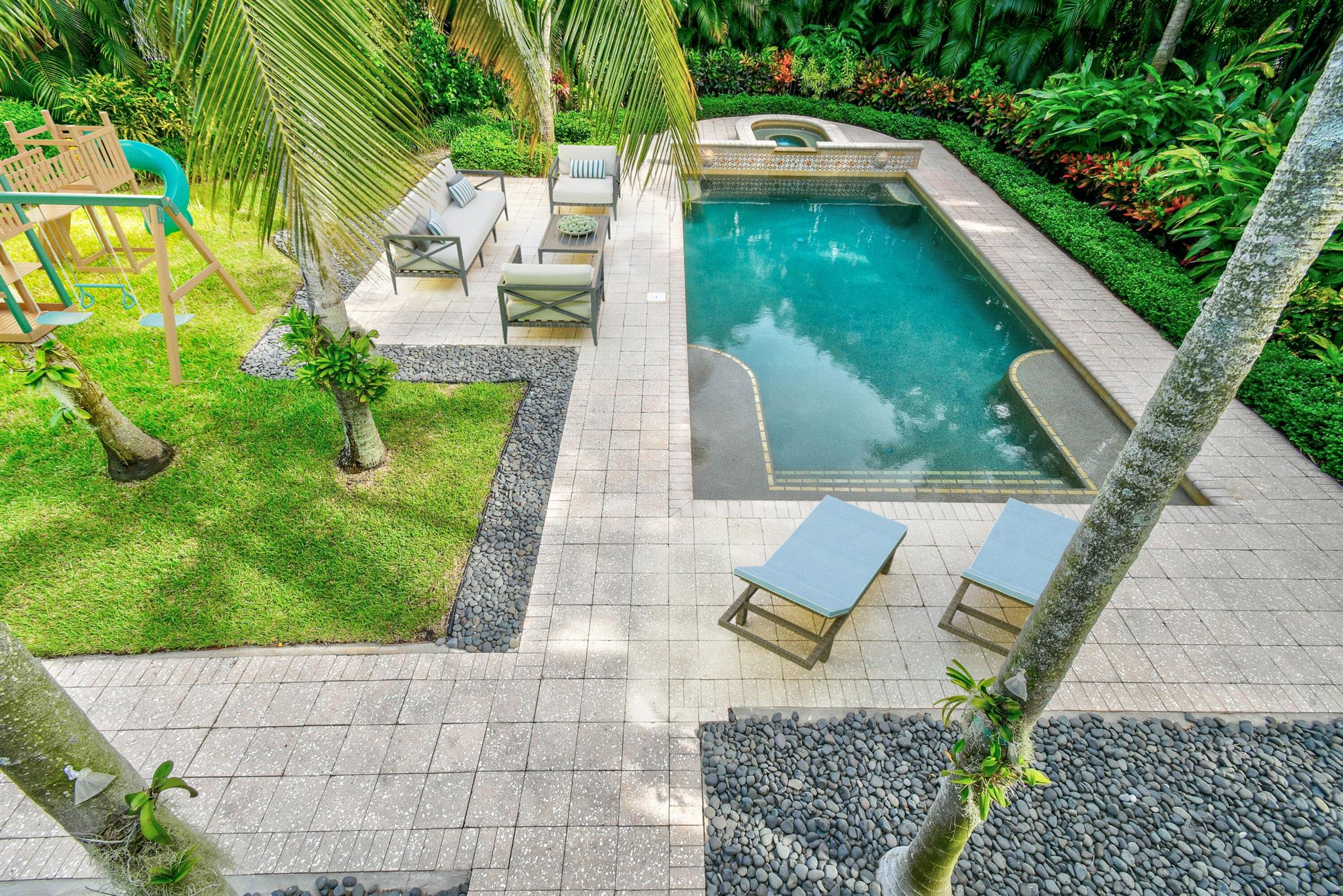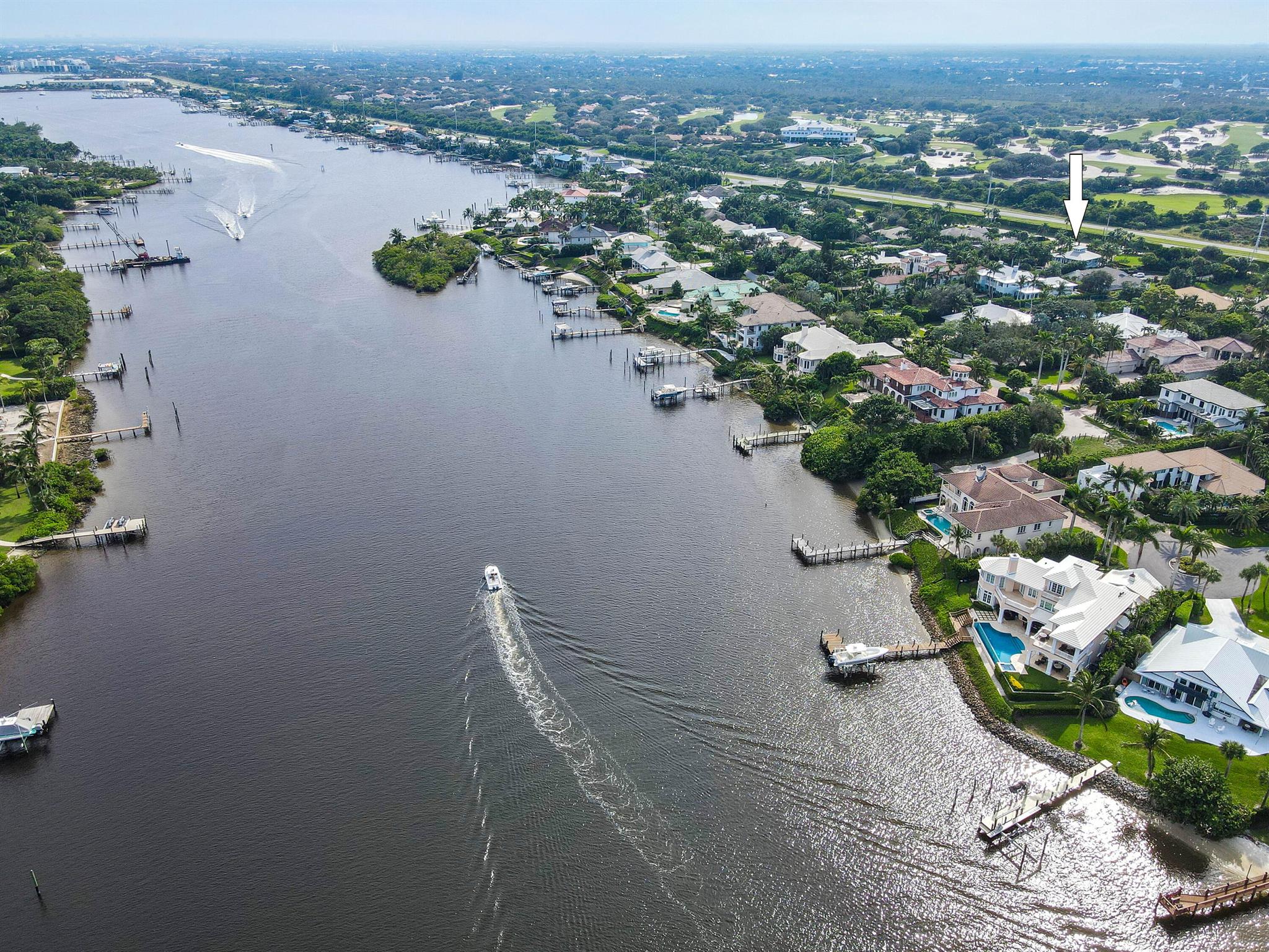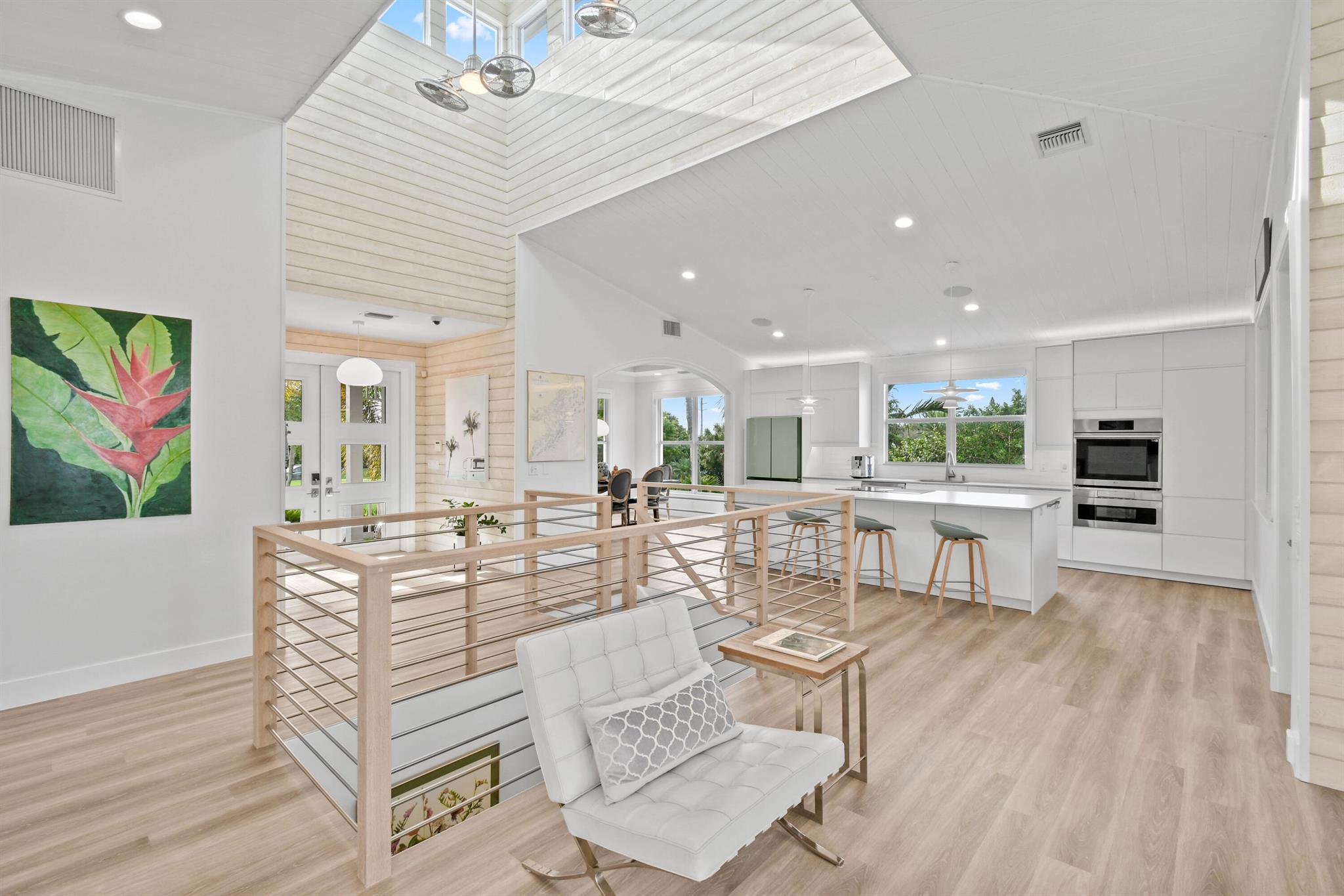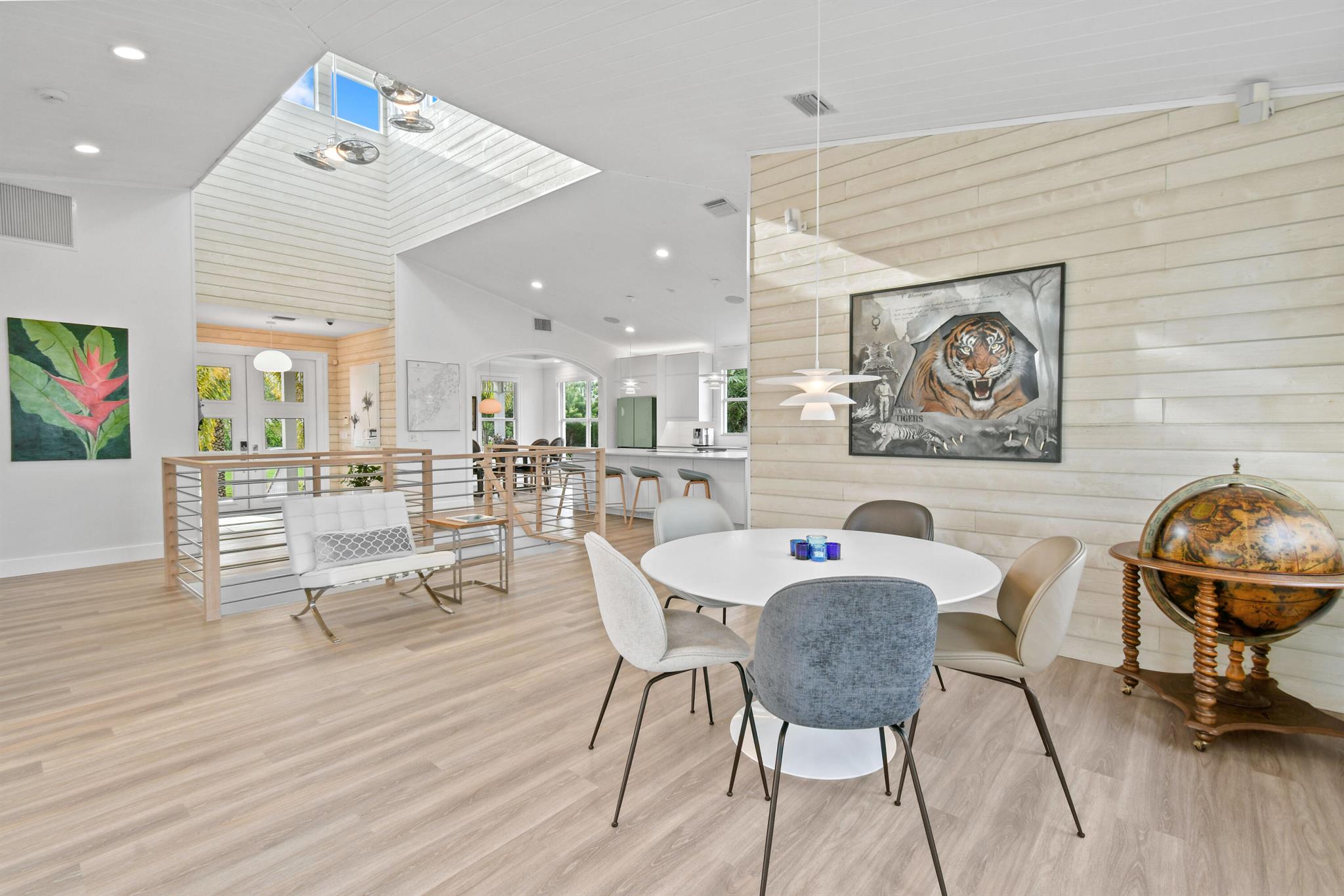 Discover the epitome of Florida tranquility in this breathtaking estate where luxury merges with innovative design. Nestled within the prestigious Indian Hills community in Tequesta, just east of US Highway 1 and a mile south of Jonathan Dickinson State Park, this Key West-style home radiates the feel of a tropical resort with sophisticated, modern updates. Situated on over half an acre of lush, private landscape, this property boasts a heated pool and spa, a spacious lanai, an expansive patio, large backyard, an outdoor shower, and a beautiful array of mature palm trees swaying in the ocean breeze.