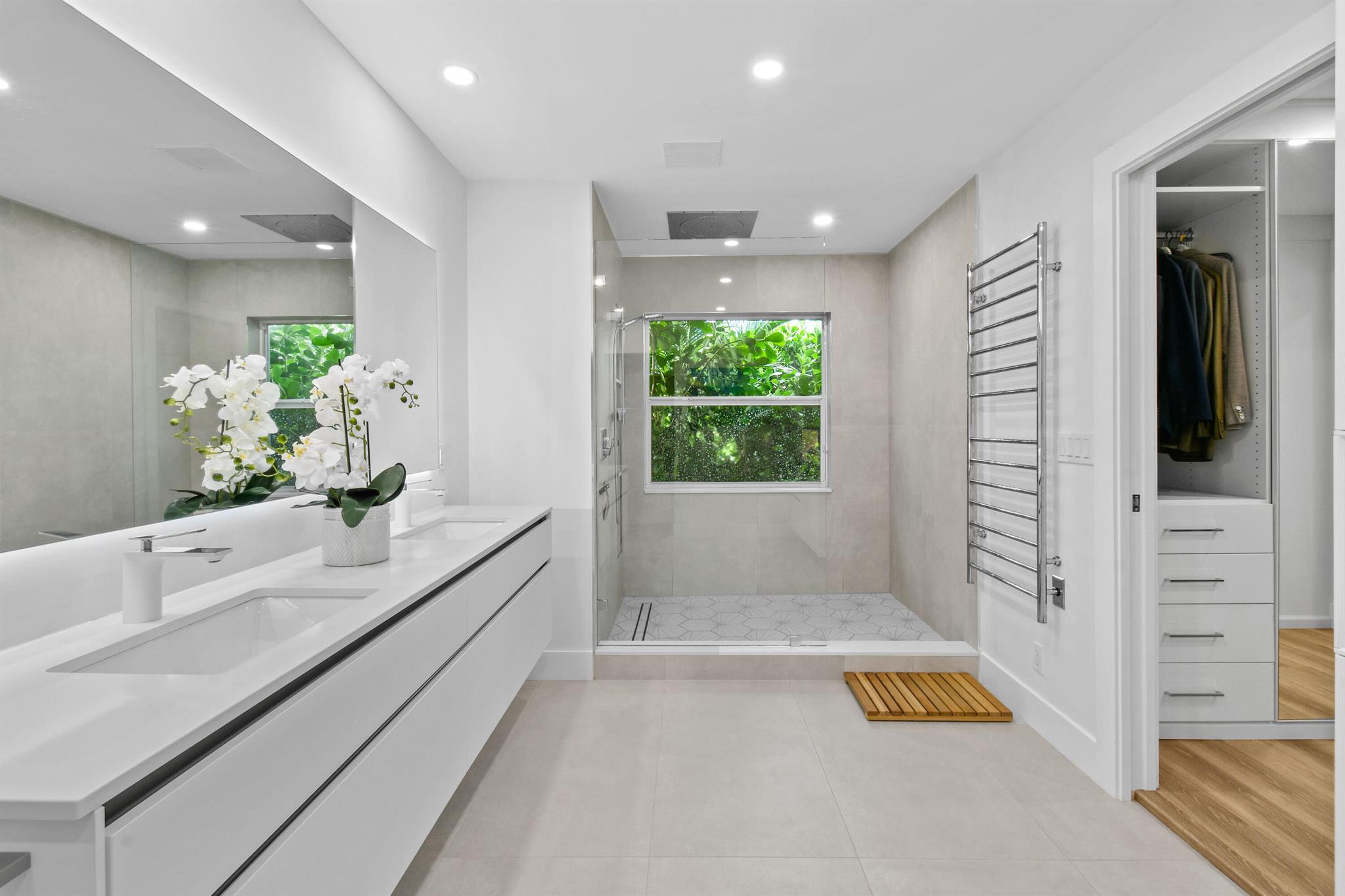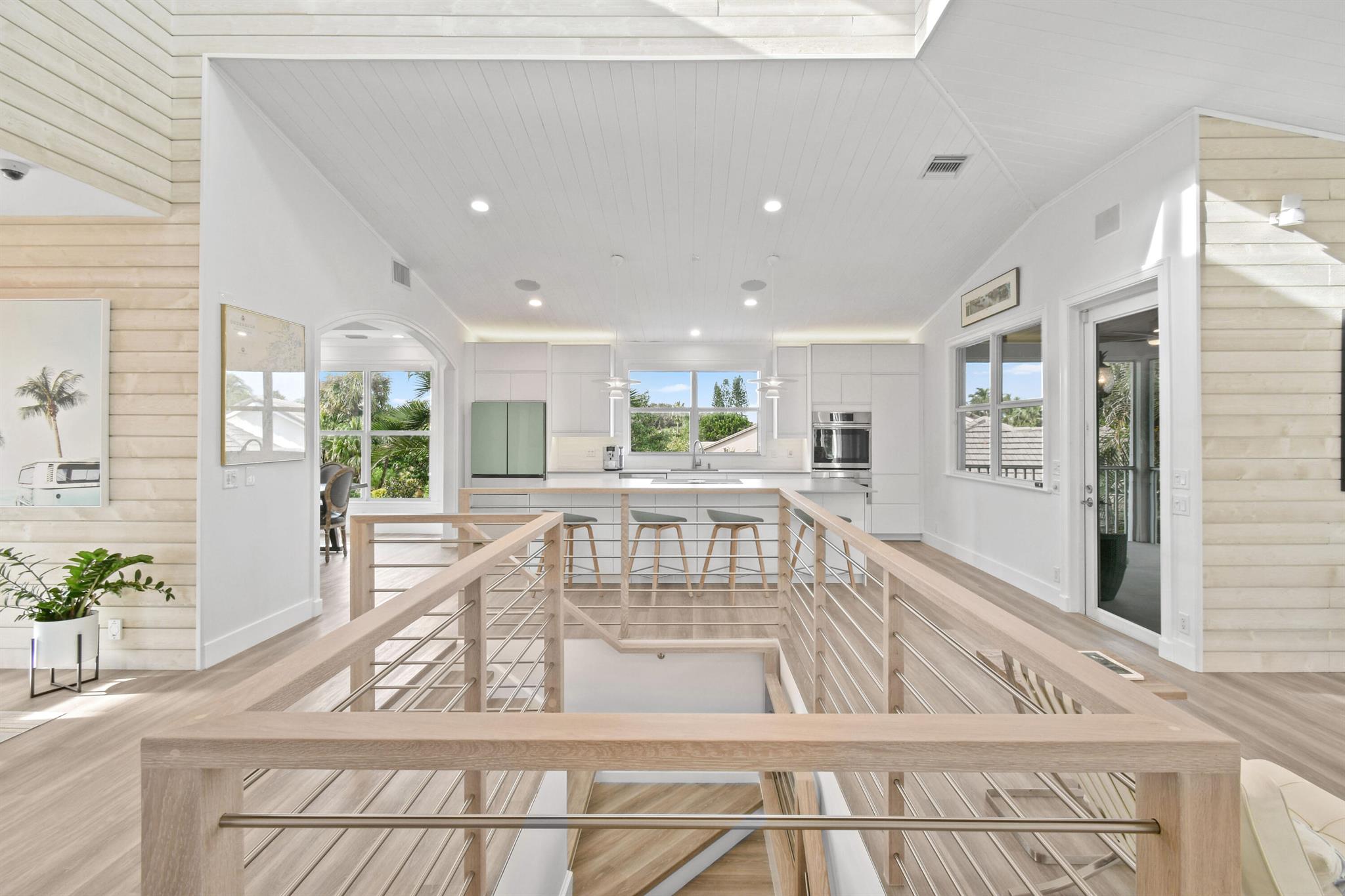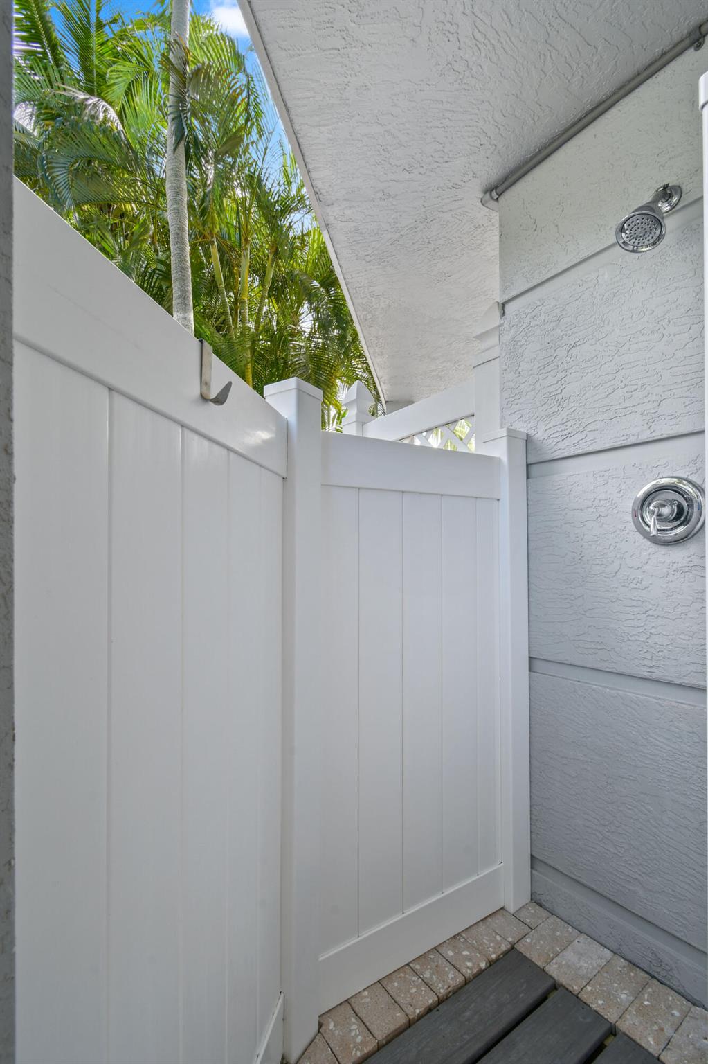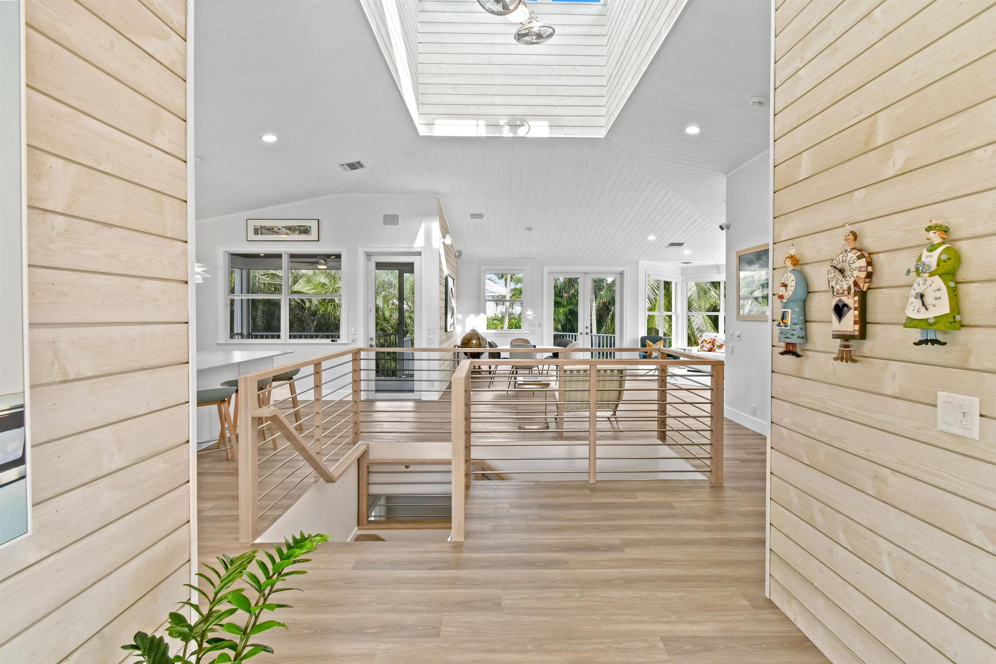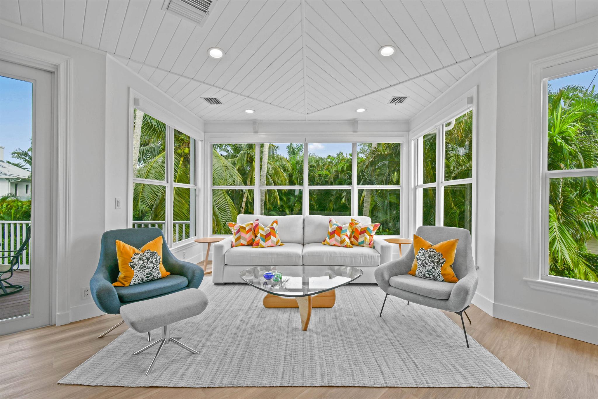Discover the epitome of Florida tranquility in this breathtaking estate where luxury merges with innovative design. Nestled within the prestigious Indian Hills community in Tequesta, just east of US Highway 1 and a mile south of Jonathan Dickinson State Park, this Key West-style home radiates the feel of a tropical resort with sophisticated, modern updates. Situated on over half an acre of lush, private landscape, this property boasts a heated pool and spa, a spacious lanai, an expansive patio, large backyard, an outdoor shower, and a beautiful array of mature palm trees swaying in the ocean breeze.