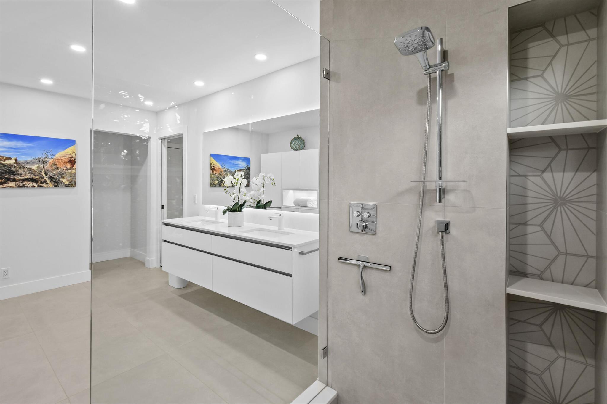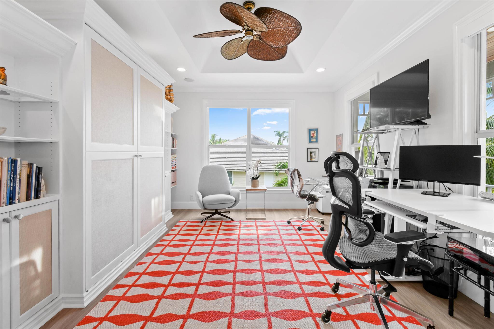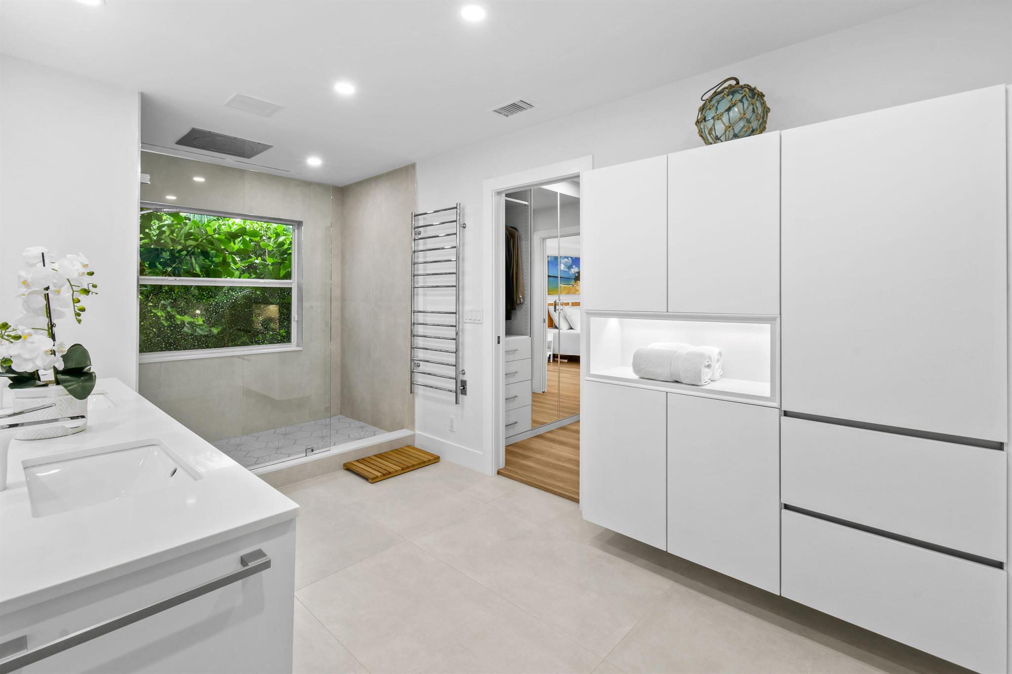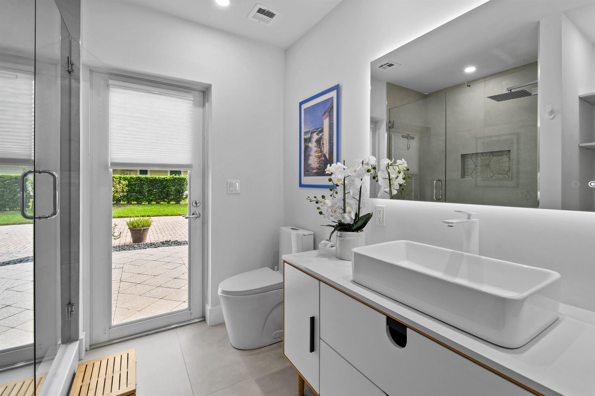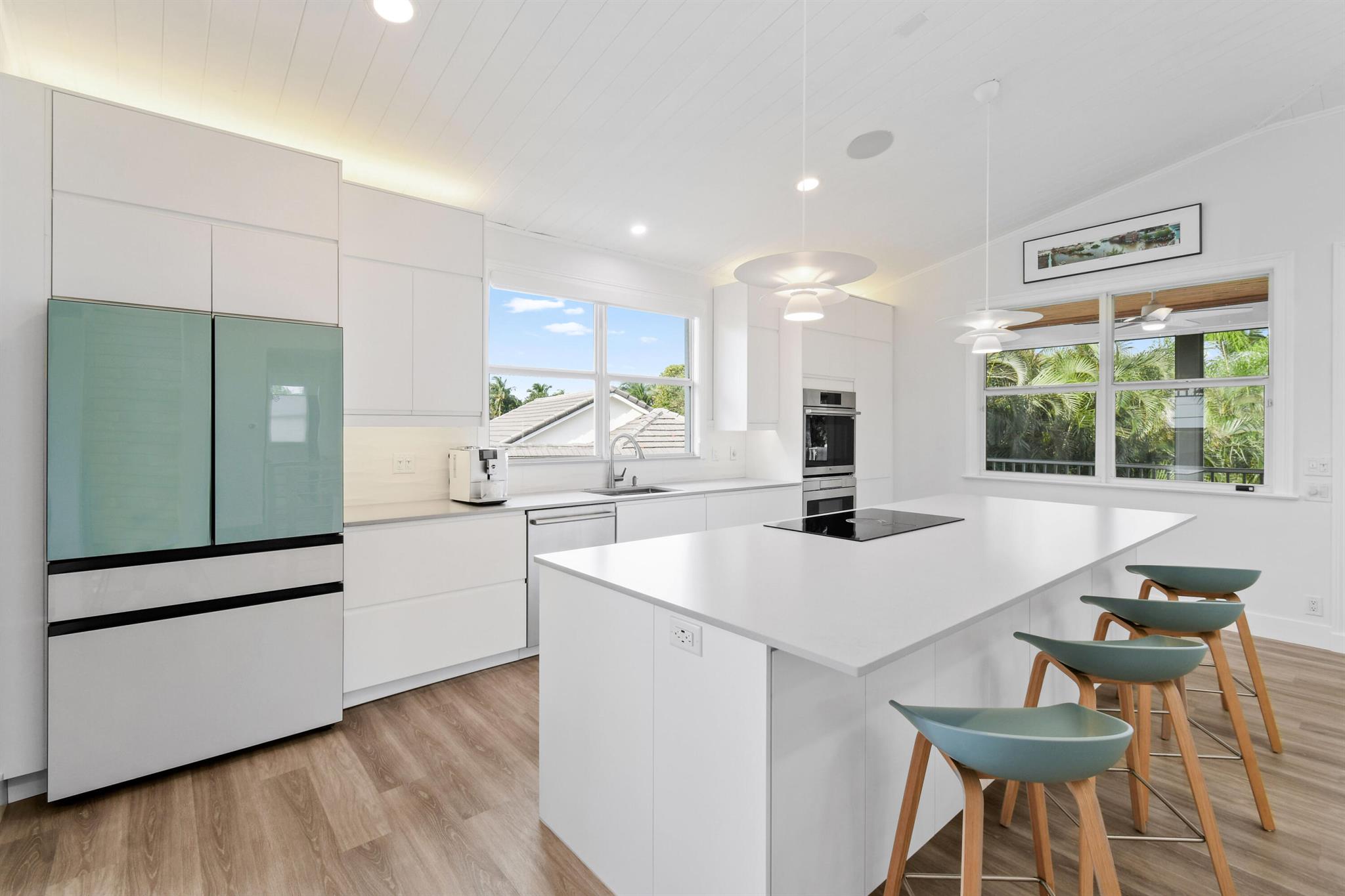 Discover the epitome of Florida tranquility in this breathtaking estate where luxury merges with innovative design. Nestled within the prestigious Indian Hills community in Tequesta, just east of US Highway 1 and a mile south of Jonathan Dickinson State Park, this Key West-style home radiates the feel of a tropical resort with sophisticated, modern updates. Situated on over half an acre of lush, private landscape, this property boasts a heated pool and spa, a spacious lanai, an expansive patio, large backyard, an outdoor shower, and a beautiful array of mature palm trees swaying in the ocean breeze.