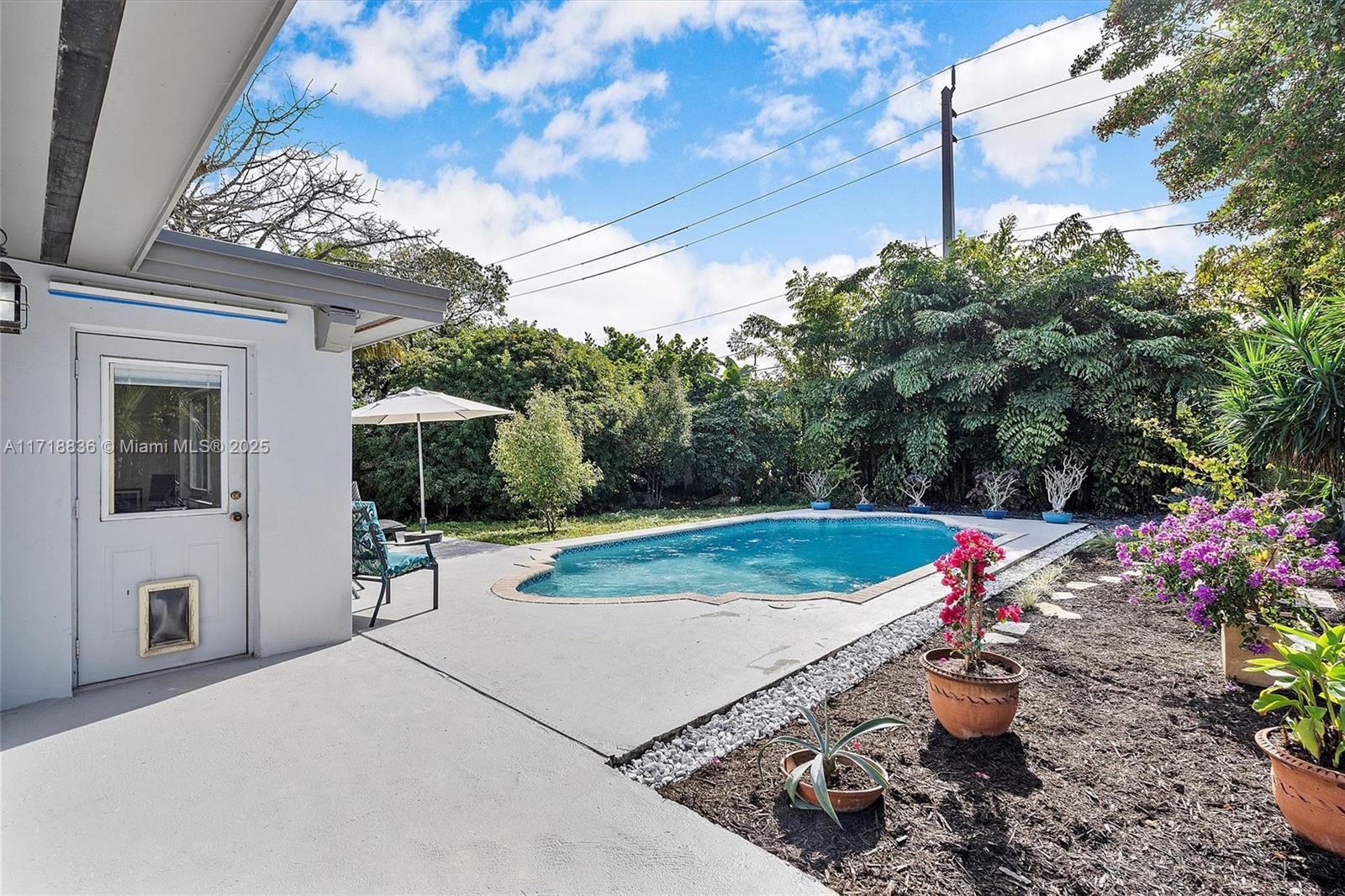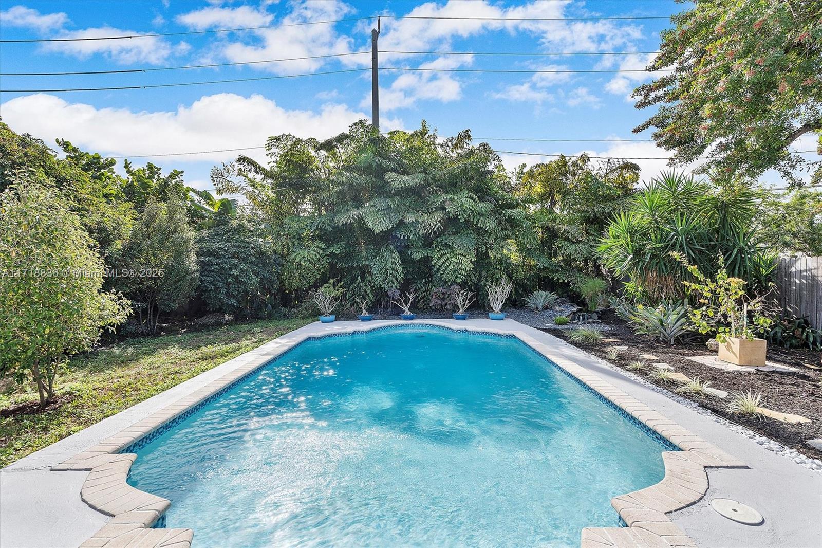 Renovated 3-bed, 2-bath home with a pool on an oversized lot in Croissant Park—no HOA! The renovated open kitchen boasts stainless steel appliances, while tile floors adorn the main areas & wood-look vinyl enhances the bedrooms, & both bathrooms are updated. A "bonus" room off the kitchen is currently used as an office, & faces a charming outdoor water fountain. The enclosed backyard features a pool, lush landscaping, & a privacy fence—perfect for relaxation, entertaining, & pets. Enjoy the convenience of a full-size laundry room with extra storage & a circular driveway with ample parking. Recent upgrades include impact windows & front door, electrical panel, water heater, A/C, & pool pump. Ideally located minutes from downtown Ft. Lauderdale, parks, shopping, the airport, I-95, & I-595.