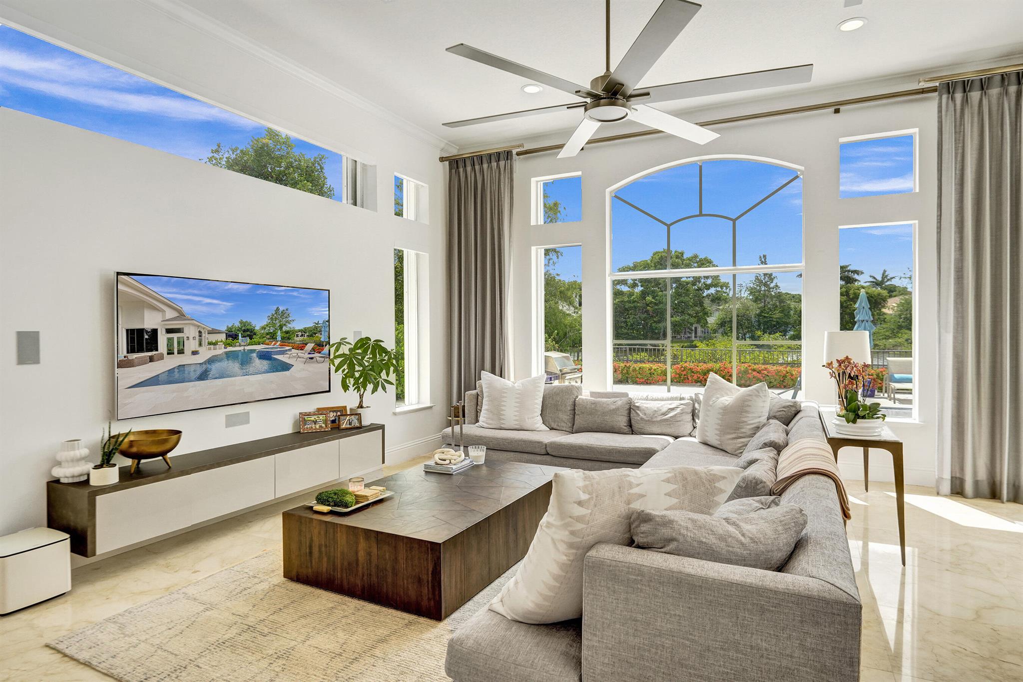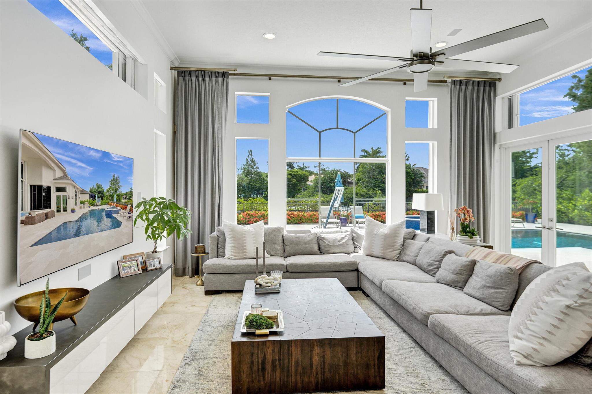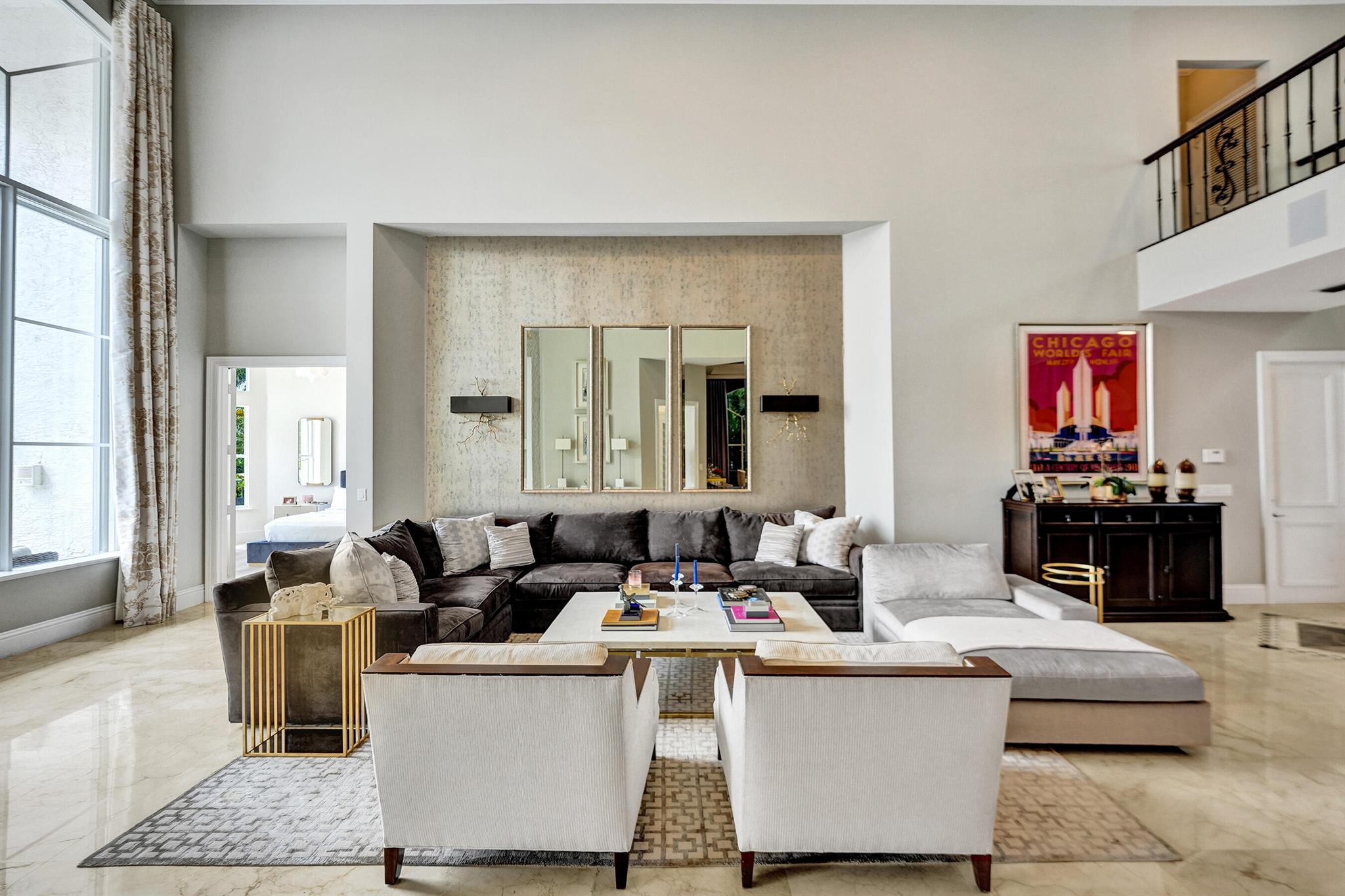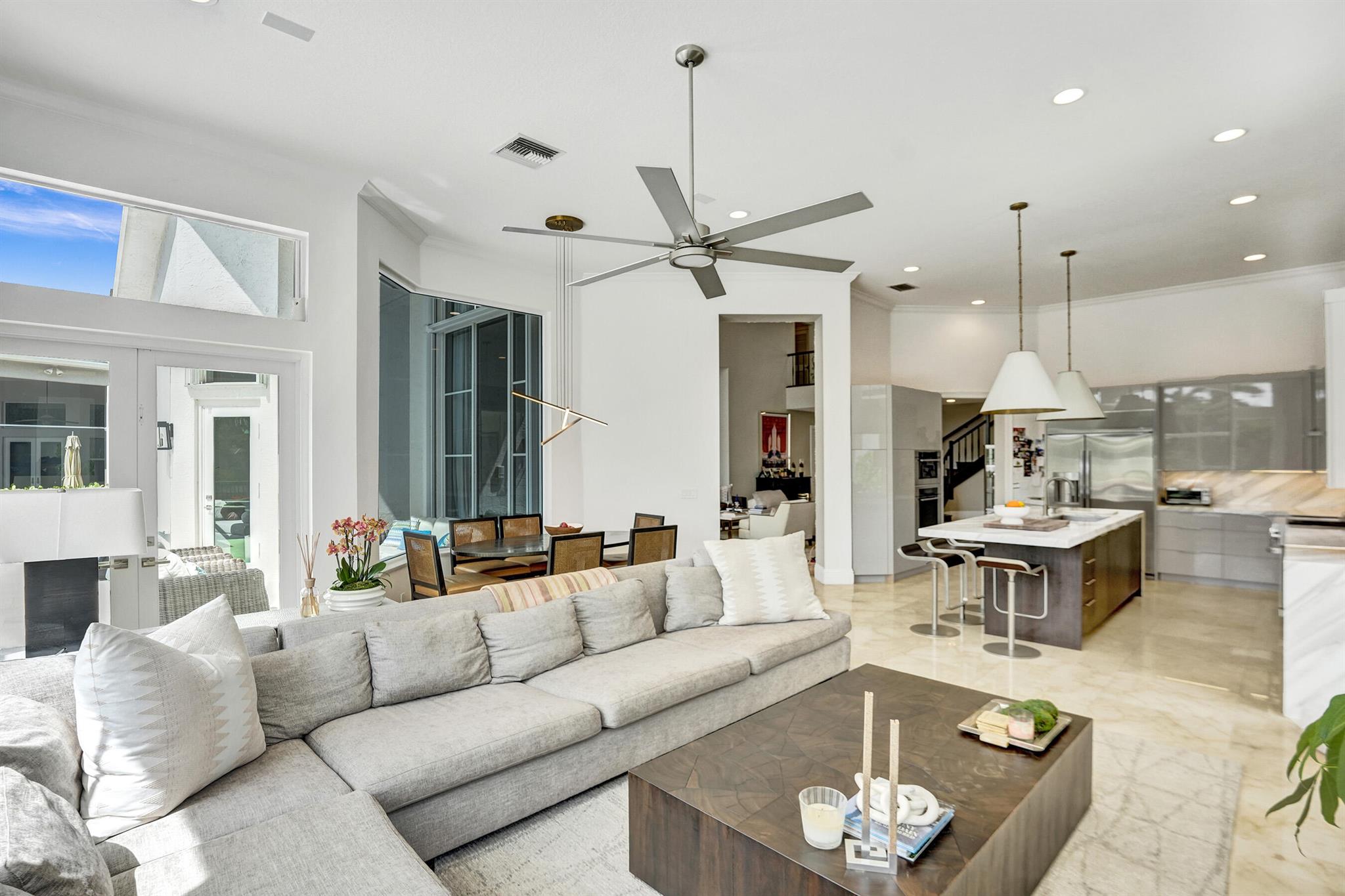Updated lakefront beauty! This 5 bedroom 4 bath home features a grand two story entry overlooking a beautiful pool, patio & private lakefront setting. New expanded Custom Chef's Kitchen w/commercial grade Wolf appliances features a stunning oversized island w/marble waterfall edge. Lower level Primary & Guest Suites w/walk in closets. Marble & wood floors throughout & custom designer Stark carpeting . Upstairs features 3 bedrooms and a loft. Popular split floorplan. Backyard features a newer salt purified pool w/Jandy system, oversized marble sundeck w/wide lake views. Home features natural gas, impact glass, new LED lighting and Bose Sound System, New roof & 3 car garage. Many other designer touches too numerous to mention. Clubhouse,, Tennis & Fitness plus ''A'' rated schools. Must see