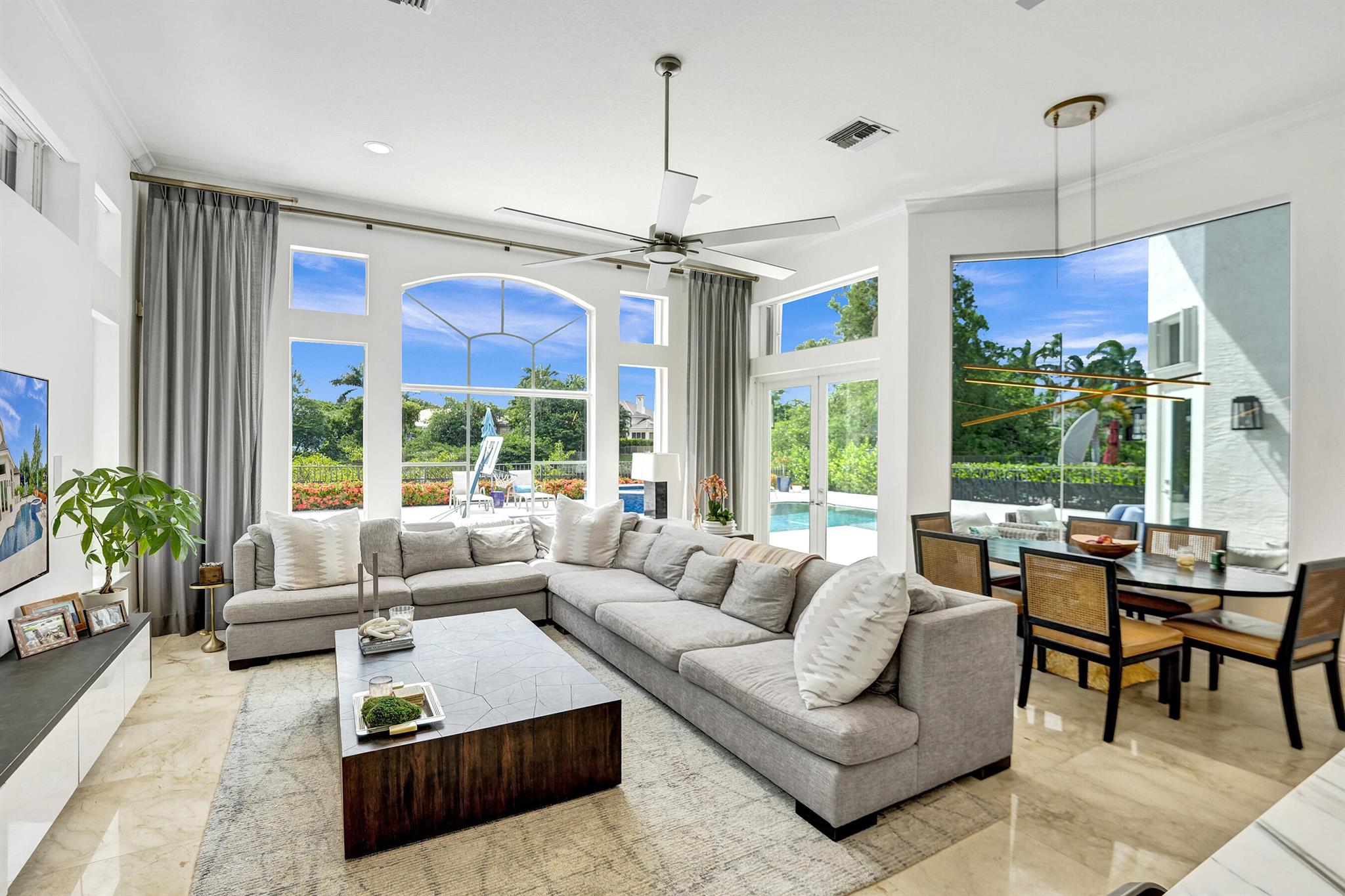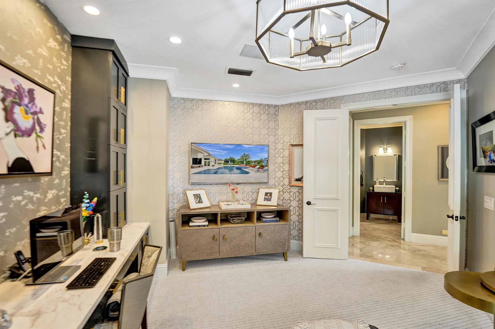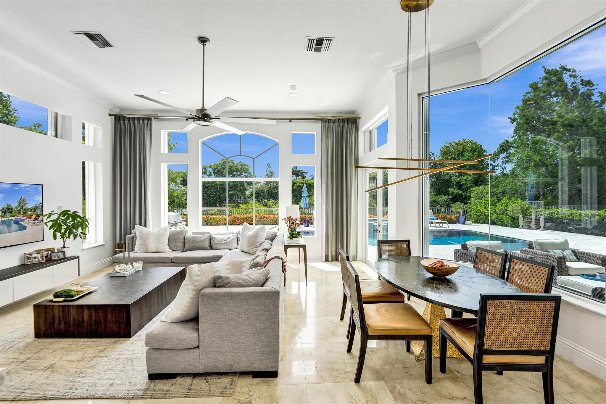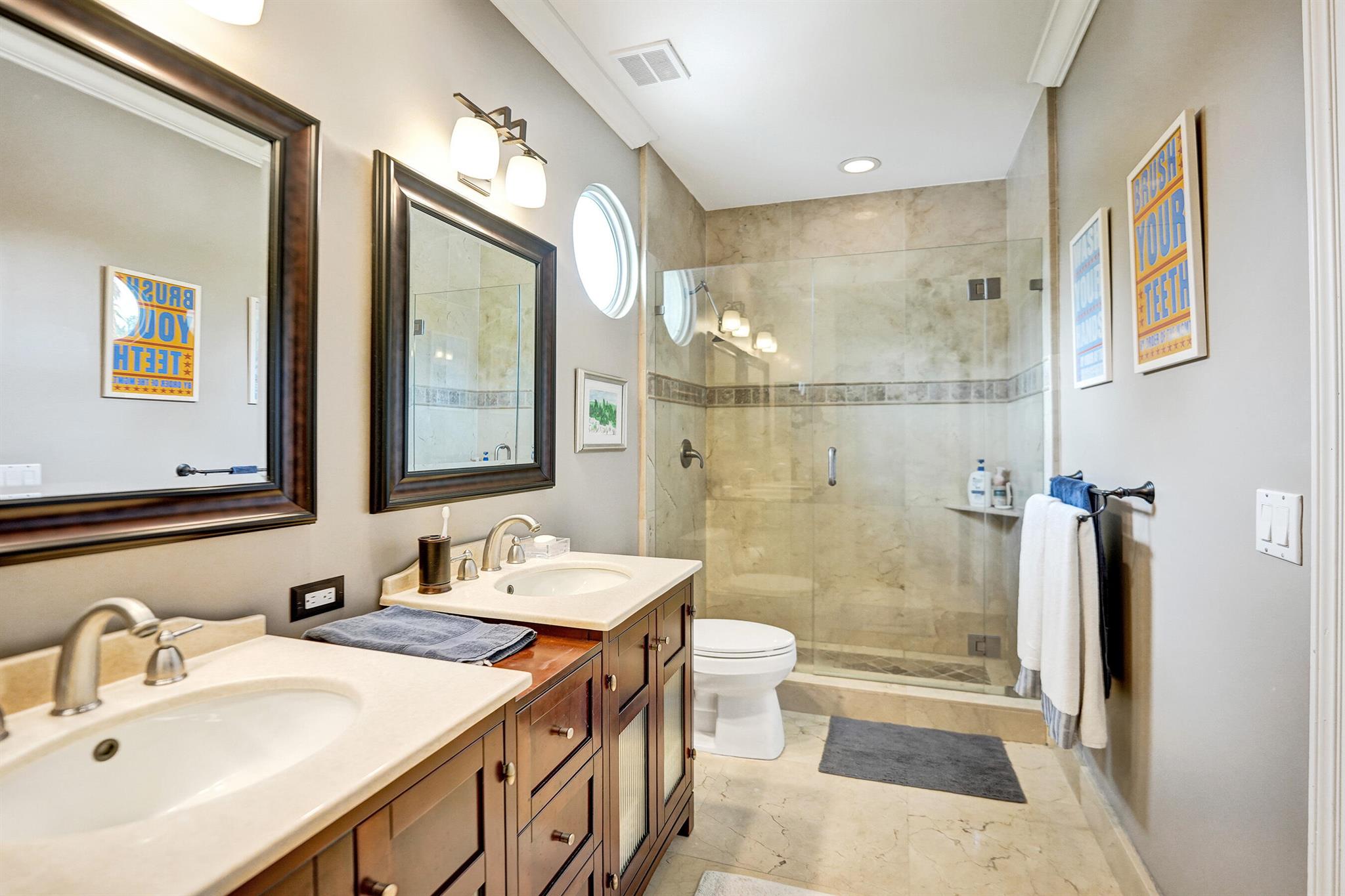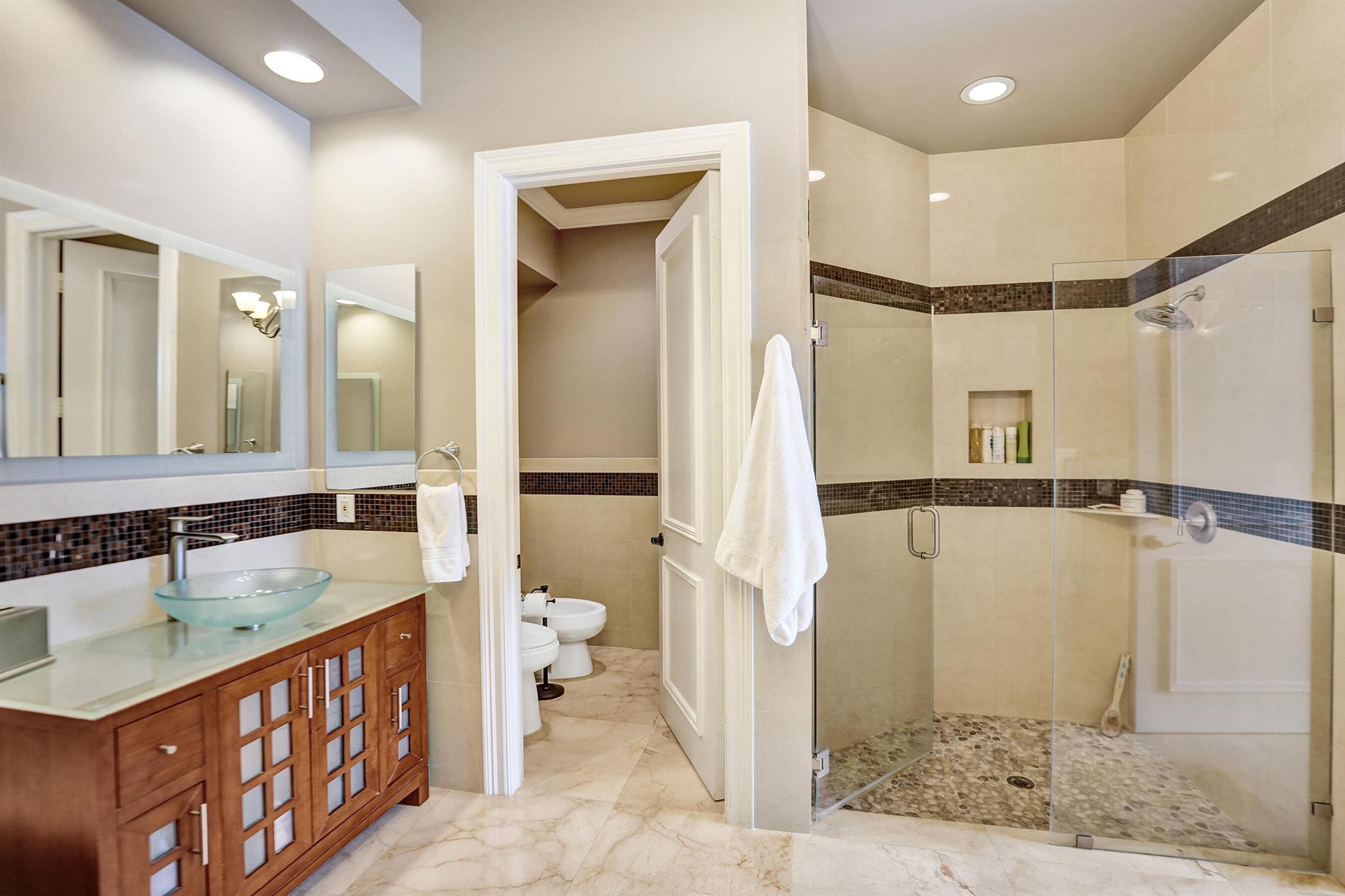 Updated lakefront beauty! This 5 bedroom 4 bath home features a grand two story entry overlooking a beautiful pool, patio & private lakefront setting. New expanded Custom Chef's Kitchen w/commercial grade Wolf appliances features a stunning oversized island w/marble waterfall edge. Lower level Primary & Guest Suites w/walk in closets. Marble & wood floors throughout & custom designer Stark carpeting . Upstairs features 3 bedrooms and a loft. Popular split floorplan. Backyard features a newer salt purified pool w/Jandy system, oversized marble sundeck w/wide lake views. Home features natural gas, impact glass, new LED lighting and Bose Sound System, New roof & 3 car garage. Many other designer touches too numerous to mention. Clubhouse,, Tennis & Fitness plus ''A'' rated schools. Must see