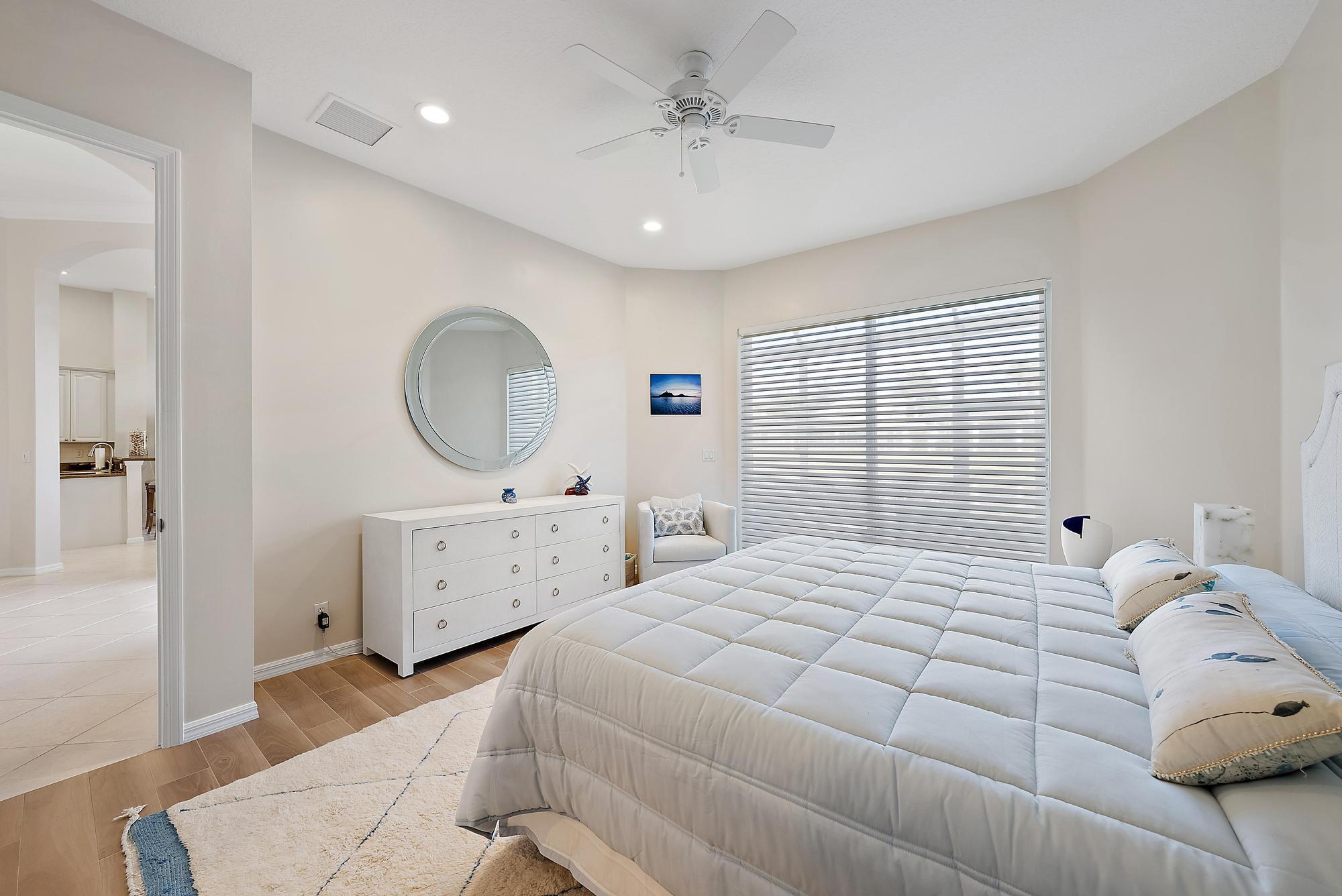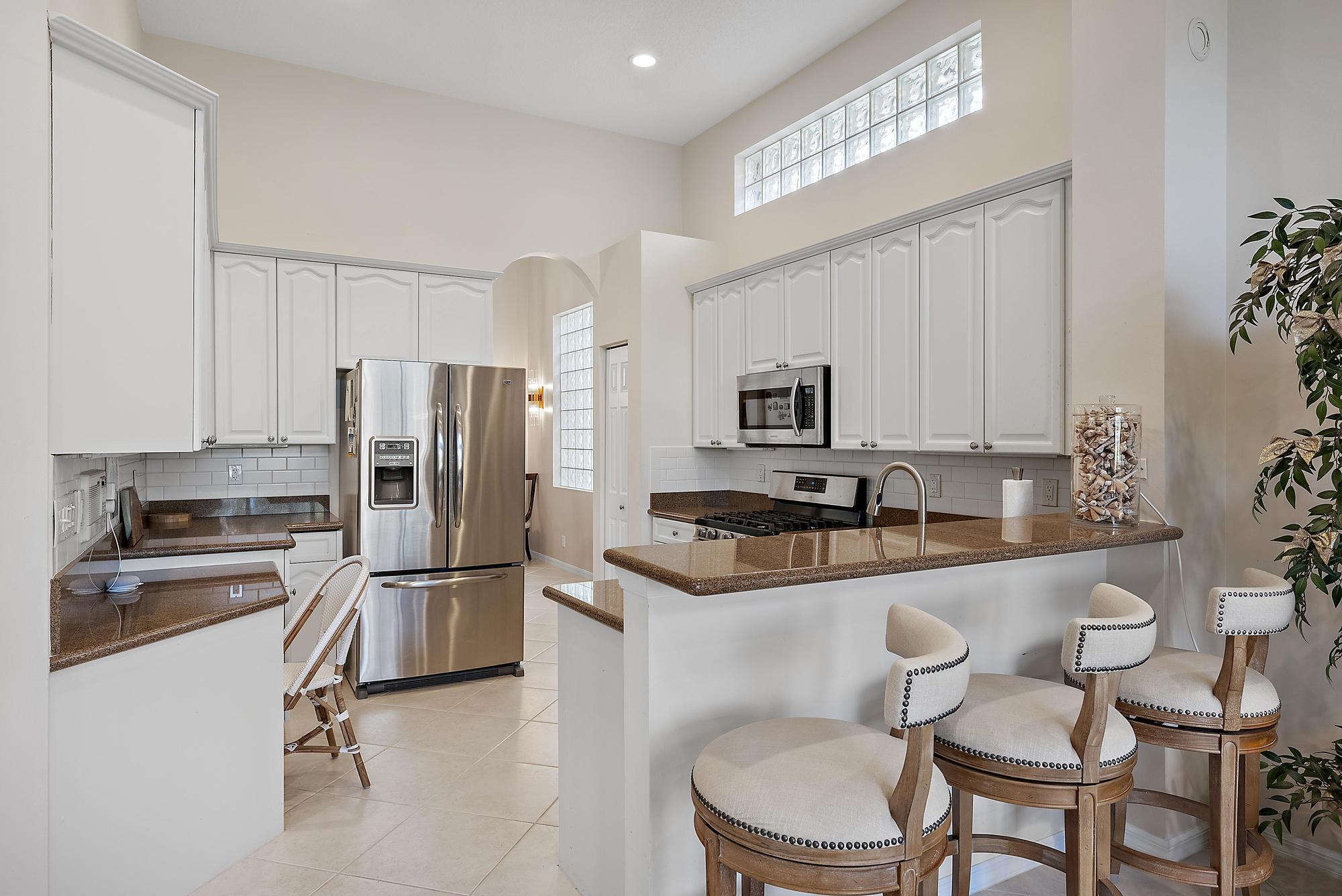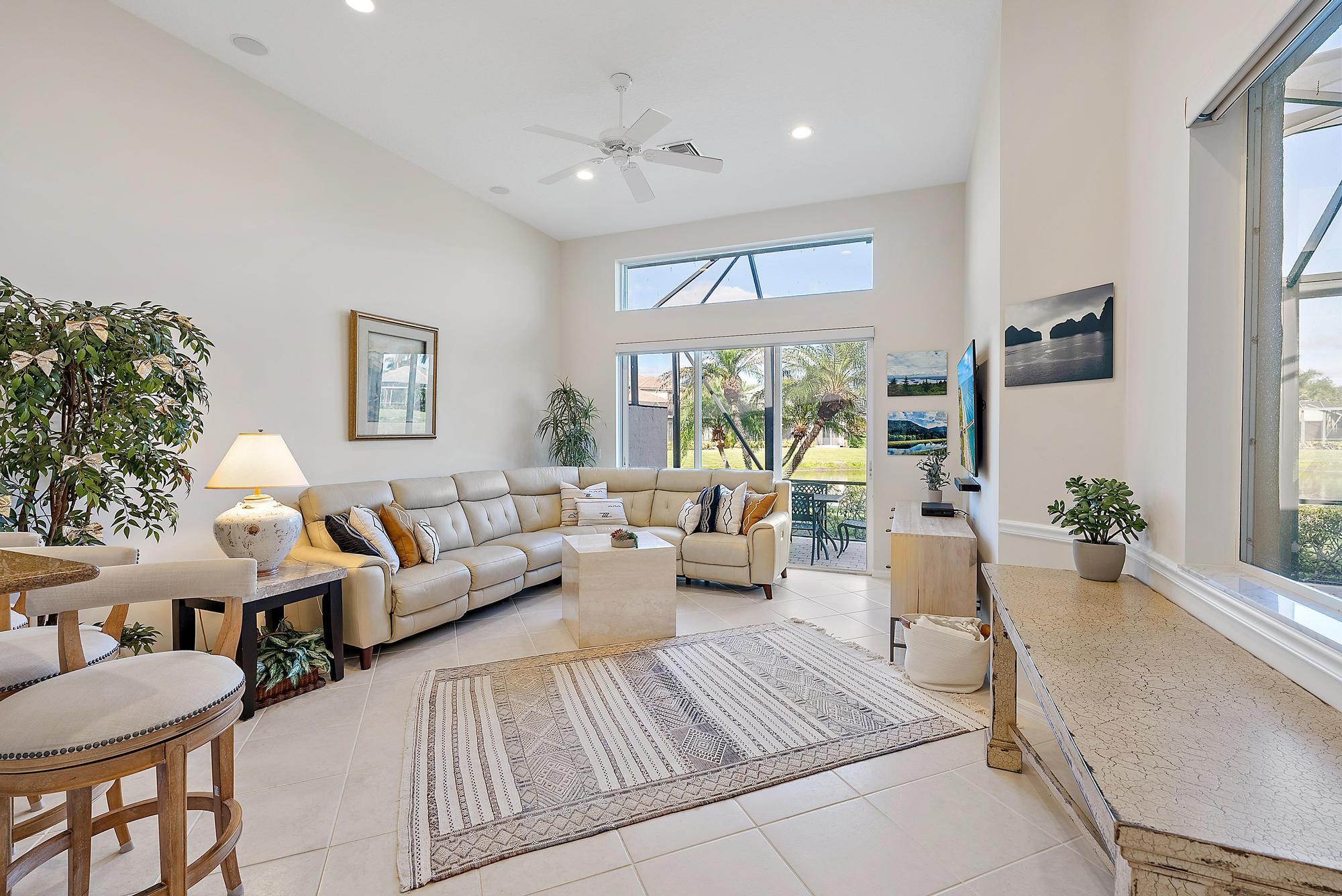 BRAND NEW 2025 ROOF! With 50 FEET OF WATER FRONTAGE, this 3BR/2.5BA upgraded home expands beautifully to the outdoors. Enjoy serene water views from this 2200 SF single-family home. The popular Hamilton floor plan offers soaring ceilings, and generous space. Accordian shutters and Impact Glass double front doors provide ample hurricane protection. Light, bright, and neutral, this immaculate home boasts a redone primary bath, upgraded kitchen with stainless appliances, granite counters, and elegant subway tile backsplash. The large screened enclosure provides fabulous outdoor living space, overlooking the premium lake view. Many upgrades throughout the property: