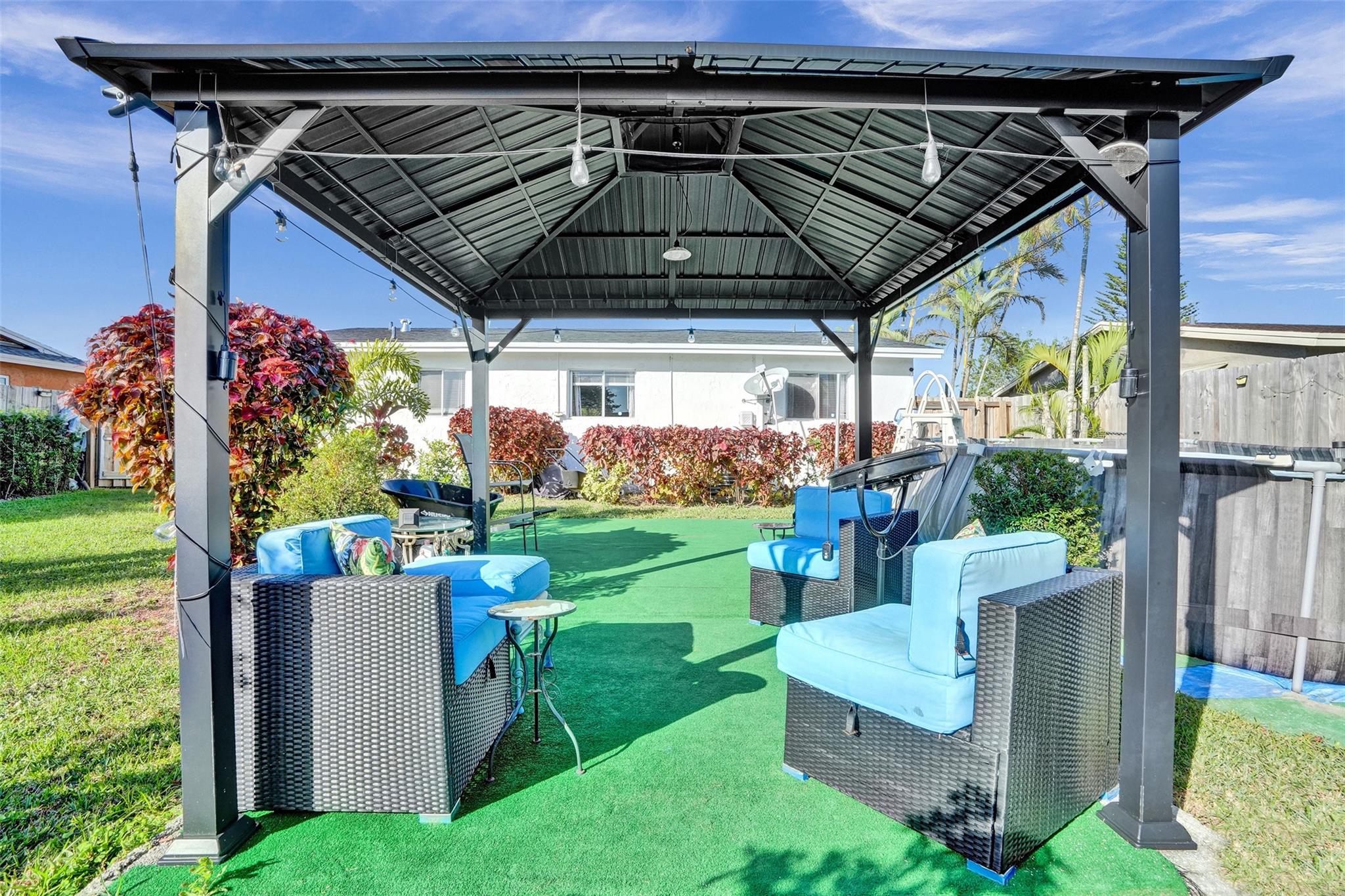 Quiet and Beautiful Maintained Single Family Home waiting for your Family. This home boasts a New Roof Installed May 2024, Above Ground Pool, Relaxing Gazebo and Backyard Ambiance Great for Entertaining, Privacy Fence, Security Camera System around Perimeter of Home. Also, Inside this Home is a Split Bedroom Floor Plan, Smoke Detectors throuhoout, Stainless Steel Appliances, A/C and Washer/Dryer approximately 1 1/2 years old. Great Curb Appeal, A MUST SEE!!
