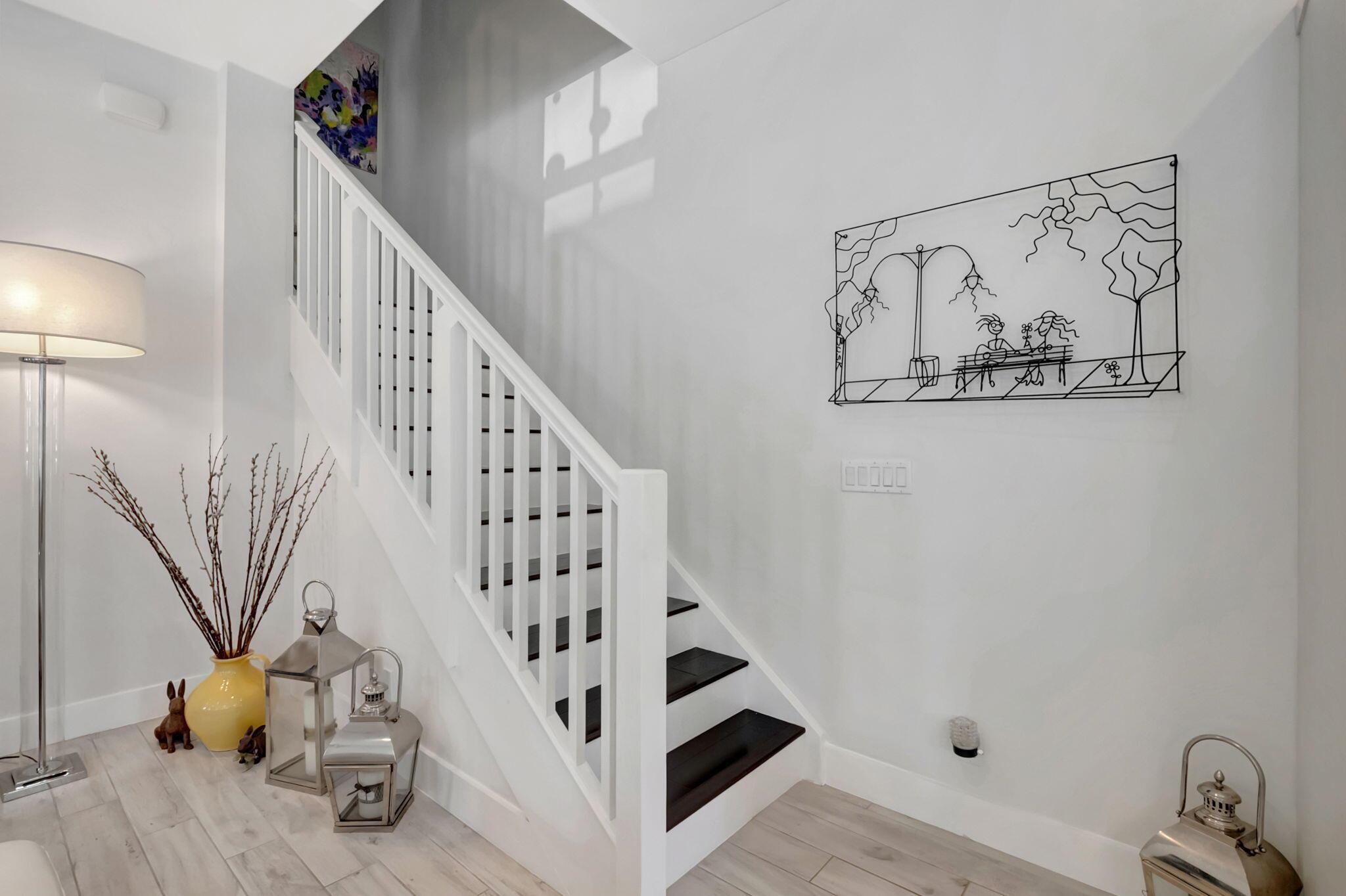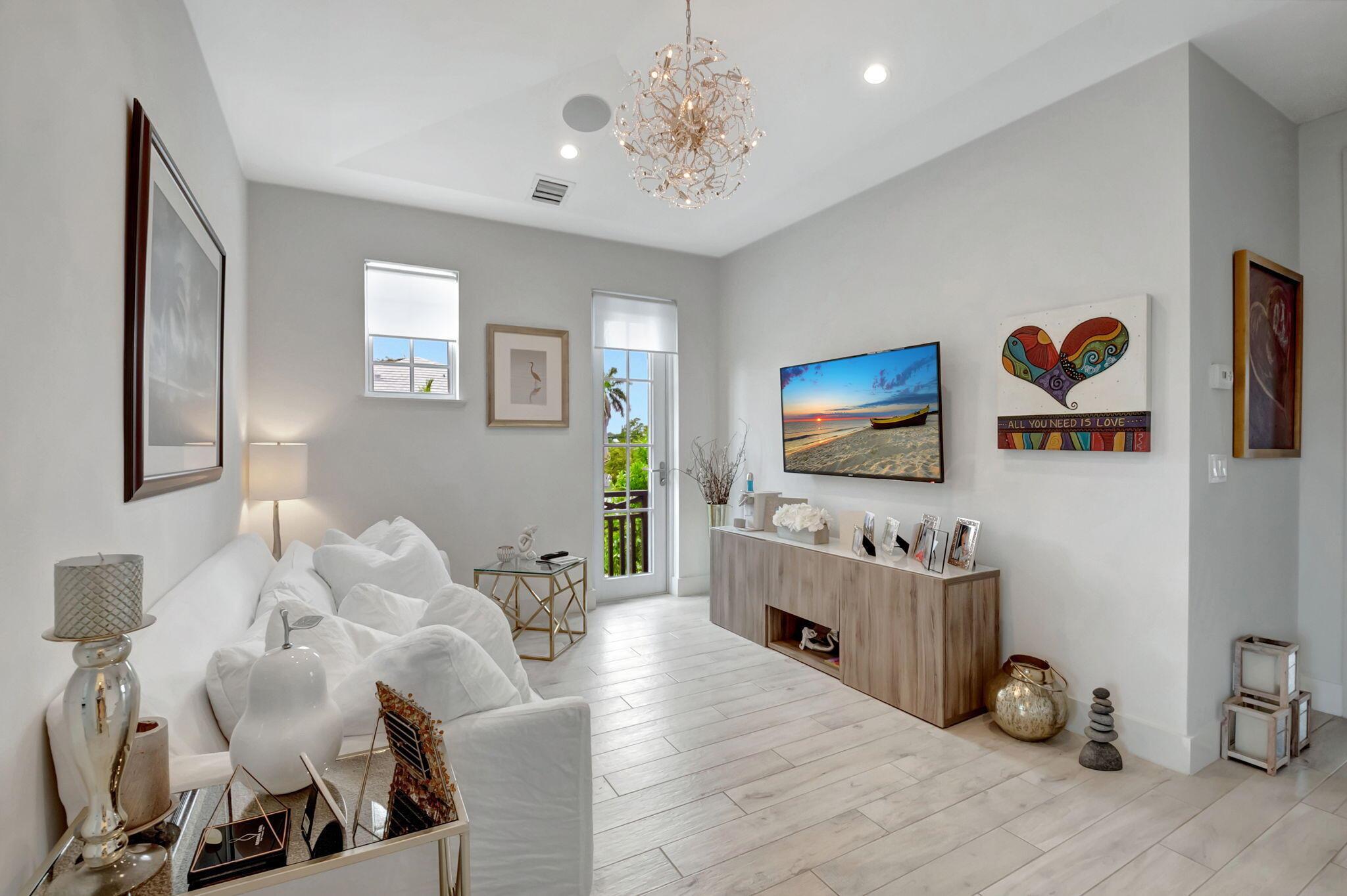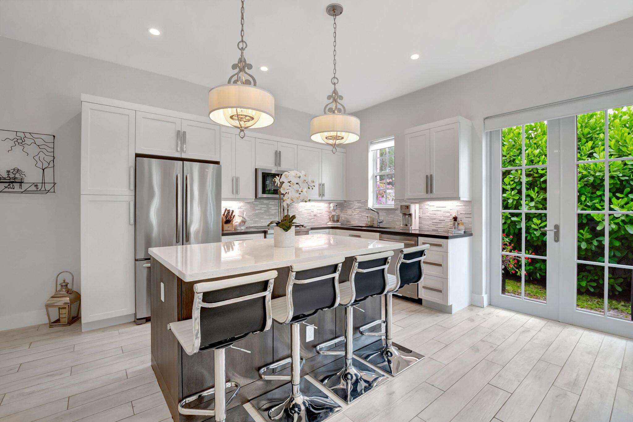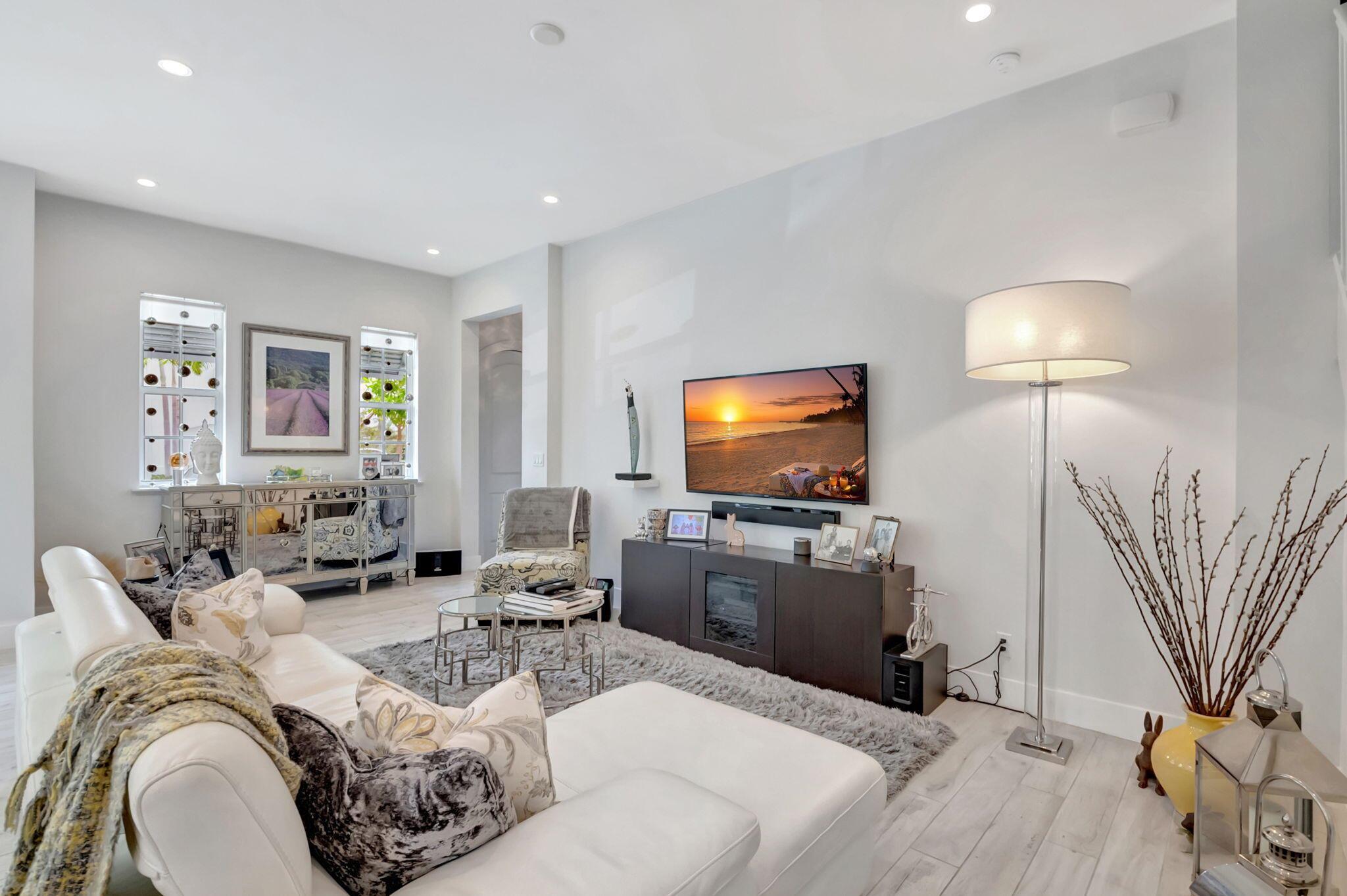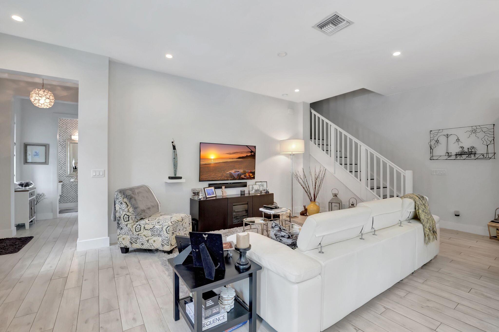 Free umbrella service at the beach for a year included if you purchase this townhome in St. George, a luxury 38 unit townhome community, located in the heart of Delray Beach. This corner-unit townhome has more windows than an interior unit, making it feel open and bright. The additional loft upstairs is perfect for a home office or relaxation area. The owner designed this townhome with luxury and comfort in mind, including a separate soaking tub in the master suite, custom designed closets, upgraded flooring throughout the entire home, upgraded lighting, and Bose speakers in every room. The kitchen features high end cabinetry, quartz countertops and JennAir appliances. Enjoy a cup of coffee on your private patio, explore downtown a mile away, or soak up the sun at the nearby beaches!