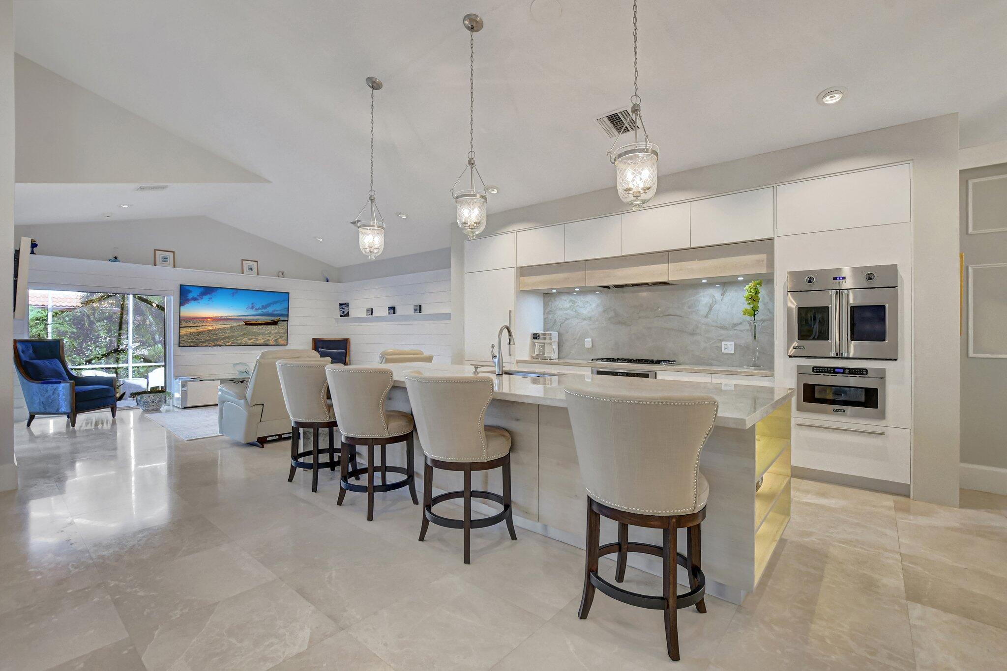 This estate home is completely updated and move in ready. Located in the desirable gated community of Encantada in Boca Pointe.Country club living without mandatory membership. You can choose a golf membership, social membership, or none at all. Oversized corner waterfront lot. Recent upgrades include, new kitchen granite with waterfall Island,Viking appliances, including a propane cooktop, and sub zero refrigerator