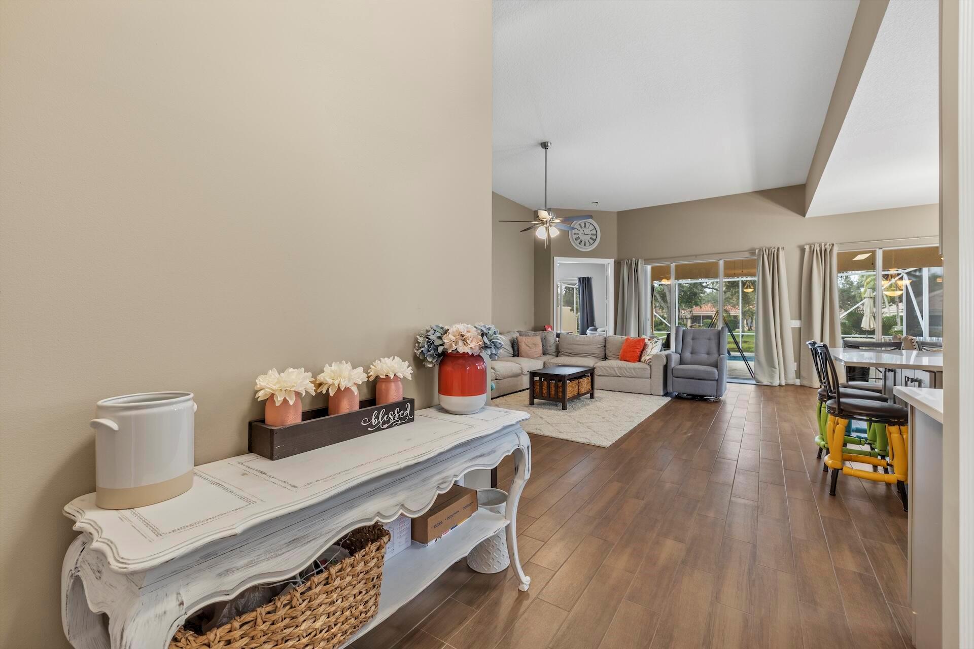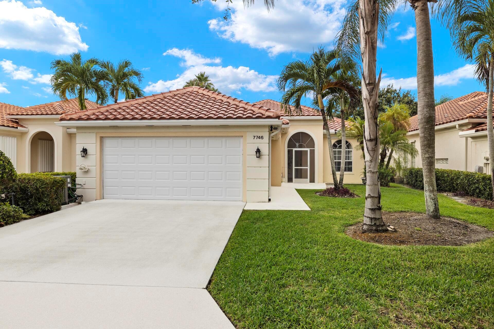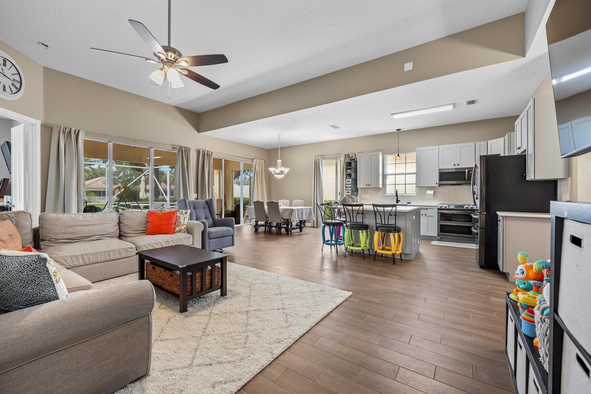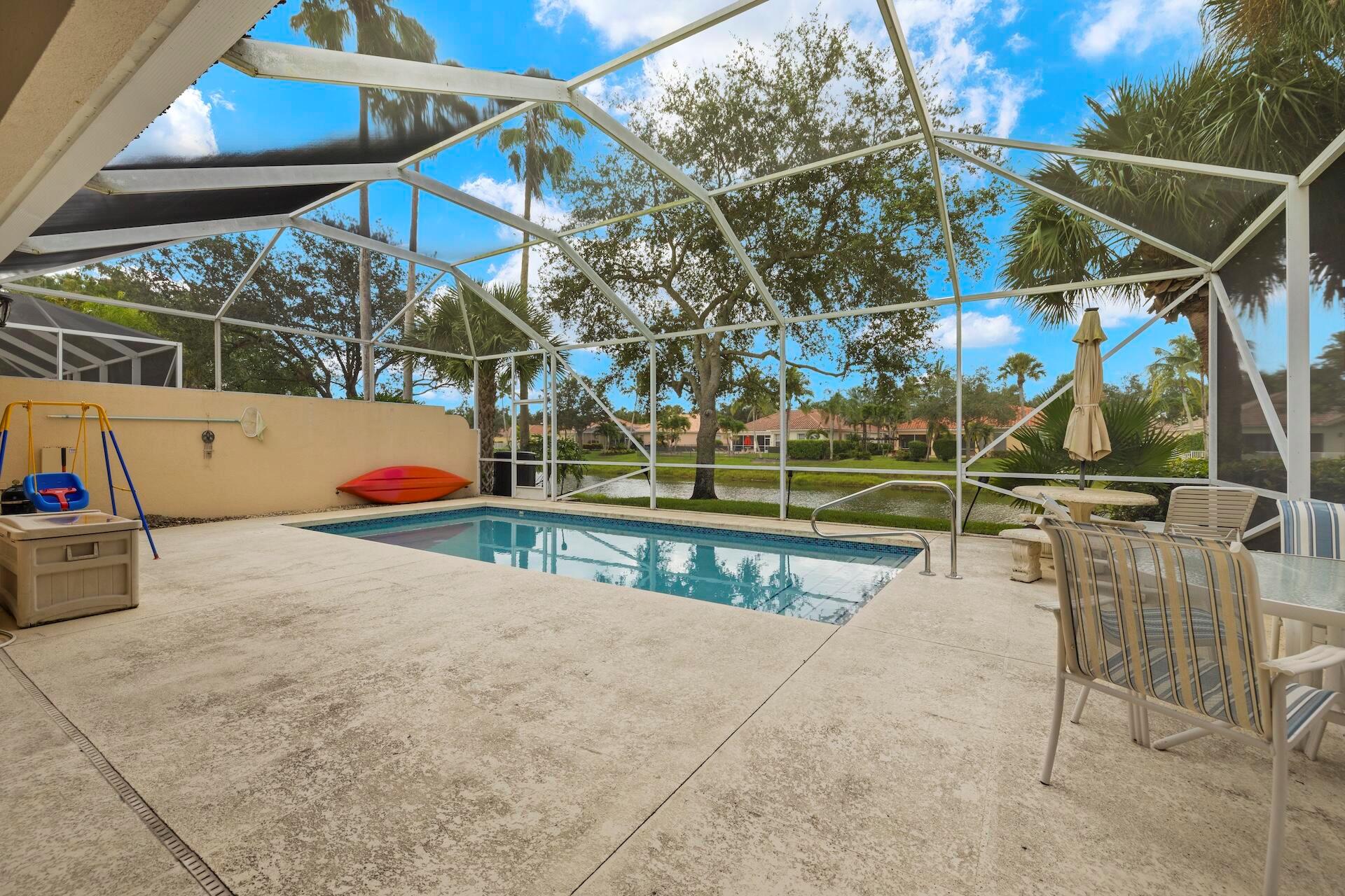 Beautifully maintained 3-bedroom, 3-bathroom PLUS DEN pool home with a 2-car garage situated on a serene lake in the desirable River Walk community. NEW ROOF 2023, NEW A/C 2024 AND NEW WATER HEATER 2023. Open floor plan with tile flooring throughout. Upgraded kitchen equipped with brand new stainless steel appliances. Master bedroom boasts a generous walk-in closet. Riverwalk Community offers many amenities: 6 tennis courts, 4 pickle ball courts, 3 resort style swimming pools, bocce courts, newly remodeled gym and outdoor fitness trail, hair salon, and more.