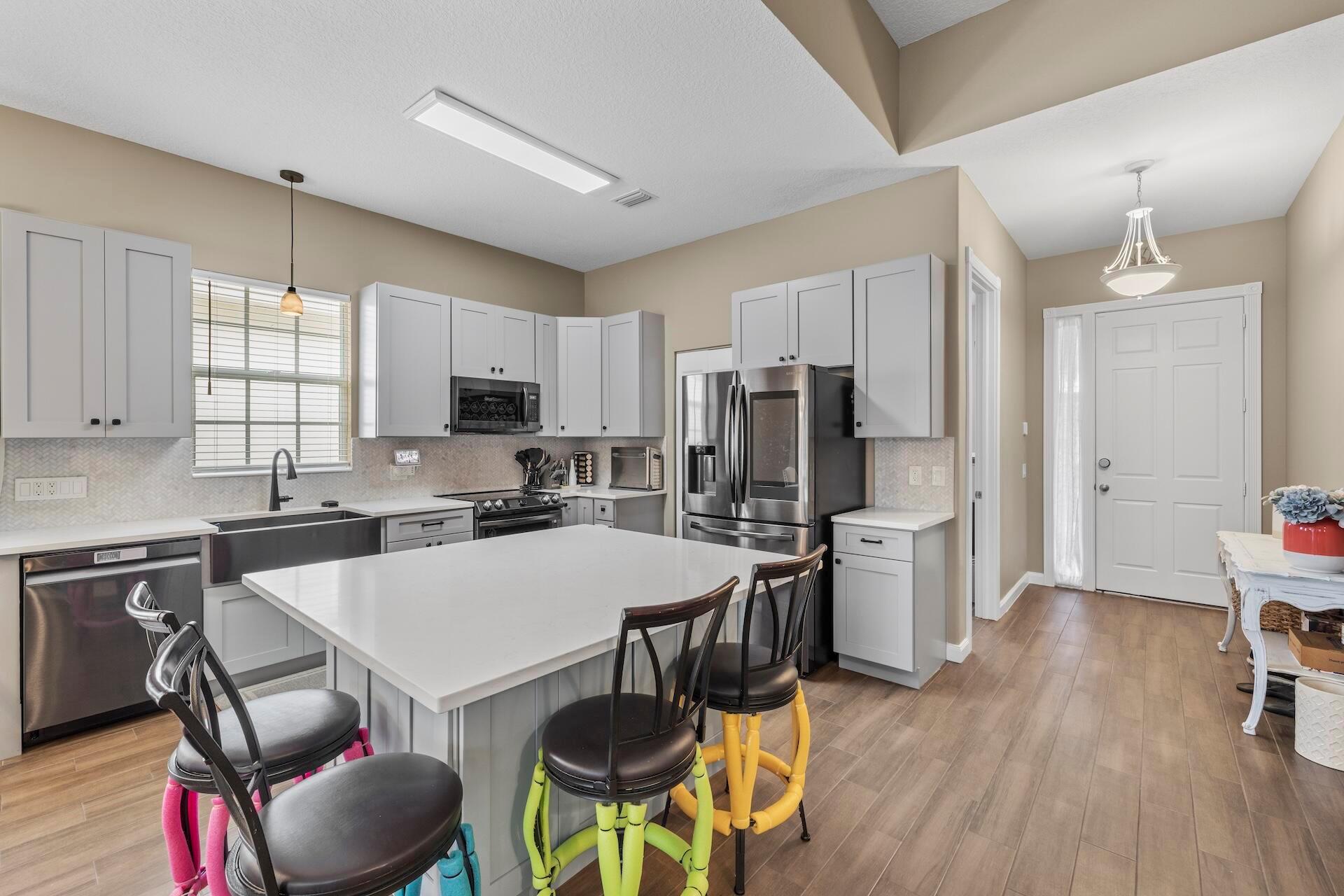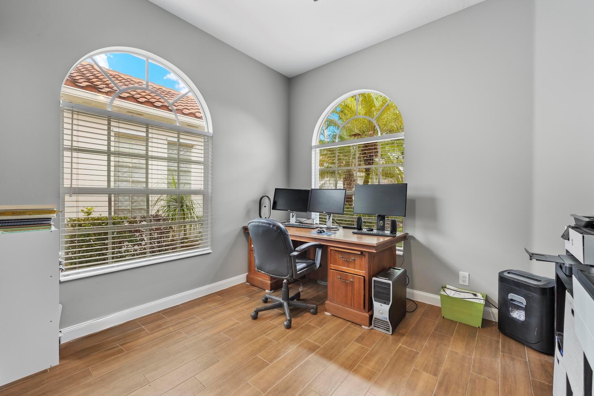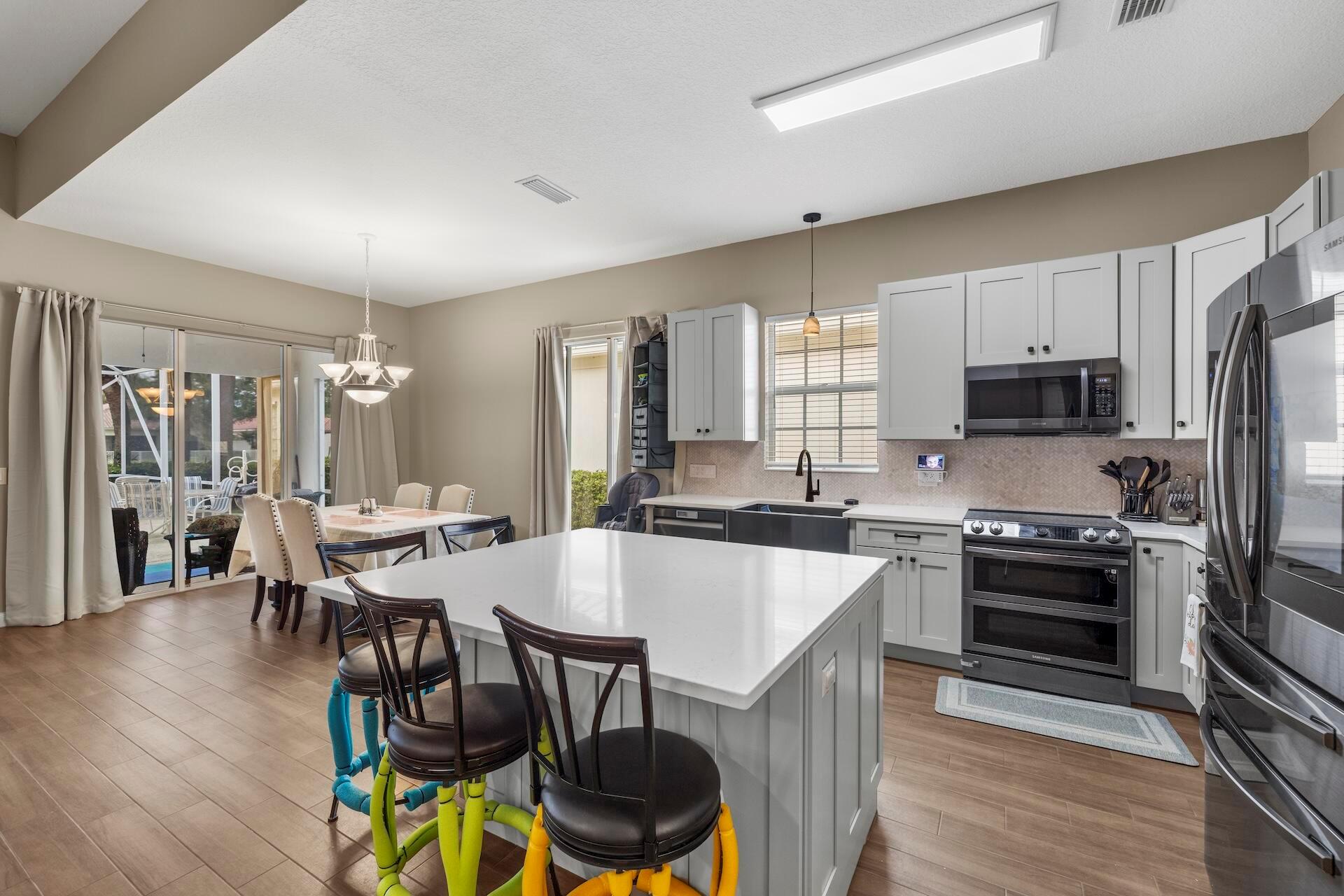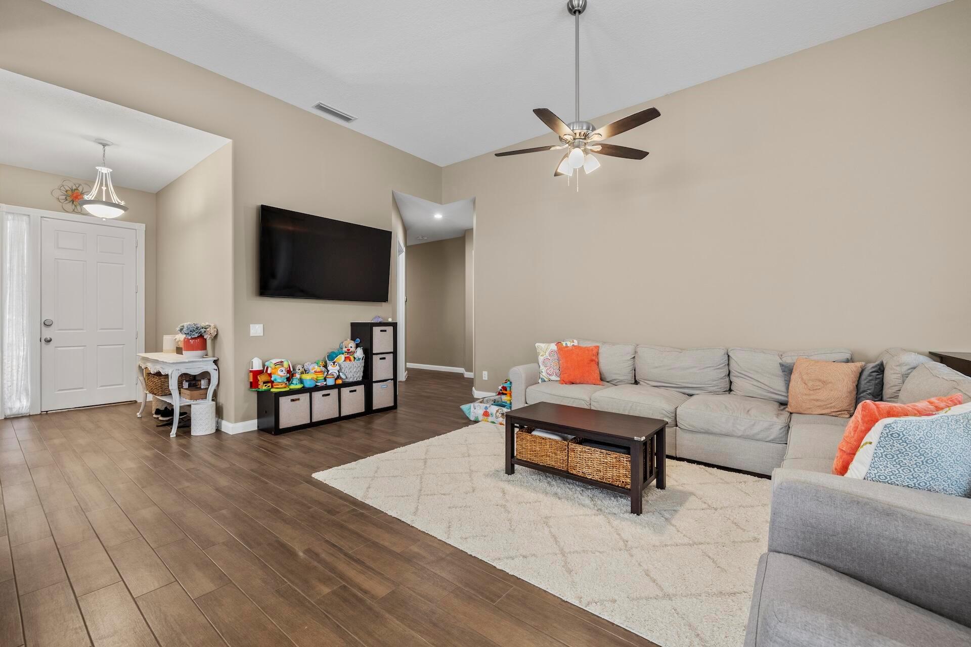 Beautifully maintained 3-bedroom, 3-bathroom PLUS DEN pool home with a 2-car garage situated on a serene lake in the desirable River Walk community. NEW ROOF 2023, NEW A/C 2024 AND NEW WATER HEATER 2023. Open floor plan with tile flooring throughout. Upgraded kitchen equipped with brand new stainless steel appliances. Master bedroom boasts a generous walk-in closet. Riverwalk Community offers many amenities: 6 tennis courts, 4 pickle ball courts, 3 resort style swimming pools, bocce courts, newly remodeled gym and outdoor fitness trail, hair salon, and more.