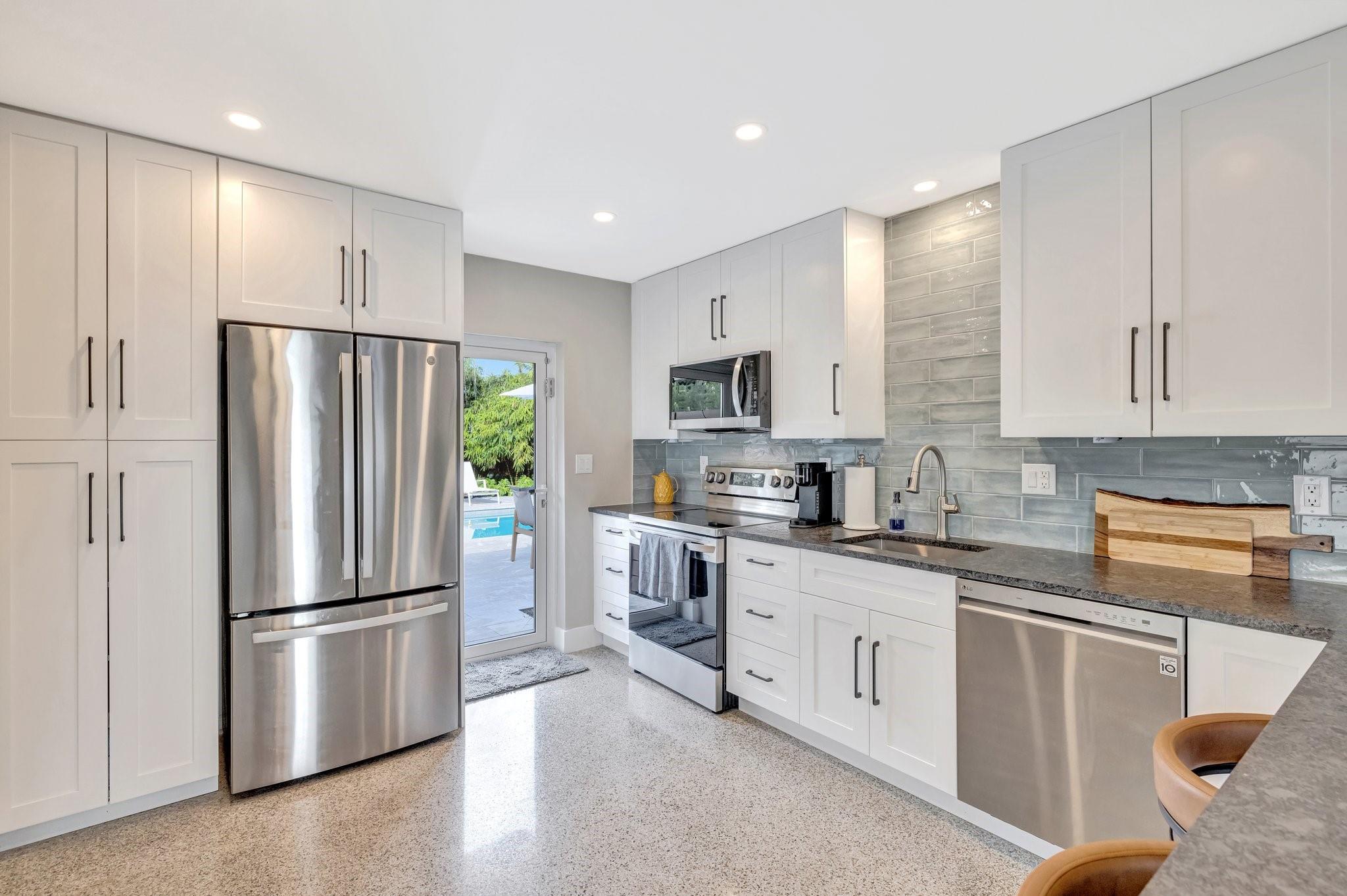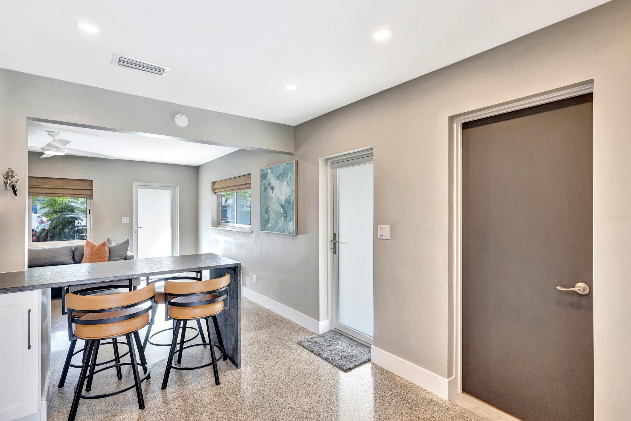 Welcome to this beautifully renovated home in the popular North Andrews Gardens neighborhood. Featuring a brand-new heated & chilled saltwater pool and resort-style landscaping, this home has been thoughtfully remodeled with high-quality finishes rarely found at this price point. The exquisite refinished terrazzo flooring flows throughout most of the home. The updated kitchen boasts leather-finished granite, stainless steel appliances, and shaker-style cabinetry. Other highlights include updated bathrooms, new roof, electrical, plumbing, HVAC, and impact windows/doors. Custom bamboo roman shade window treatments, freshly painted inside & out, private backyard oasis, open front porch, and easy access to beaches, downtown Fort Lauderdale, and I-95 complete this gem!