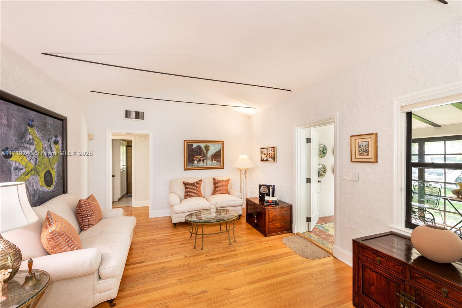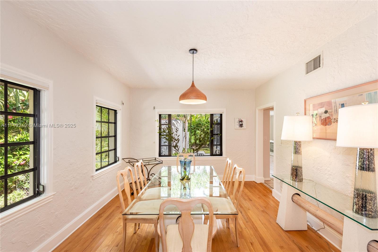 Explore the charm of this old Spanish hacienda on a spacious 5,650 square foot lot (50 x 113). With approximately 1,841 square feet of living space, this home originally featured two bedrooms and one bath, built-in 1925 with a 1-car garage. A mid-1990s addition includes a large family room, full bath, laundry room, and a sizable closet, which can easily be converted into a third bedroom or a primary suite. The inviting front porch showcases a beamed ceiling and original multi-tile floor. Inside, the spacious living room features a fireplace and hardwood floors, while two bedrooms and a bath lie to the east, joined by a formal dining room and modern kitchen. The family room opens to a lovely backyard, complemented by a detached garage and ample brick driveway.