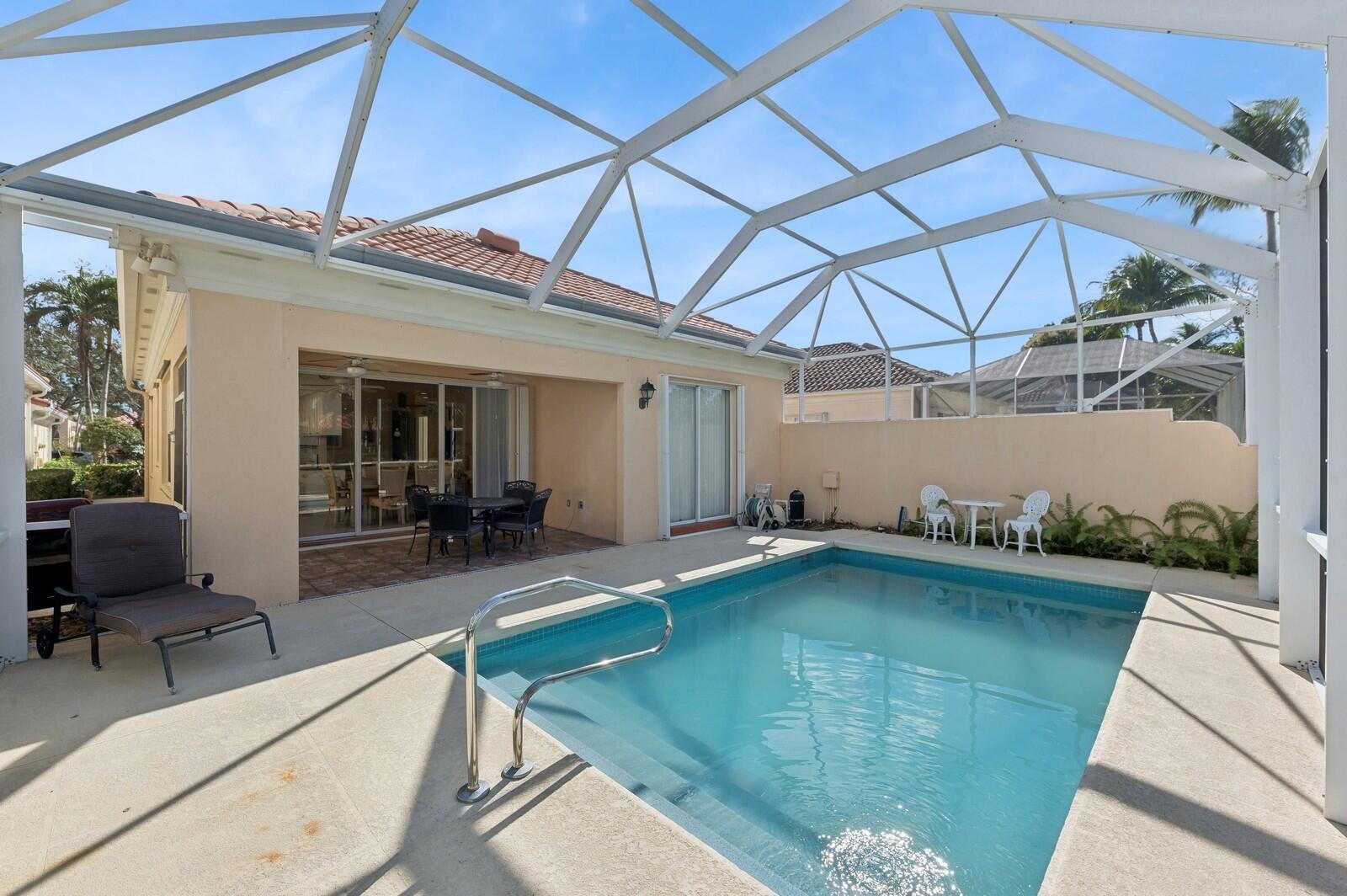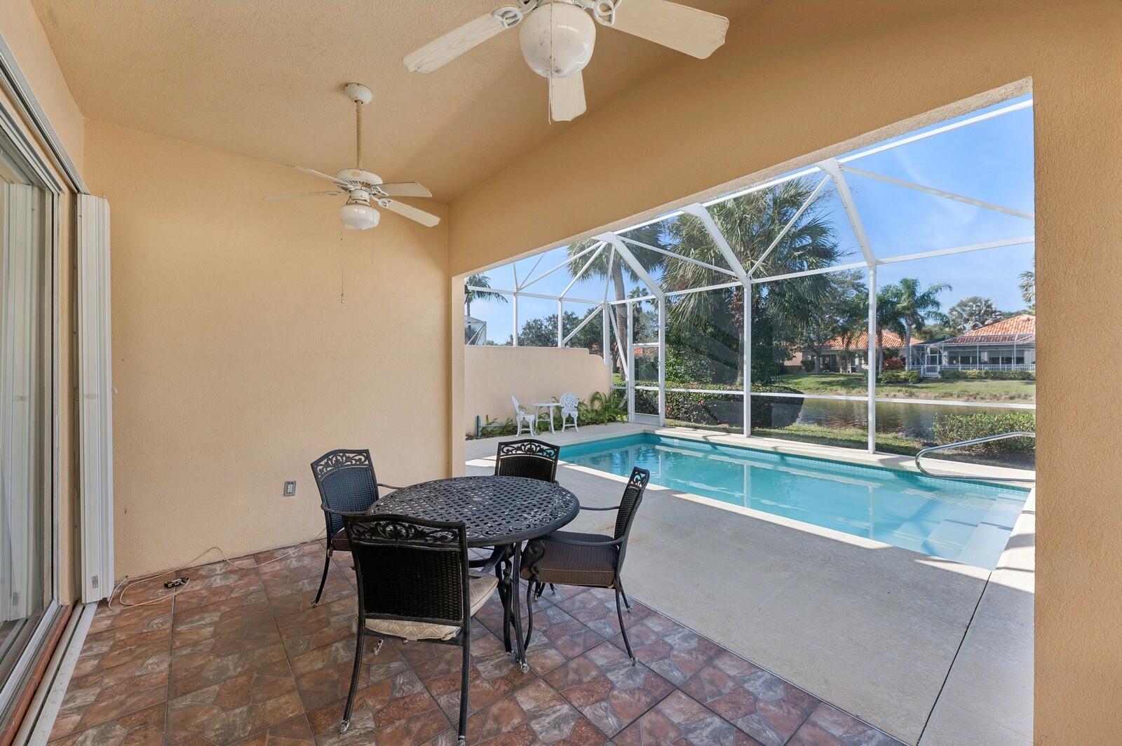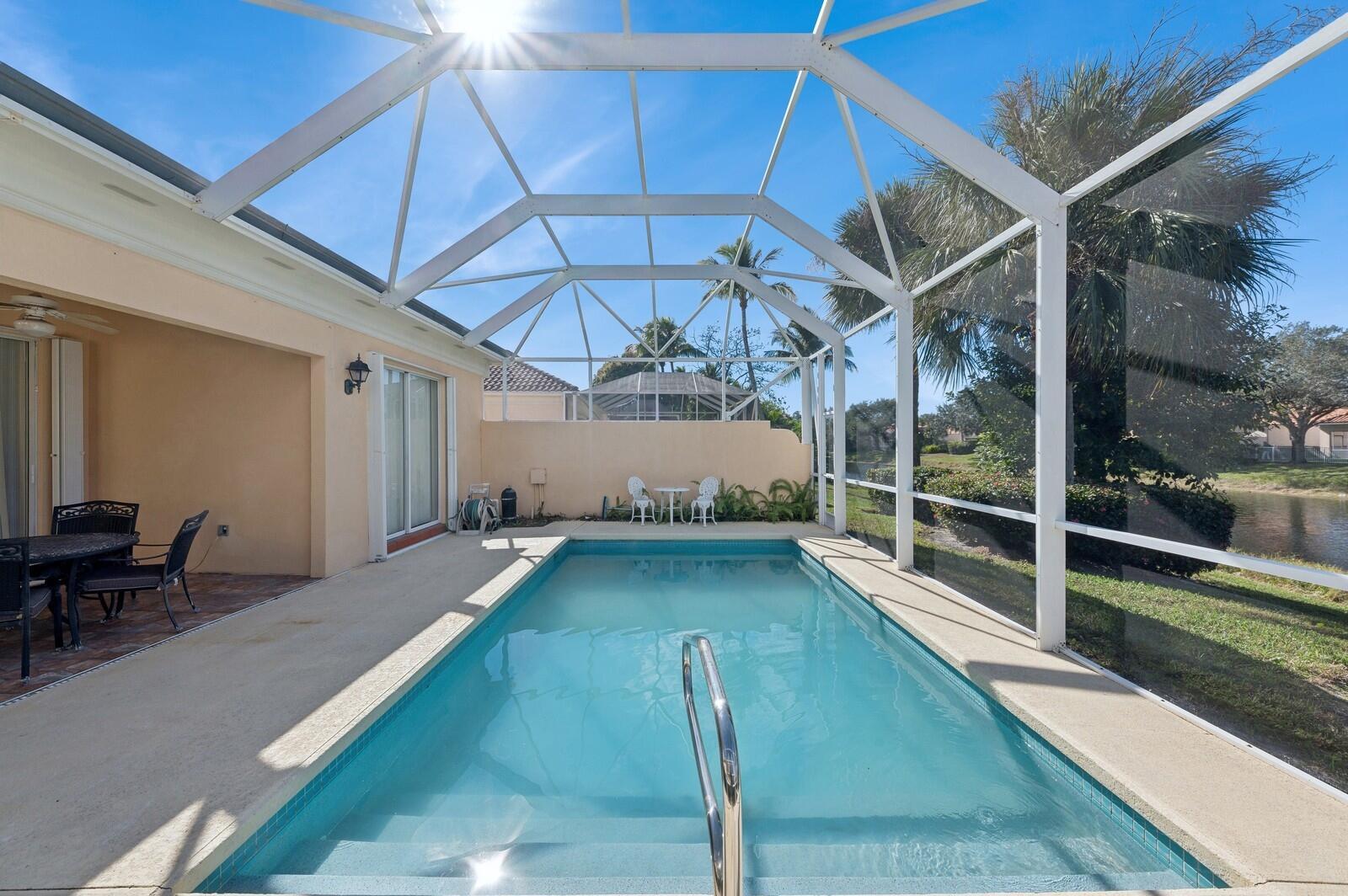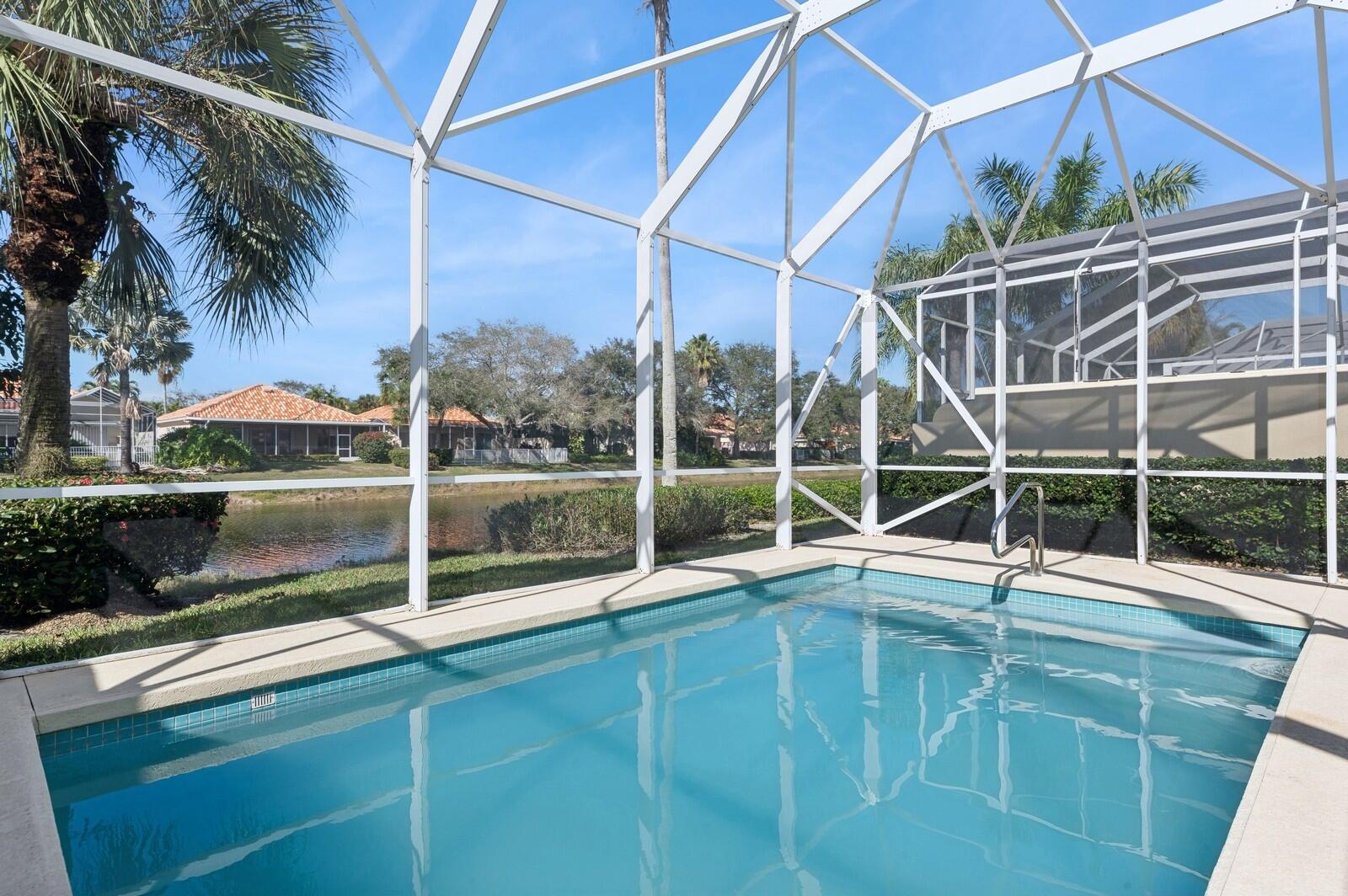 A Rare Opportunity, for One Lucky Buyer, to start with a Blank Canvas & Create a Home that can reflect their Own Personal Taste & have the Foundation be this 3 Bedroom 2 Bath Glenwood Model (Single Family) having a Screened Enclosed Swimming Pool on a Wide Lakefront Lot with Panoramic Views! The Excitement begins with a Tropically Planted Wide, Lush Lawn leading to an Inviting Screened Entry with a Decorative Faux Stone Tile Floor, that Opens to the Gracious, Large Ceramic Tile Foyer with a Ceiling Fan & a Sun Drenched Window, Overlooking the Side Yard, that leads to the Spacious Great Room with a Ceramic Tile Floor, (as do the Dining Area & the Open Kitchen) a Ceiling Fan & the Kitchen, the Hub for Casual Entertaining & Everyday Living, which has Stunning Marbleized Bullnose Countertops