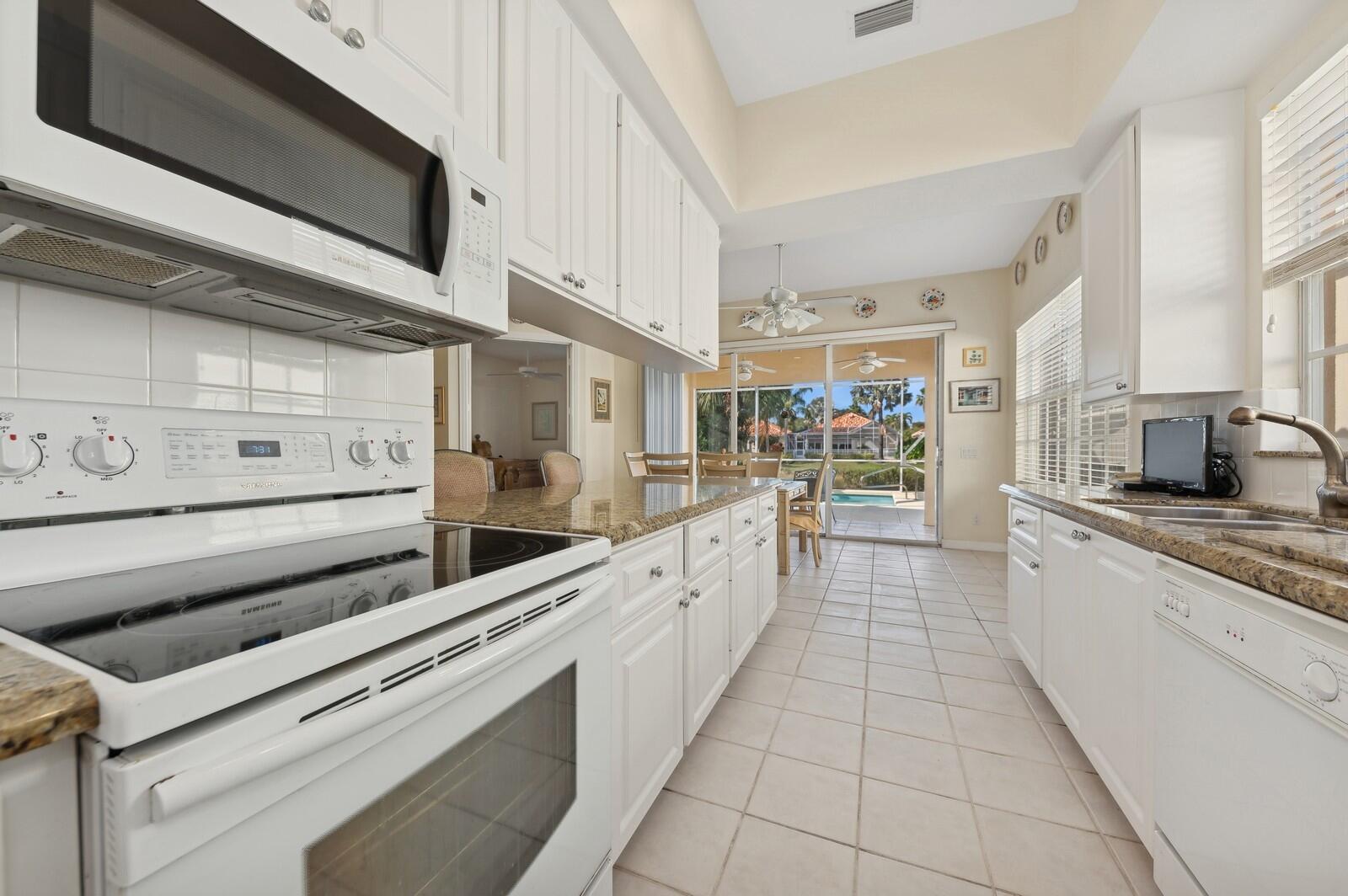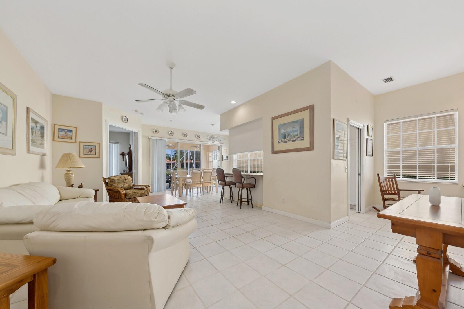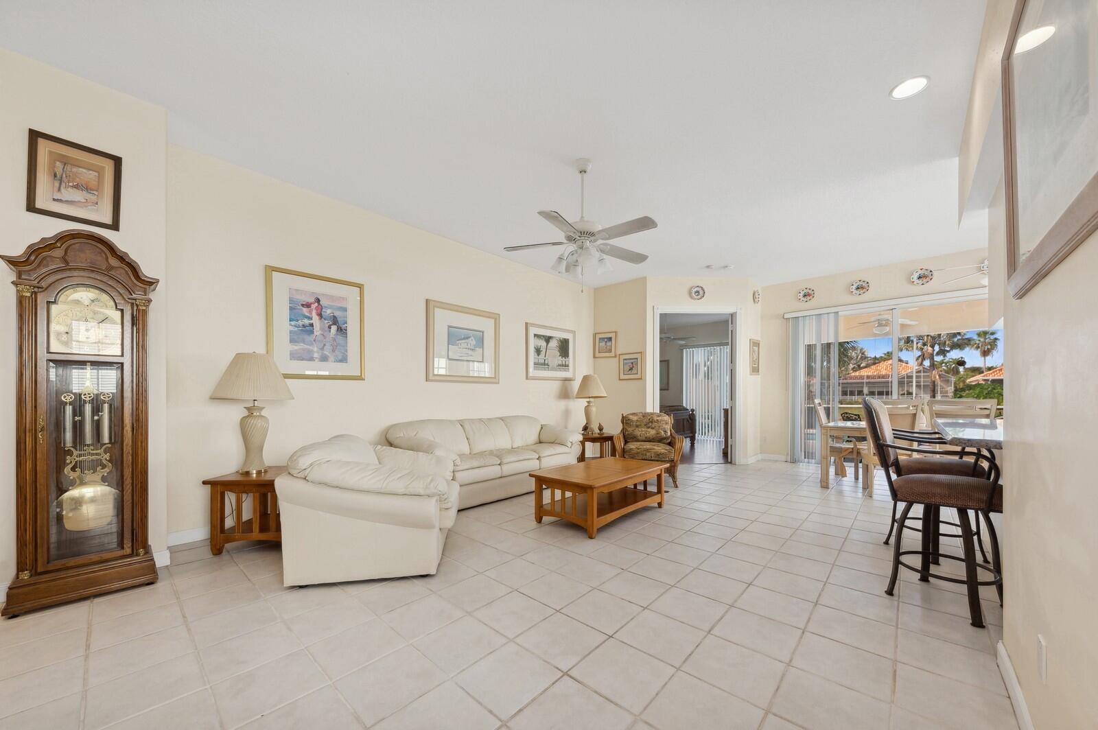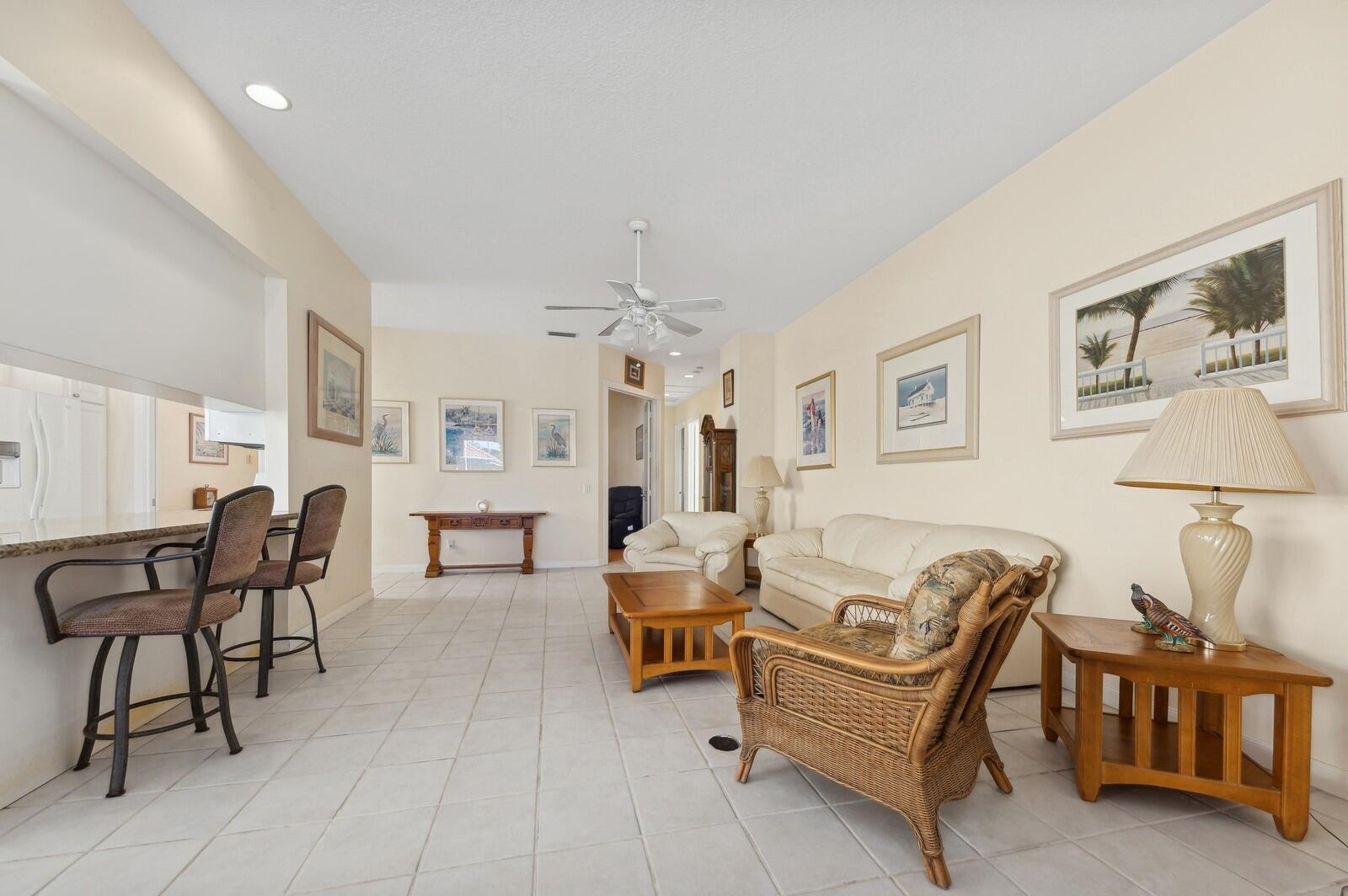 A Rare Opportunity, for One Lucky Buyer, to start with a Blank Canvas & Create a Home that can reflect their Own Personal Taste & have the Foundation be this 3 Bedroom 2 Bath Glenwood Model (Single Family) having a Screened Enclosed Swimming Pool on a Wide Lakefront Lot with Panoramic Views! The Excitement begins with a Tropically Planted Wide, Lush Lawn leading to an Inviting Screened Entry with a Decorative Faux Stone Tile Floor, that Opens to the Gracious, Large Ceramic Tile Foyer with a Ceiling Fan & a Sun Drenched Window, Overlooking the Side Yard, that leads to the Spacious Great Room with a Ceramic Tile Floor, (as do the Dining Area & the Open Kitchen) a Ceiling Fan & the Kitchen, the Hub for Casual Entertaining & Everyday Living, which has Stunning Marbleized Bullnose Countertops