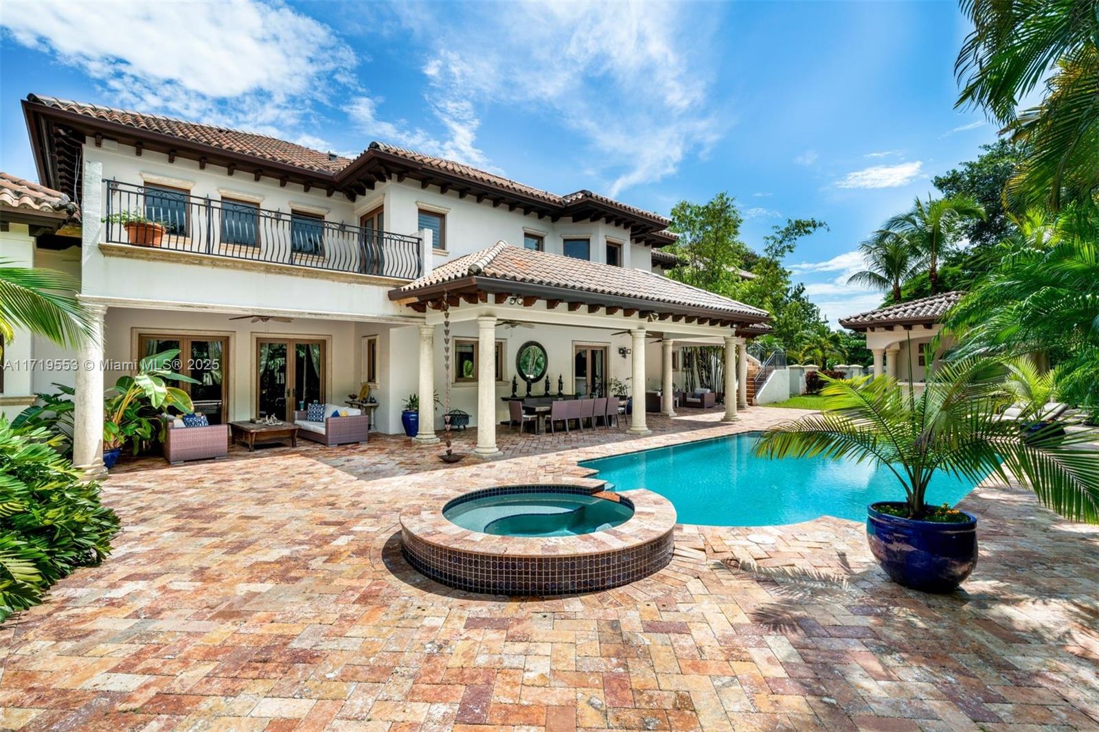This attractive 9,267 sf Pinecrest residence with 6 bedrooms and 7.5 baths presents a rare blend of timeless elegance and modern luxury. Situated on a sprawling 35,283 sq ft lot, the outdoor areas are perfect for hosting friends or family gatherings, with a sparkling pool and spa, summer kitchen and expansive covered patio. The interior features an open layout, adorned with high-end finishes, coffered ceilings, custom lighting, and large windows that bathe the rooms in natural lighting. Other features include a spacious office with fireplace, a separate entertainment room that can easily be converted into a guest/in-laws suite, a luxurious ensuite primary bedroom and additional ensuite rooms. Conveniently located close to highly rated schools and the Pinecrest community center.