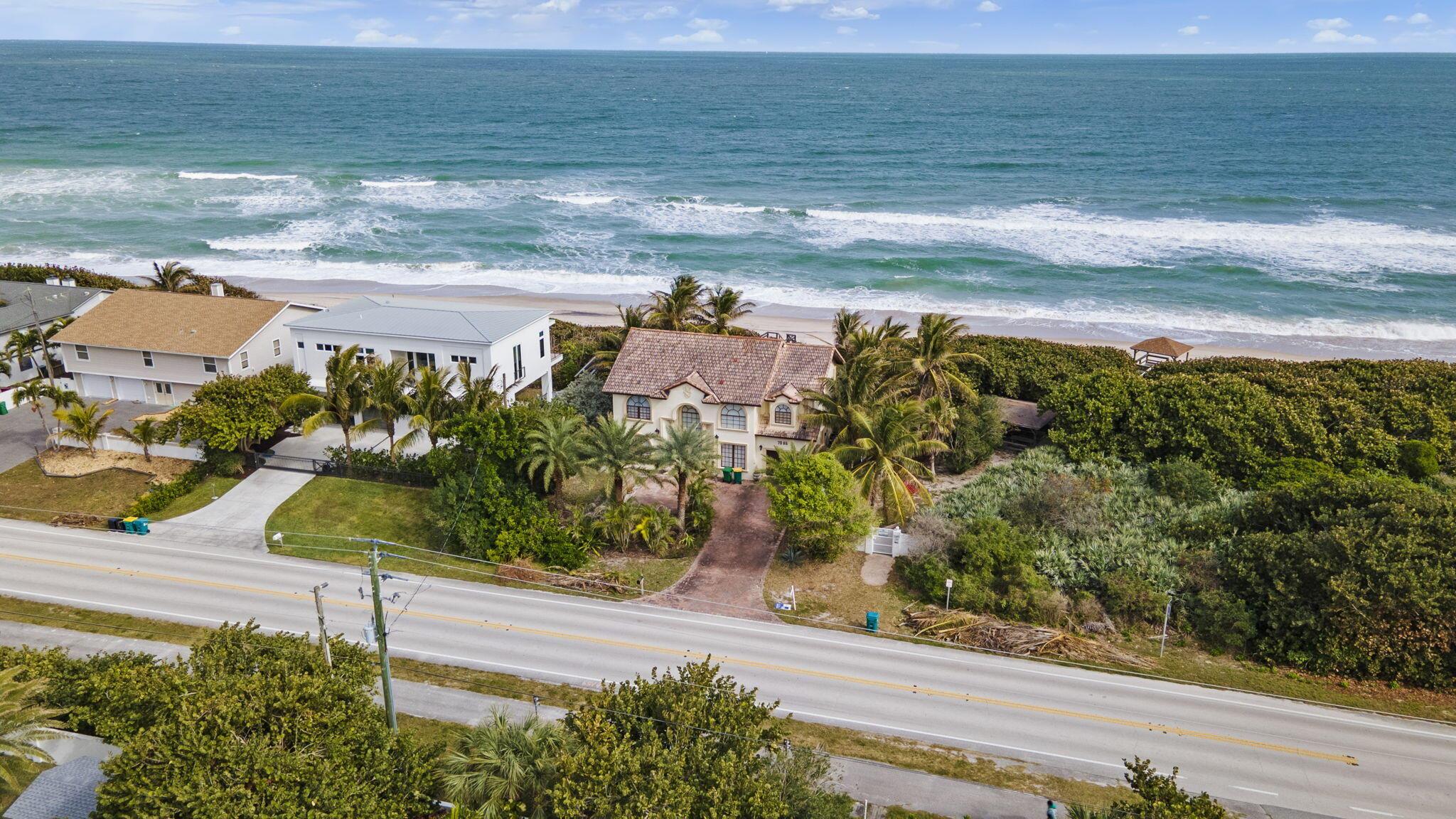 Exquisite Oceanfront home on 1/2 acre with no HOA and a nature preserve lot. Coastal elegance surrounded by lush, tropical landscaping with a private, pristine, white sand beach out your back door. This solid concrete block residence is rich with architectural flavor features marble and Cherry hardwood flooring, newer AC and impact rated glass sliders & garage door.