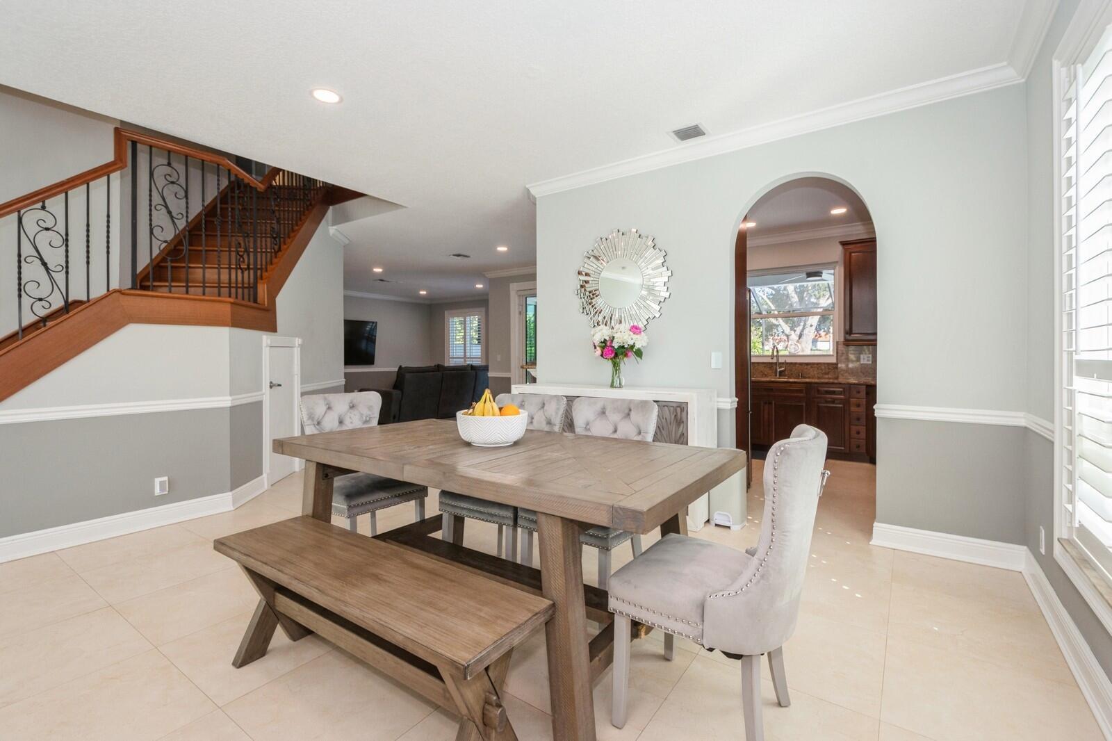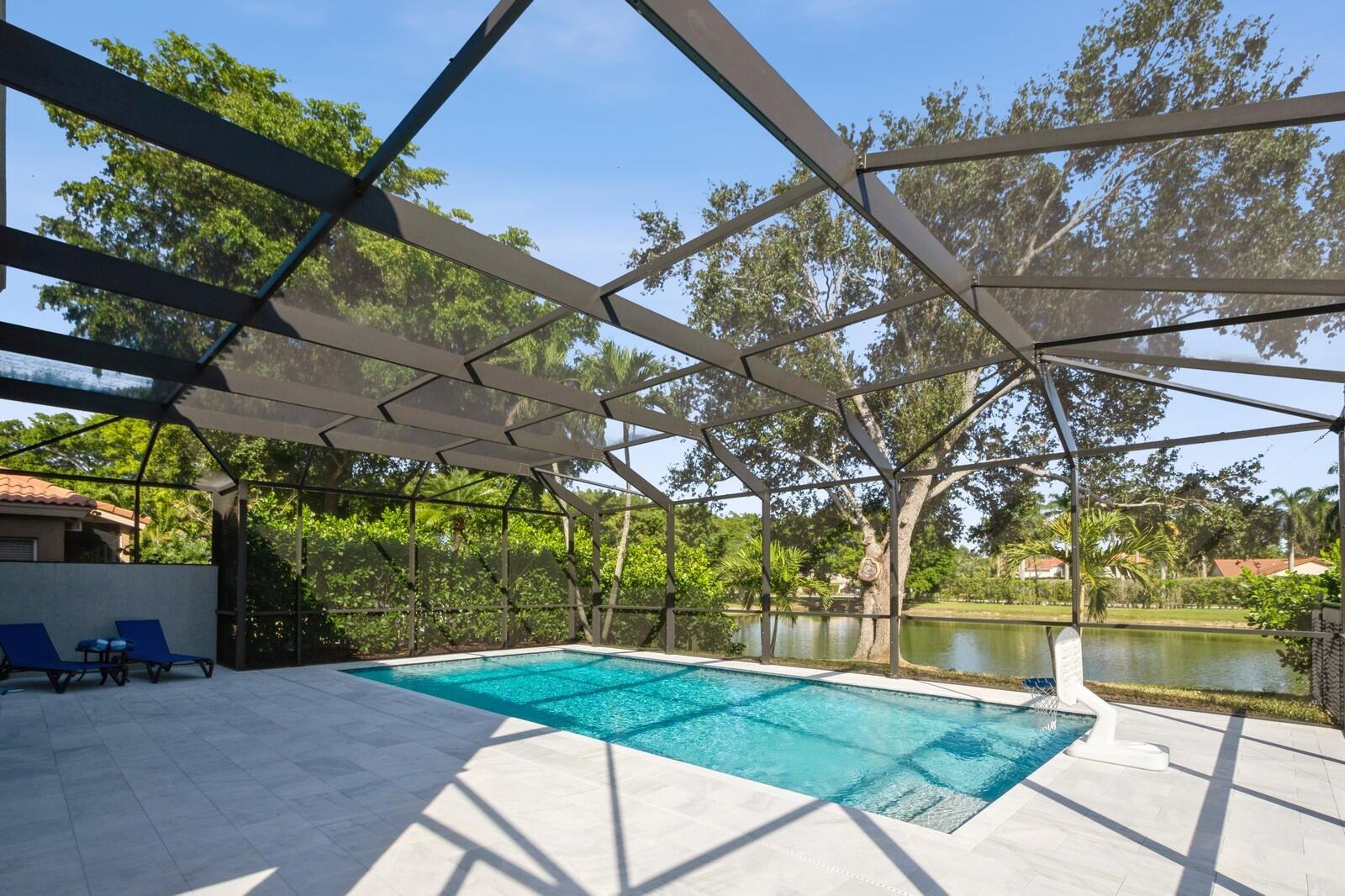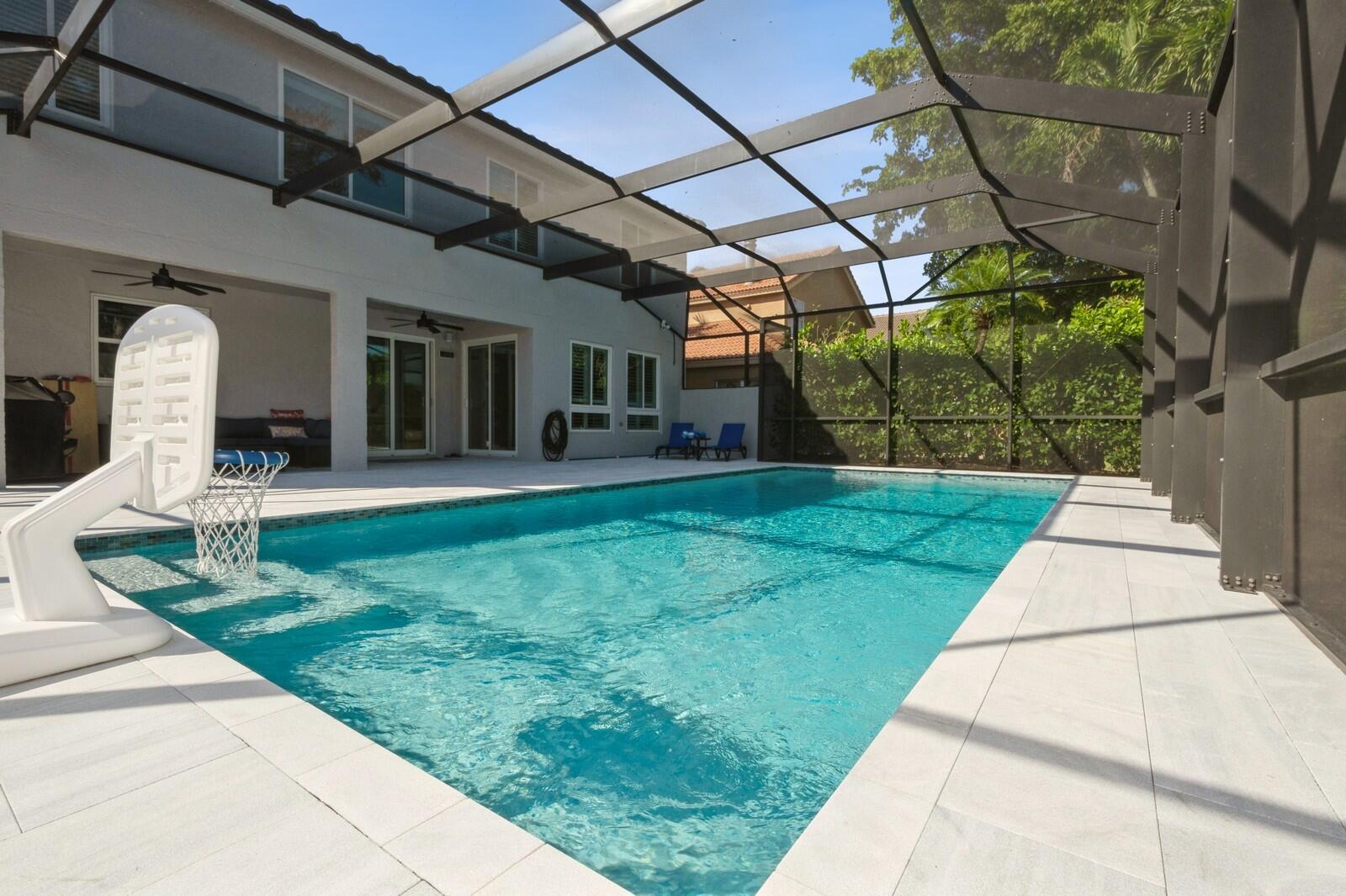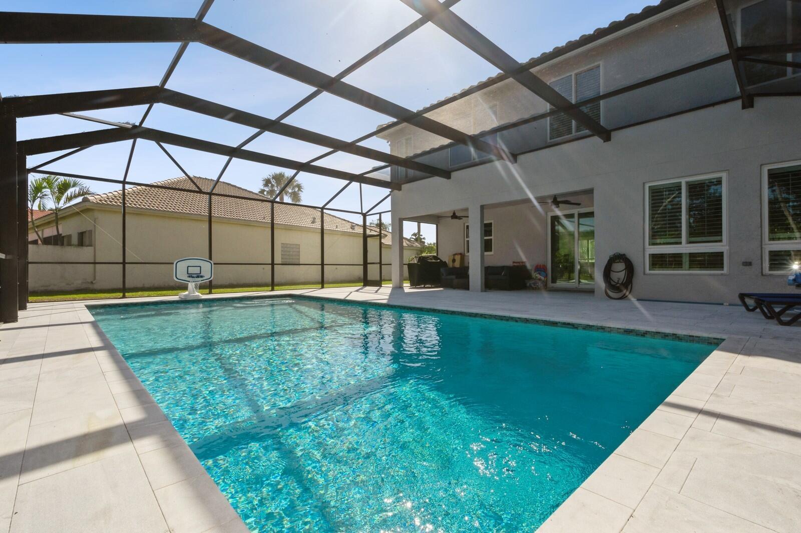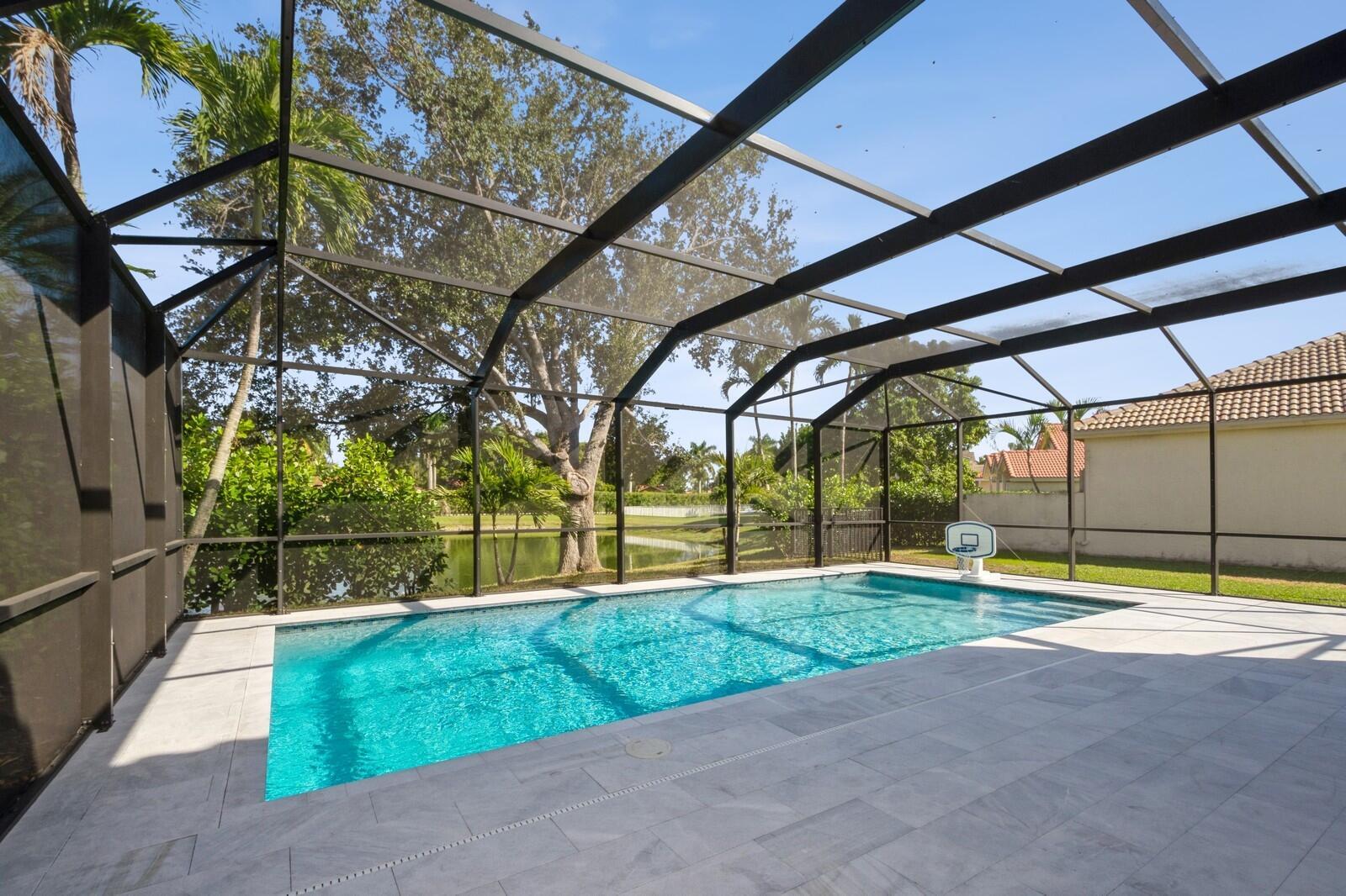 Step into this elegant 5-bedroom, 2-story estate, perfectly situated on a tranquil lake in the sought-after Mission Bay community. This home offers a large pool and expansive screened paver patio (2023), creating a peaceful outdoor space ideal for entertaining or quiet relaxation while overlooking the water. A large side yard - a rare feature in this neighborhood - provides additional outdoor space for recreation, sports, or gardening. Many upgrades in the last 5 years: impact windows (2022), air conditioner, and furnace (2021), an Electrical panel (2019) with 220v set up for an electric car charger, a finished garage, and a 5-year-old roof, providing durability and peace of mind. Inside, you'll find beautiful tile and wood flooring throughout - with no carpet