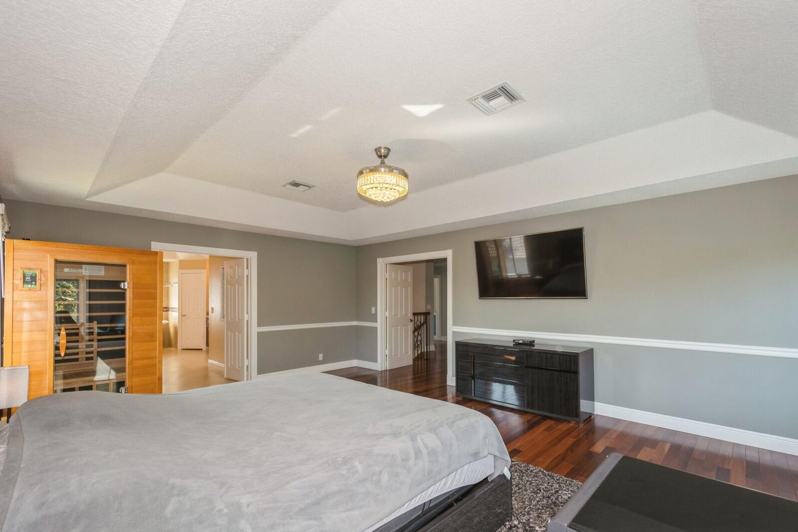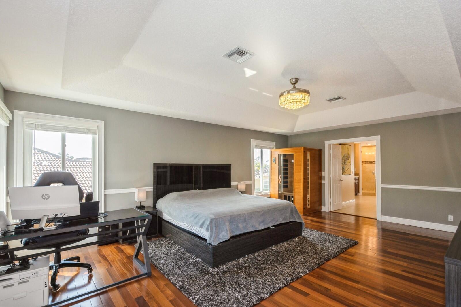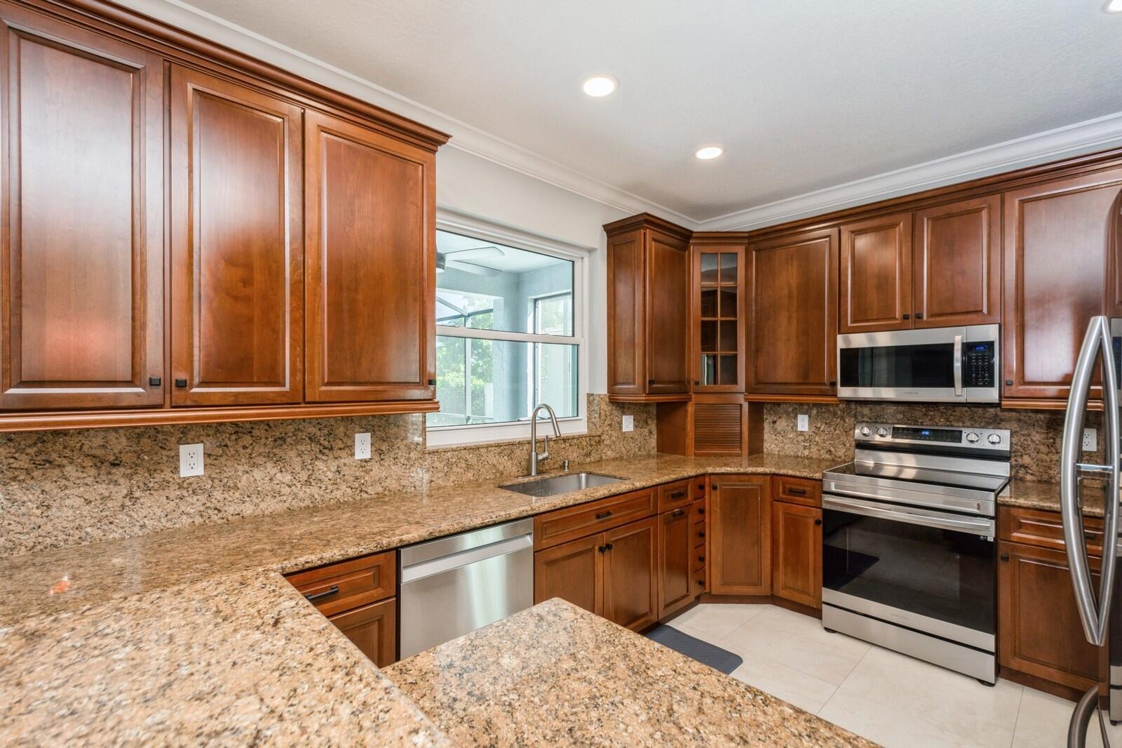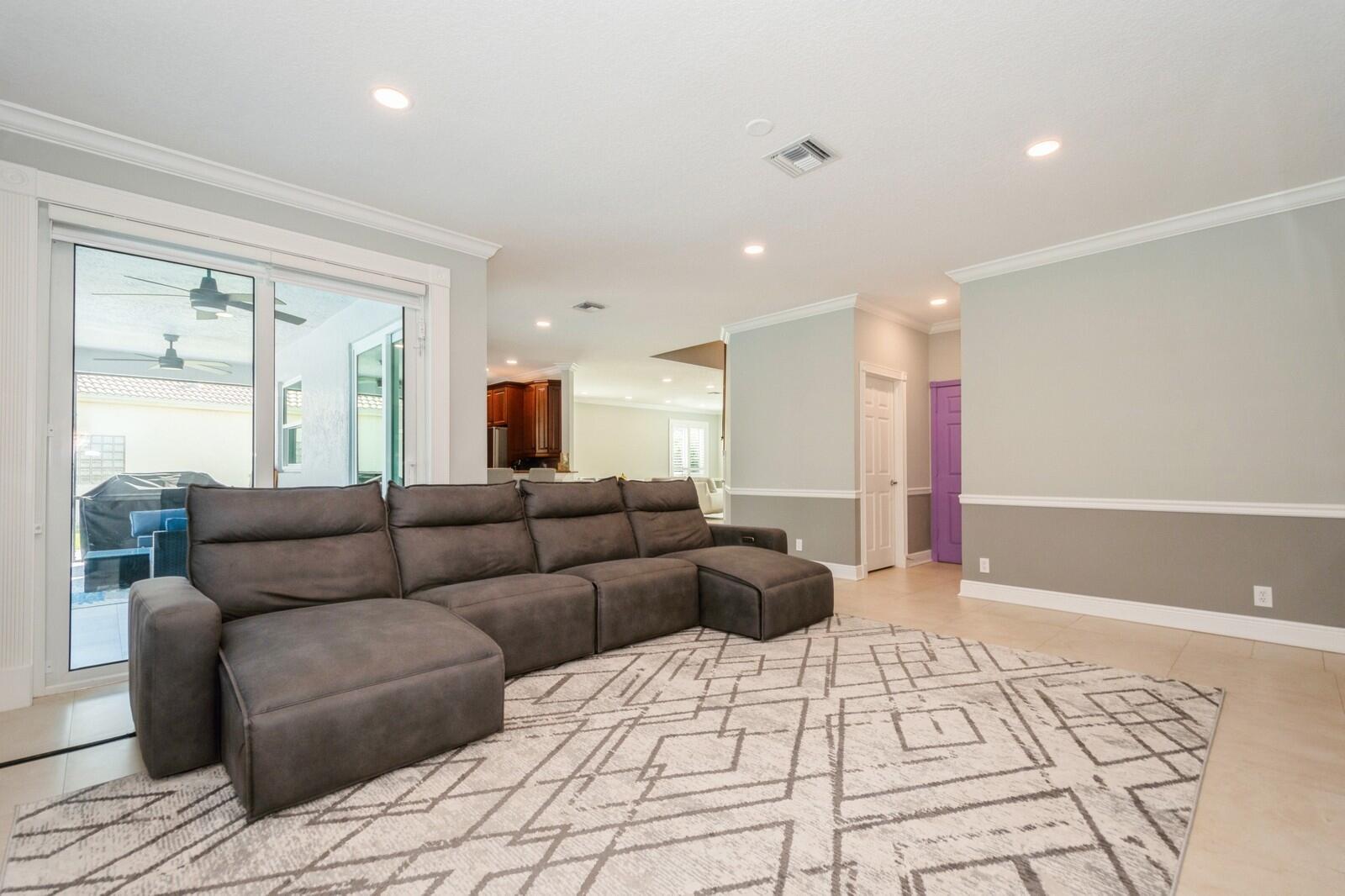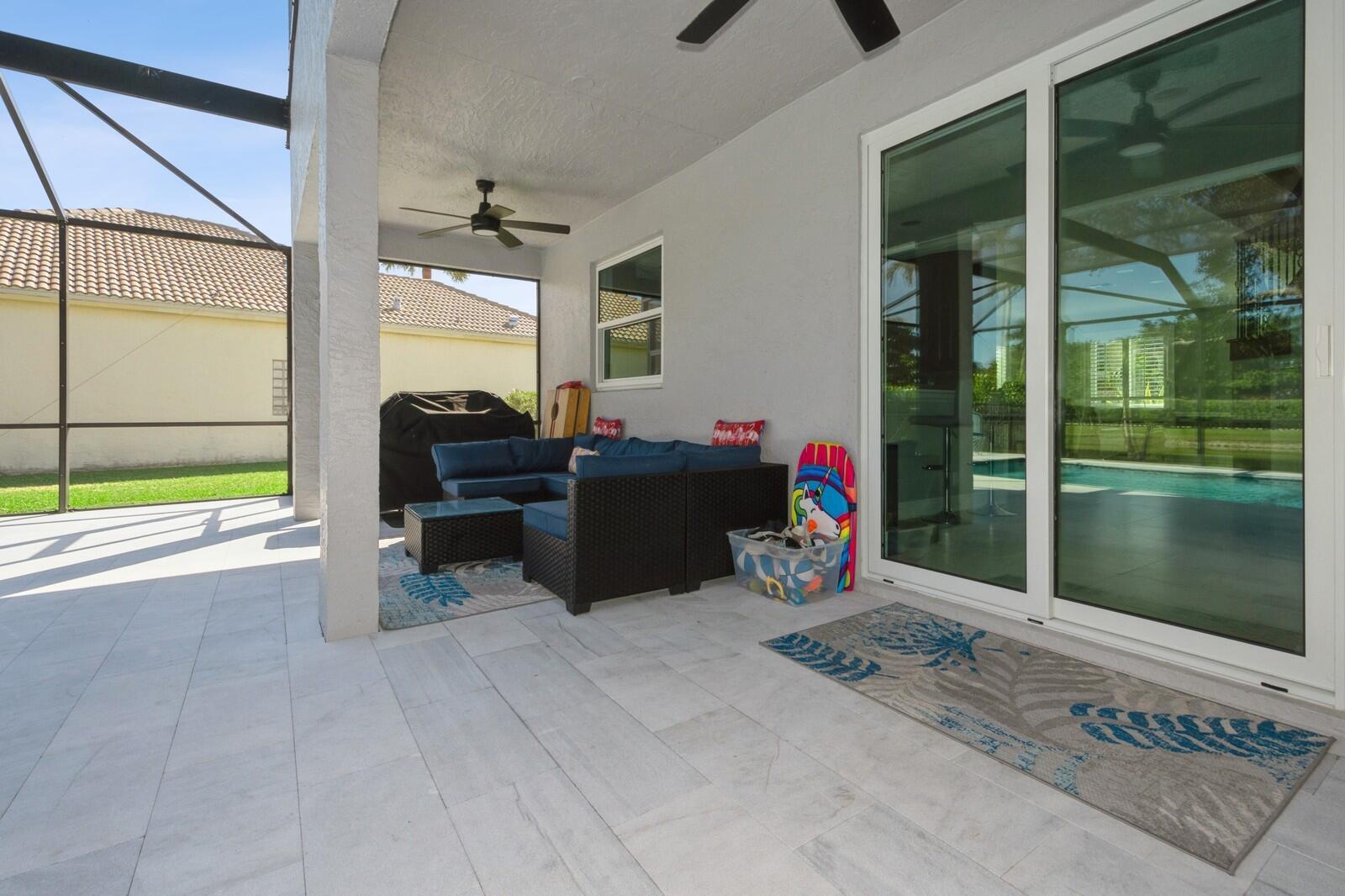 Step into this elegant 5-bedroom, 2-story estate, perfectly situated on a tranquil lake in the sought-after Mission Bay community. This home offers a large pool and expansive screened paver patio (2023), creating a peaceful outdoor space ideal for entertaining or quiet relaxation while overlooking the water. A large side yard - a rare feature in this neighborhood - provides additional outdoor space for recreation, sports, or gardening. Many upgrades in the last 5 years: impact windows (2022), air conditioner, and furnace (2021), an Electrical panel (2019) with 220v set up for an electric car charger, a finished garage, and a 5-year-old roof, providing durability and peace of mind. Inside, you'll find beautiful tile and wood flooring throughout - with no carpet