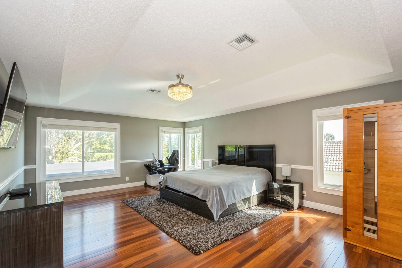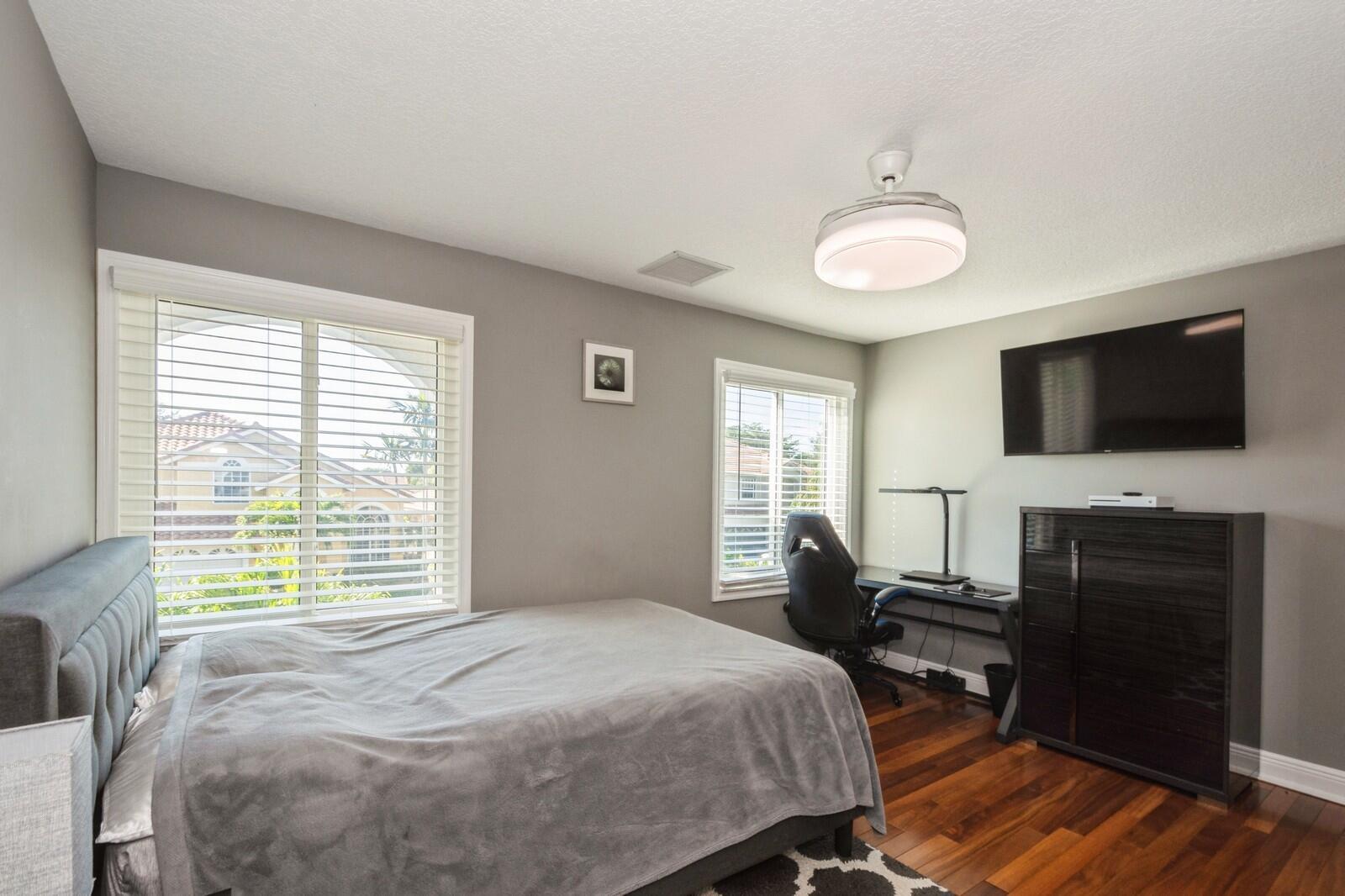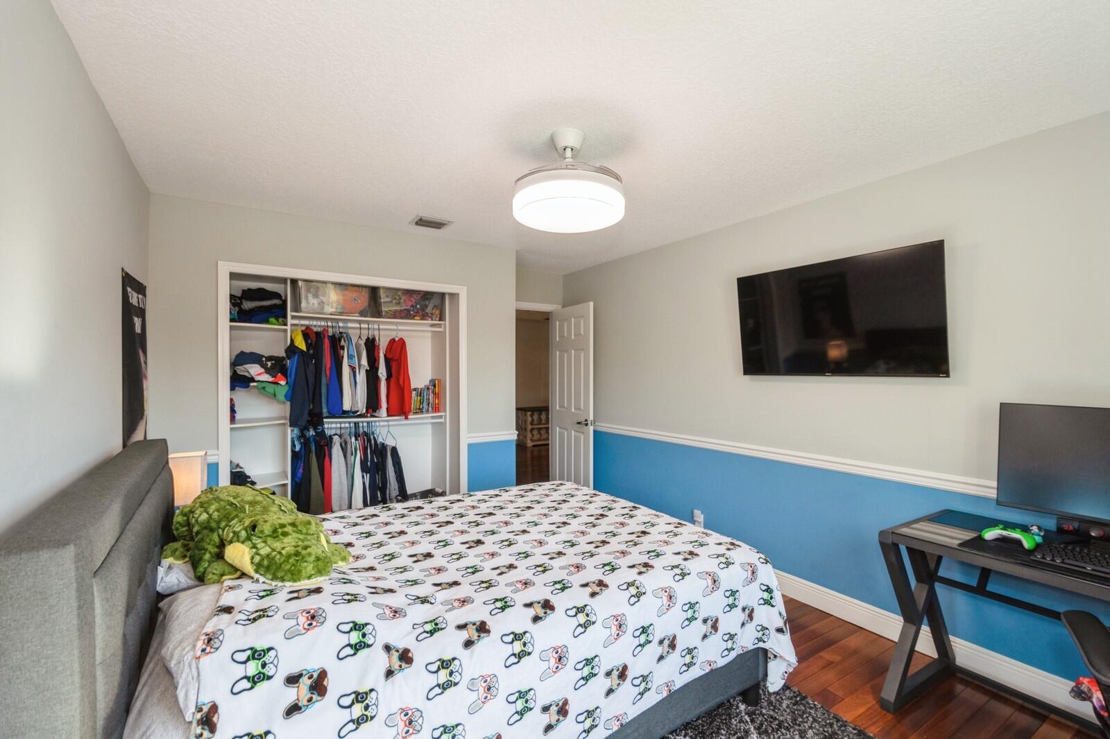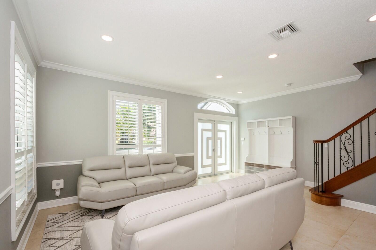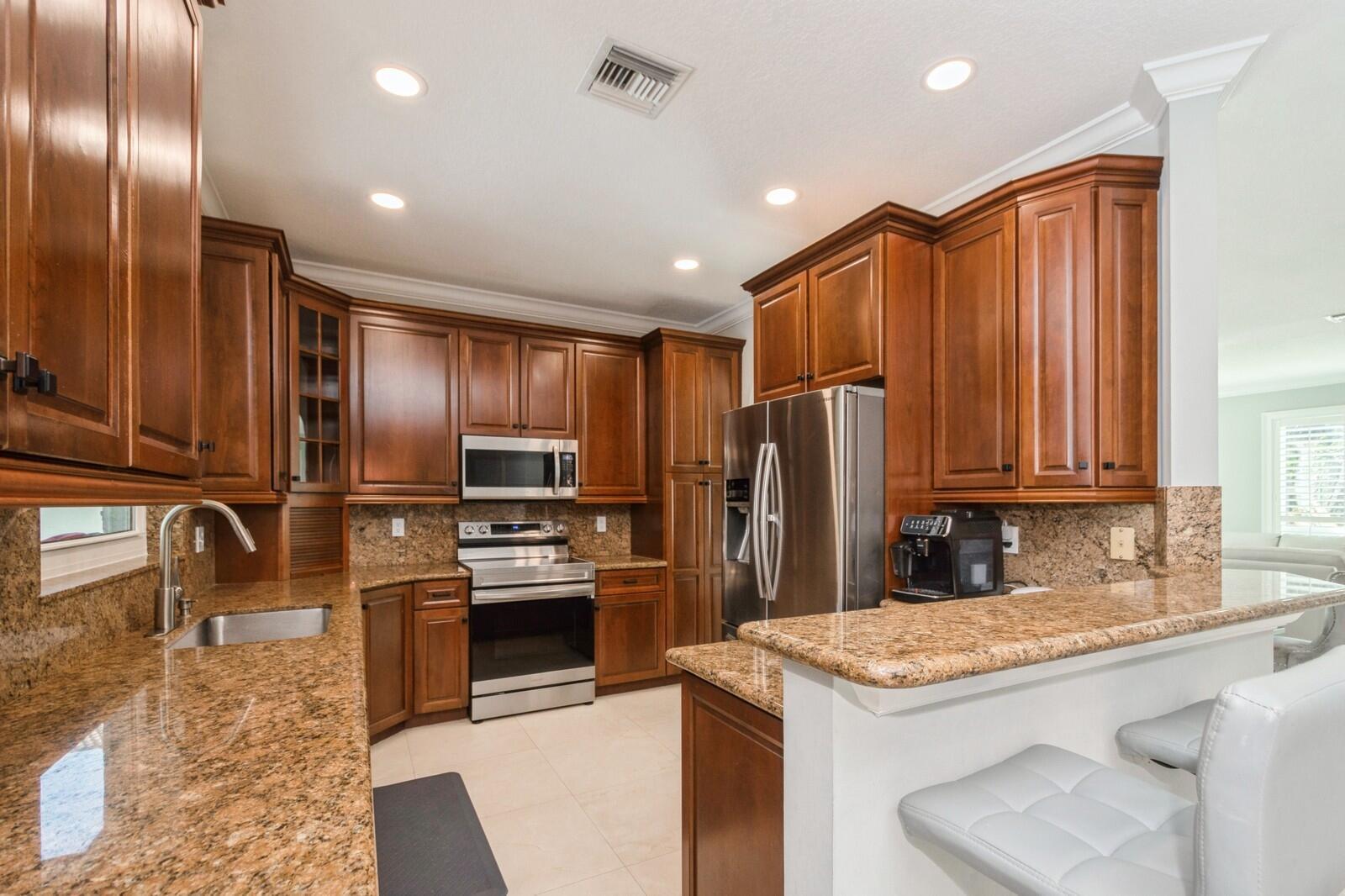 Step into this elegant 5-bedroom, 2-story estate, perfectly situated on a tranquil lake in the sought-after Mission Bay community. This home offers a large pool and expansive screened paver patio (2023), creating a peaceful outdoor space ideal for entertaining or quiet relaxation while overlooking the water. A large side yard - a rare feature in this neighborhood - provides additional outdoor space for recreation, sports, or gardening. Many upgrades in the last 5 years: impact windows (2022), air conditioner, and furnace (2021), an Electrical panel (2019) with 220v set up for an electric car charger, a finished garage, and a 5-year-old roof, providing durability and peace of mind. Inside, you'll find beautiful tile and wood flooring throughout - with no carpet