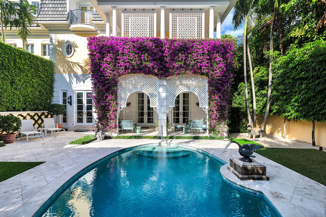 In town living at its best! Beautiful 3 story townhome steps from the Intracoastal and close to Worth Avenue restaurants and shops. Boasting 6000+/- square feet, this private oasis offers 4 bedrooms with lovely balconies. (one bedroom has been converted to an office/library, but can be easily switched back) 4 full baths and 1 half bath. The living room terrace offers an idyllic oasis for outdoor entertaining overlooking the pool and beautifully landscaped gardens. A true gem in the best