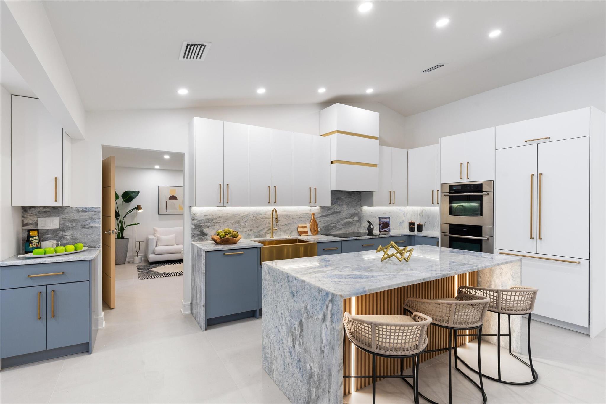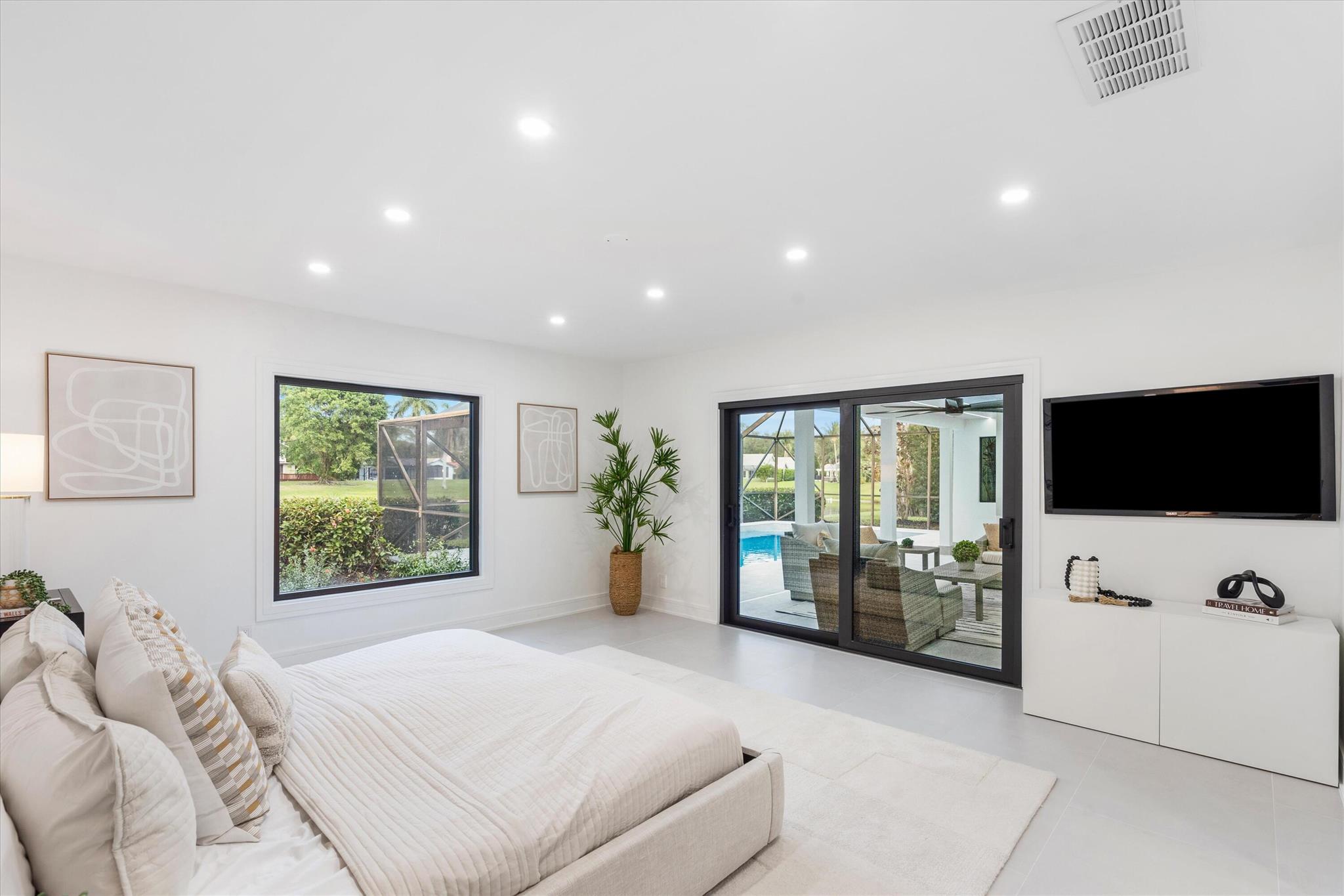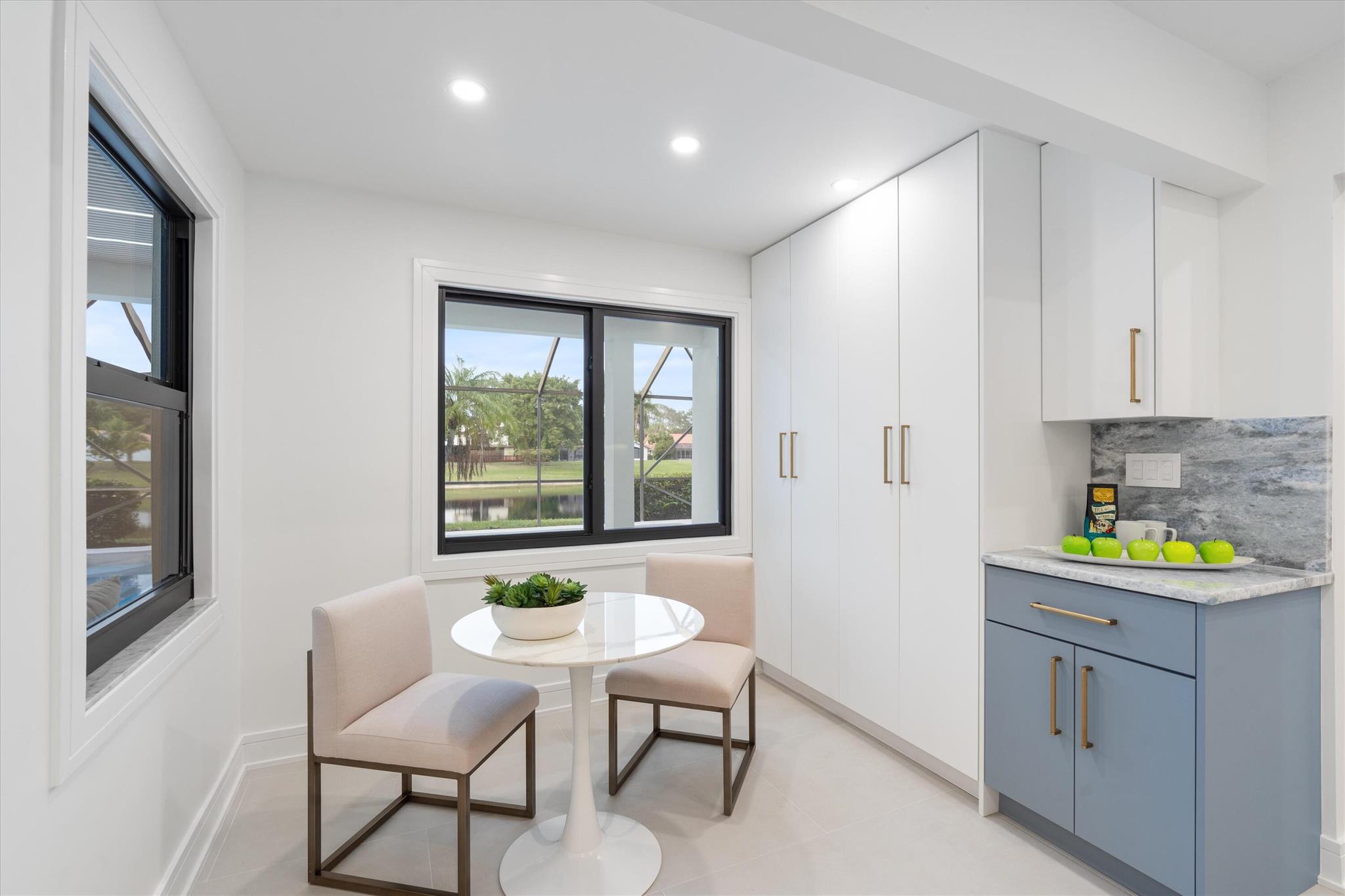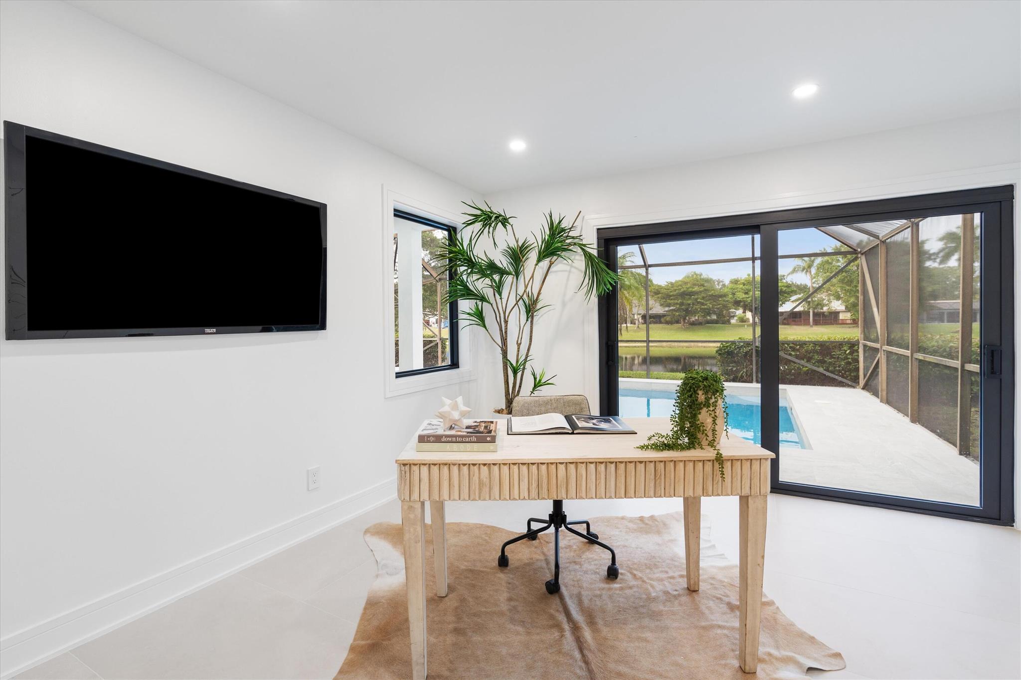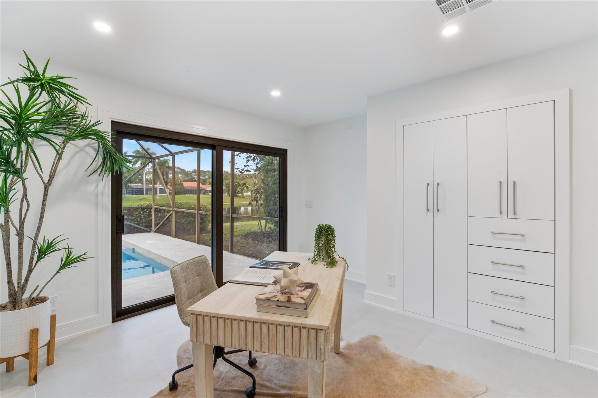 Millpond of Boca rarely available prime lot near the park and tennis courts is this 4 BR 3 BA home with pool and expansive lake front lot. A+ top schools of Omni Middle and Spanish River High are right around the corner! Barrel tile roof (2021), Full Hurricane impact glass throughout, and solar panel system makes the FPL bill incredibly low! Custom fit built in cabinetry and closets in every room with soft touch push open. The central kitchen boasts all brand new Bosch and Thermidor high-line appliances, under counter LED lighting, panel hidden refrigerator and dishwasher, level 5 custom cabinetry, and a stunning marble countertop punctuating the modern - beach feel. Overlook the lake with access to the pool through the massive picture window in the primary bedroom. The pool deck