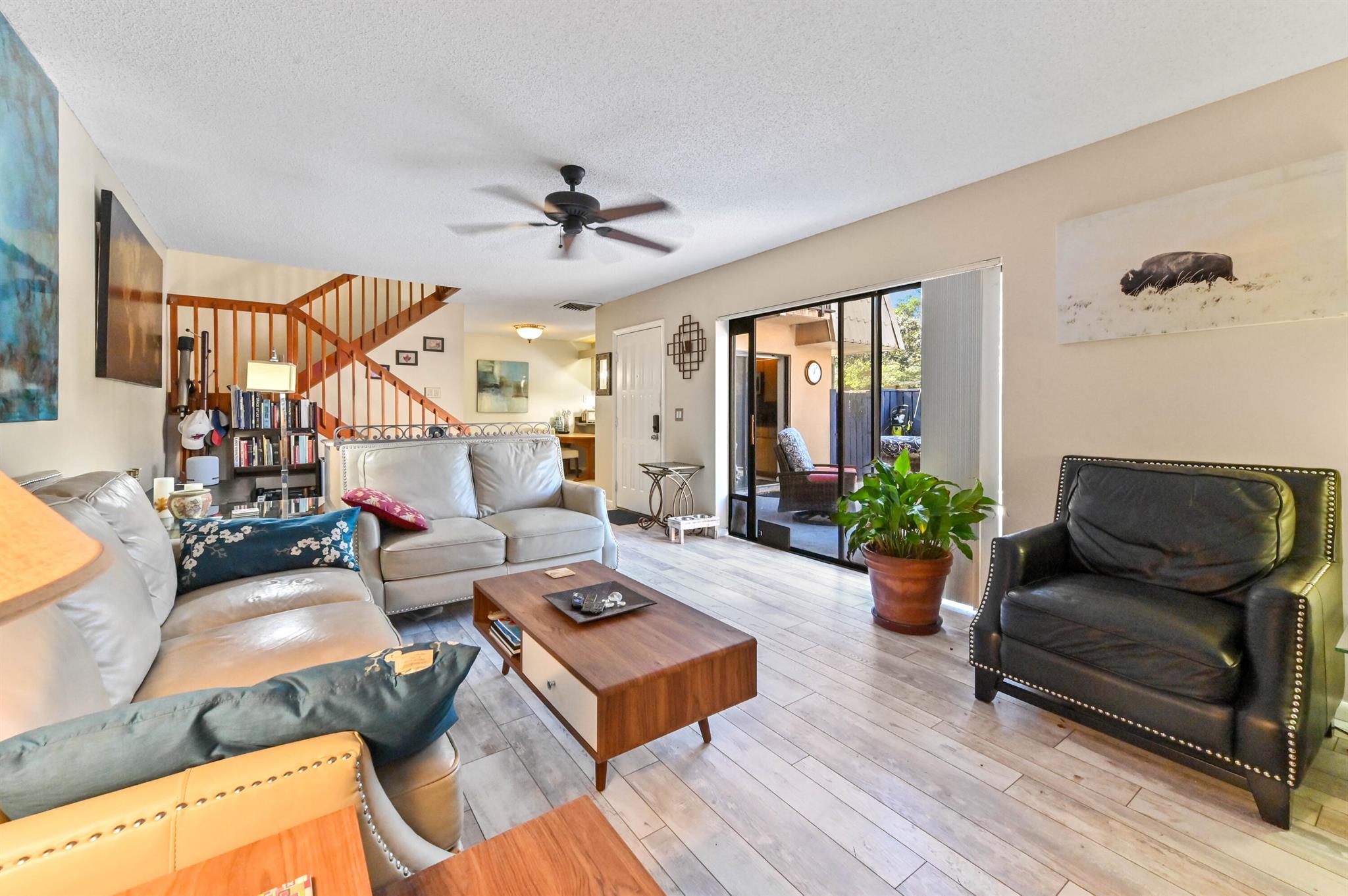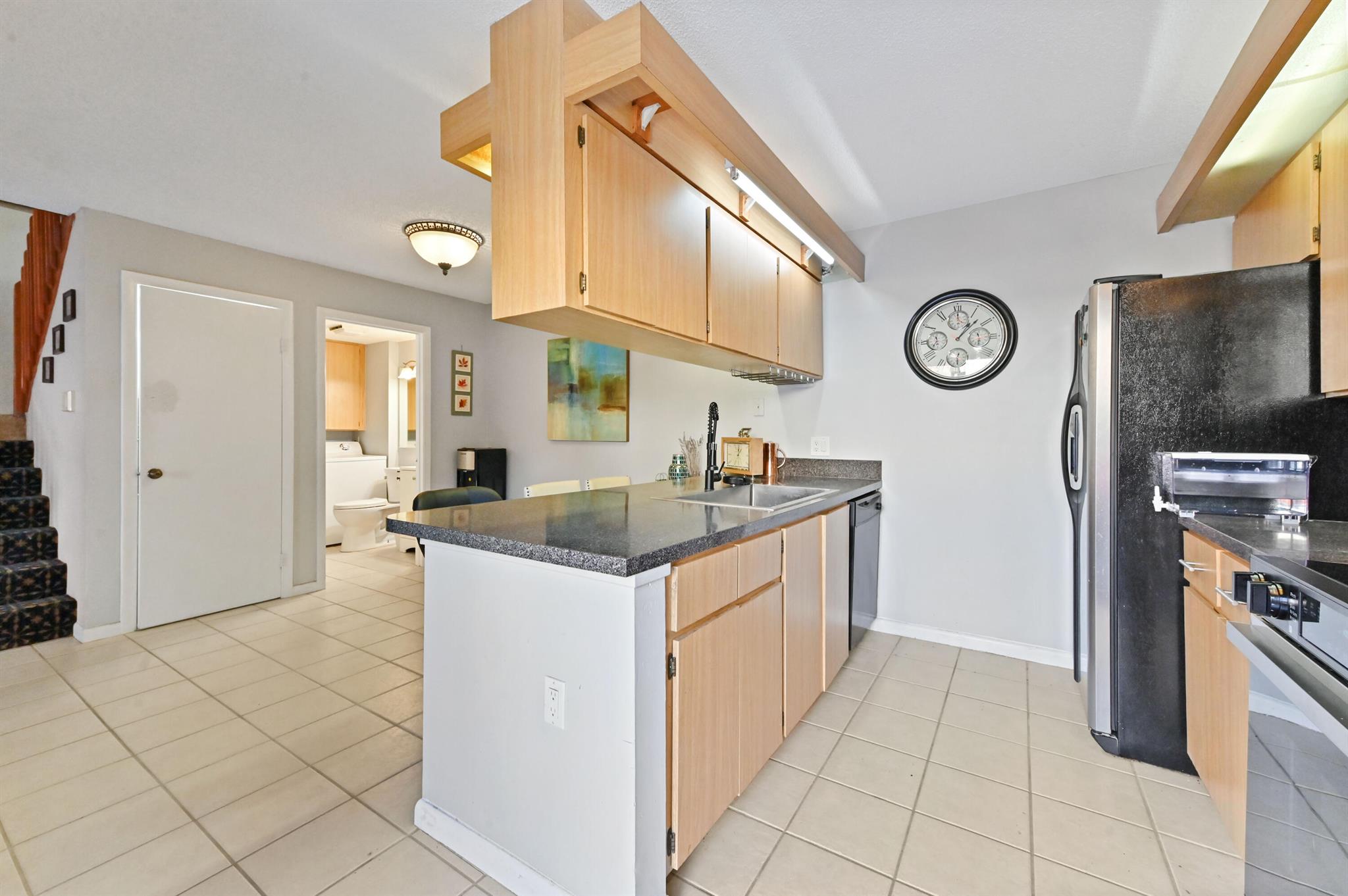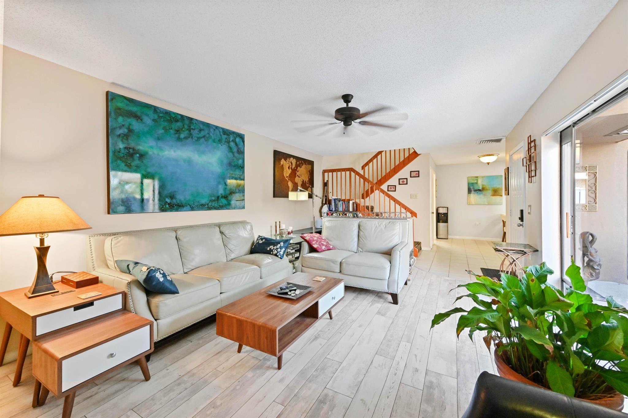 Nestled in a prime corner location, this fabulous home offers a scenic and tranquil setting. The private, fenced outdoor patio provides a perfect space to soak up the South Florida sunshine or enjoy al fresco dining in your own serene oasis. Step inside to find a spacious living room with stylish wood-like flooring, complemented by a modern kitchen featuring stainless steel appliances, a glass washer, and an eat-in bar that flows seamlessly into the dining area. The home also includes a convenient central vacuum system and sliding doors that connect the indoors to the inviting patio.