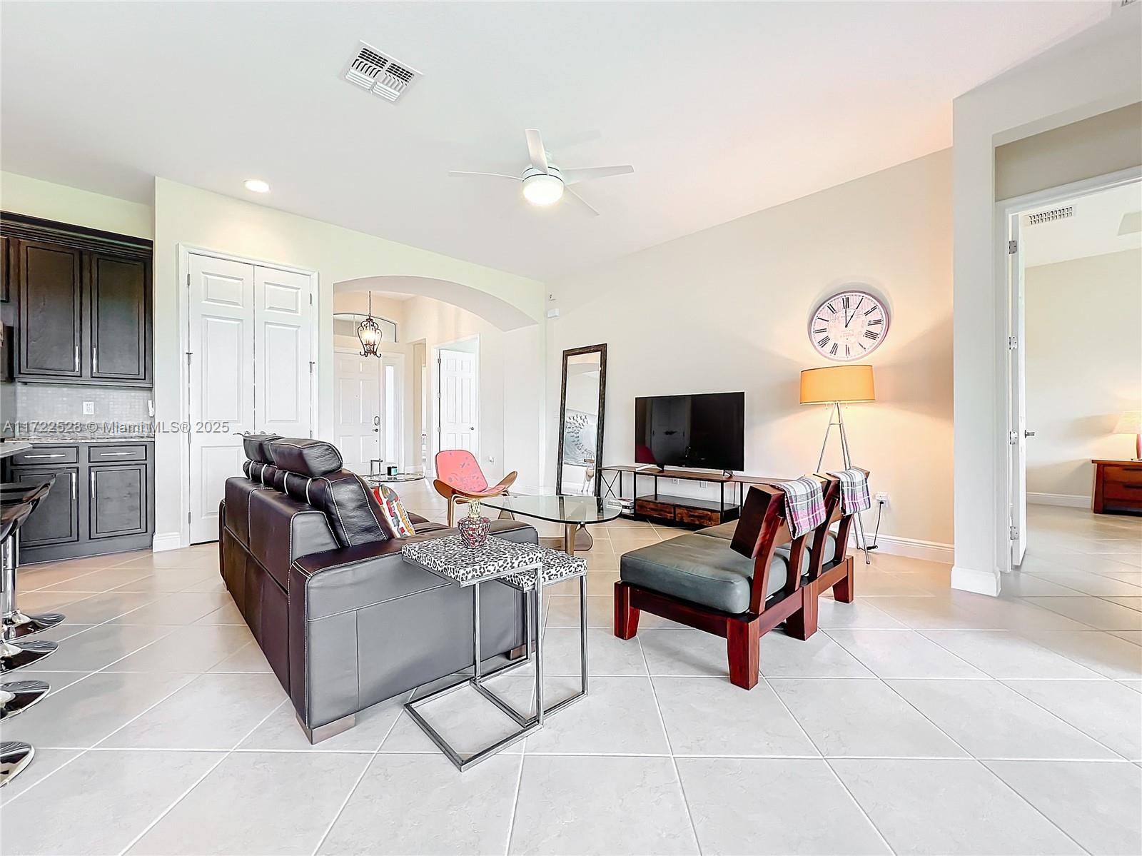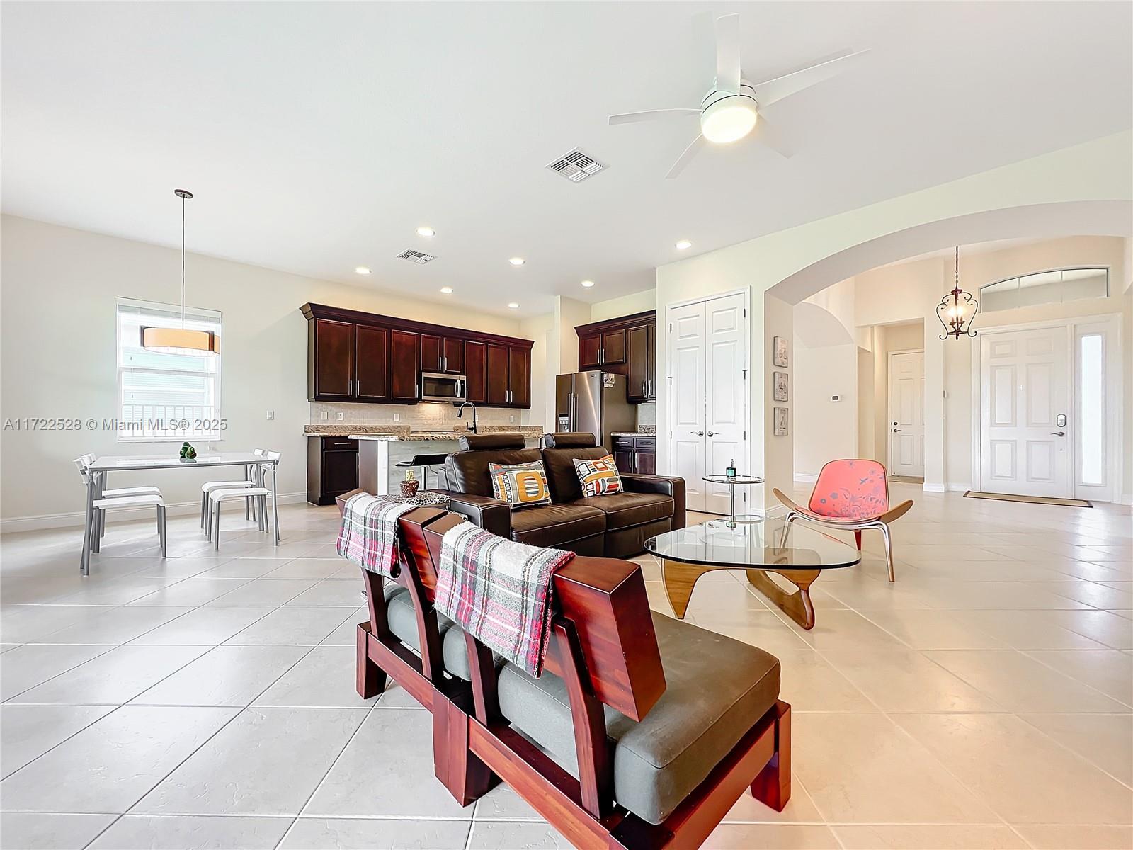 Welcome to this impeccable home in the tranquil Portosol community. With just one owner, it has been lovingly cared for and thoughtfully upgraded. New appliances, a washer, dryer, and air conditioner have been recently installed, ensuring quality and comfort. The gourmet kitchen features premium stainless steel appliances, an induction stove, Maytag refrigerator, granite countertops, and a central island—ideal for culinary creativity. The open floor plan, soaring ceilings, and natural light create a spacious living experience perfect for entertaining. The formal dining room accommodates larger gatherings, while the breakfast area and family room, framed by sliding doors, offer serene and private views. The home has hurricane-proof doors and windows for security and energy efficiency.