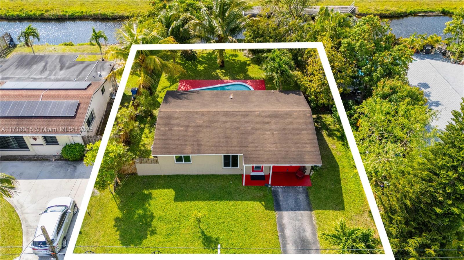 Charming single-family waterfront and pool home with no HOA features 2 bedrooms, one and a half bathrooms, and a 1-car garage. Additional features include tile in the main living areas and primary bedroom, carpet in the second bedroom, primary bathroom with jetted tub, all impact (windows, doors and garage door), upgraded electrical, in-house speaker system, ADT wired security system, newer stainless steel appliances, and washer and dryer located inside kitchen closet area. Exterior has been newly painted and additional features include a 6ft shadowbox wood privacy fence for back yard, fruit trees (palm, mango, avocado and orange), and no residences on the opposite side of the canal creating the ultimate private backyard area.