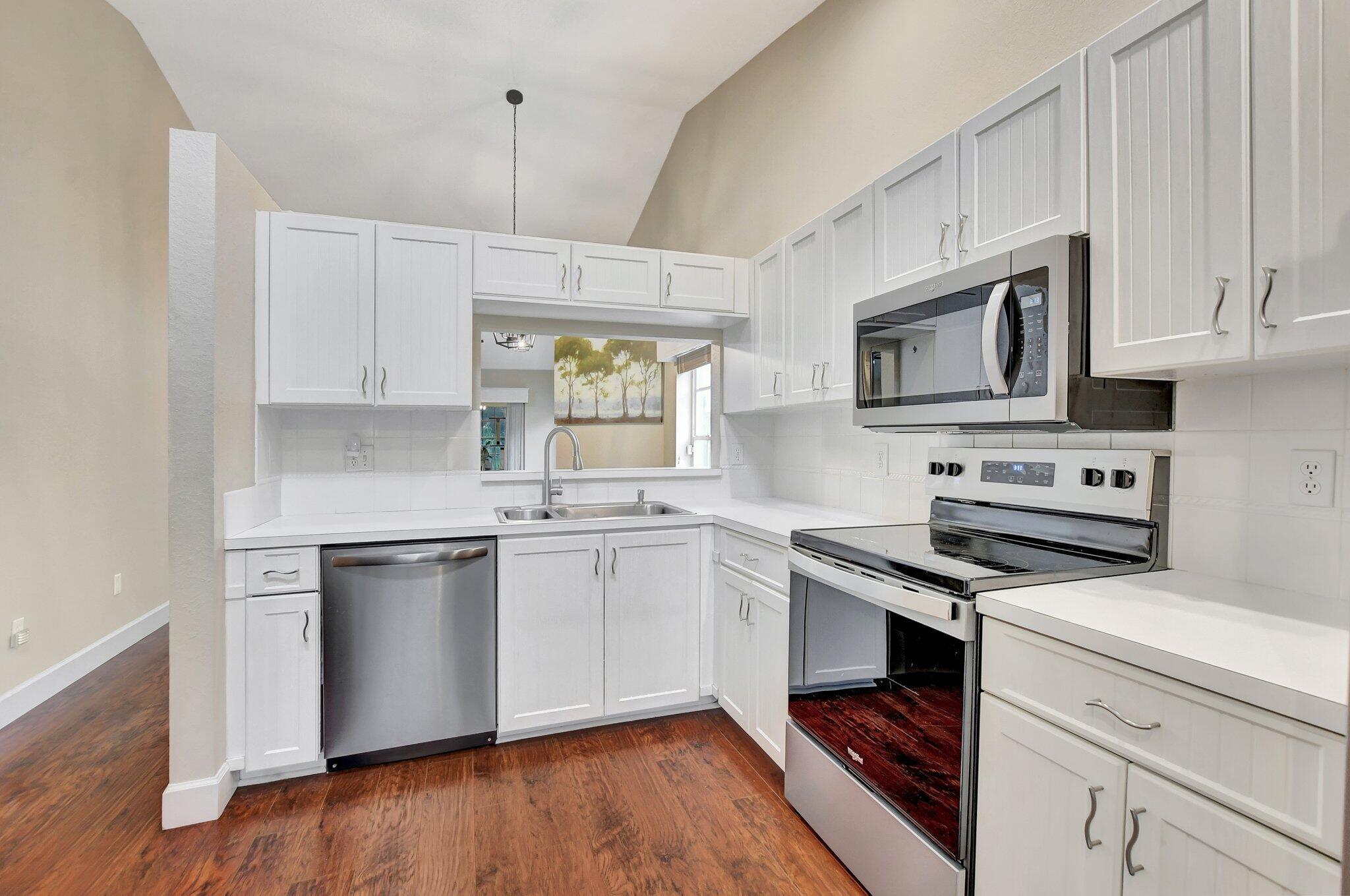 3 BED /2 BATH /2 CAR GARAGE , WATERFRONT HOME IN PRIVATE GATED COMMUNITY.HUGE LOT.LOW HOA. Welcome to this beautifully maintained home. This stunning property offers spacious living areas, modern finishes, and an ideal layout for comfort and style. Situated on a prime l ot with no neighbors directly behind, you'll enjoy extra privacy and tranquility in your backyard. The home is move in ready, renovated modern kitchen with stainless steel appliances , white cabinets, with remodeled baths, high end laminate floors, split bedrooms, indoor washer/dryer, large driveway, and beautiful garage flooring. Conveniently located near top-rated schools, shopping, dining, and major highways, this home offers the best of Boca. 2014 ROOF. 2010 HOT WATER HEATER. 2013 AC.