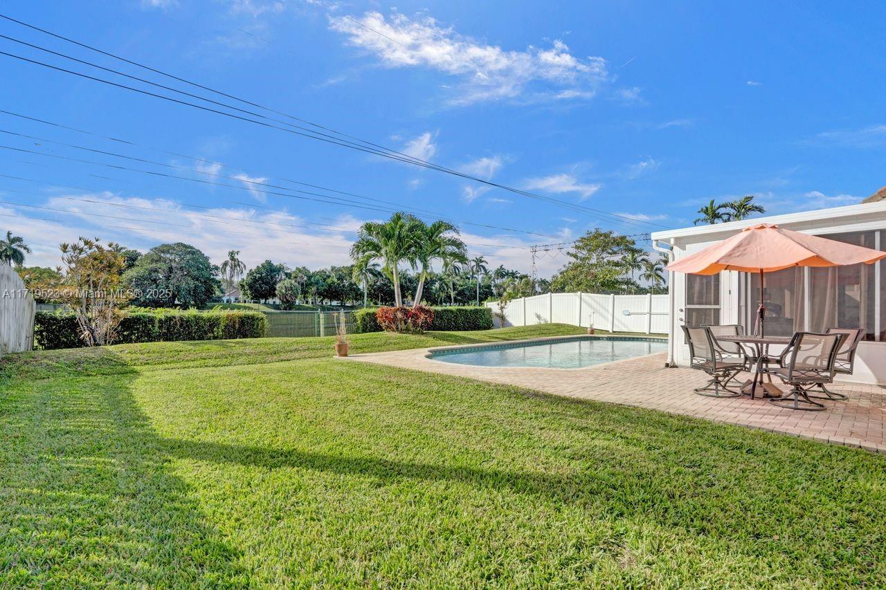 SPECTACULAR POOL HOME, WITH HUGE BACKYARD AND MULTI CAR DRIVEWAY IS BEING OFFERED FOR THE FIRST TIME. CUSTOM EXPANSION ADDED A BATH AND 3RD CAR GARAGE. PER BROWARD COUNTY THE HOME IS 2696 SQ FT UNDER A/C. ONE OF THE ONLY 1 STORY-3 CAR GARAGE HOMES IN OAKRIDGE. NUMEROUS UPGRADES INCLUDE: IMPACT WINDOWS THROUGHOUT, A CUSTOM KITCHEN, LARGE OVERSIZED HEATED POOL WITH SALT CLORINATION, AND AN ENCLOSED FLORIDA ROOM WITH WINDOWS & A/C. KOHLER WALK-IN TUB, A/C SYSTEM 1 YEAR OLD, WHOLE HOUSE GUTTERS, CROWN MOLDING, TUB SINK IN GARAGE, INSIDE LAUNDRY WITH TUB SINK, WATER SOFTENER, EXTERIOR PAINTED LESS THAN 2 YEARS AGO, FLO-LOGIC WATER SHUT OFF VALVE SYSTEM, OUTDOOR SHOWER, AND MORE. WALK RIGHT OUT THE BACKYARD TO PEDESTRIAN WALKWAY TO SW 35TH AVE. GREAT PRIME LOCATION. ALL WORK HAS BEEN PERMITTED!