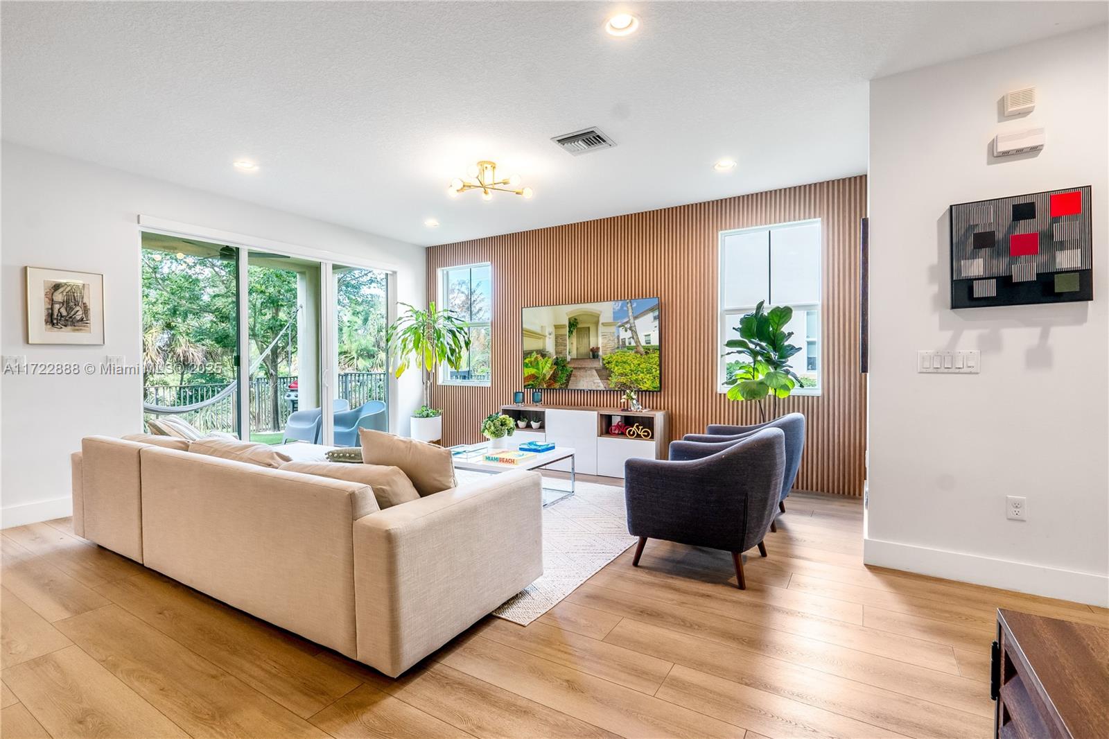 This beautiful modern 2-story home, 4 bedrooms 2.5 bathrooms, built in 2017, is located in the heart of Davie and ready for you to move in! The home features impact windows, a remodeled kitchen with quartz countertops, LED lights under the cabinets, and a custom pantry for extra storage. Enjoy the fresh look of new flooring throughout the house, along with custom-made closets in every room for better organization. The roller shades and blackouts provide privacy and style, while the patio is designed with low-maintenance artificial grass, perfect for relaxing or entertaining. Nestled in a great community, this home offers modern finishes, comfort, and a convenient location. Schedule your showing today and make it yours!